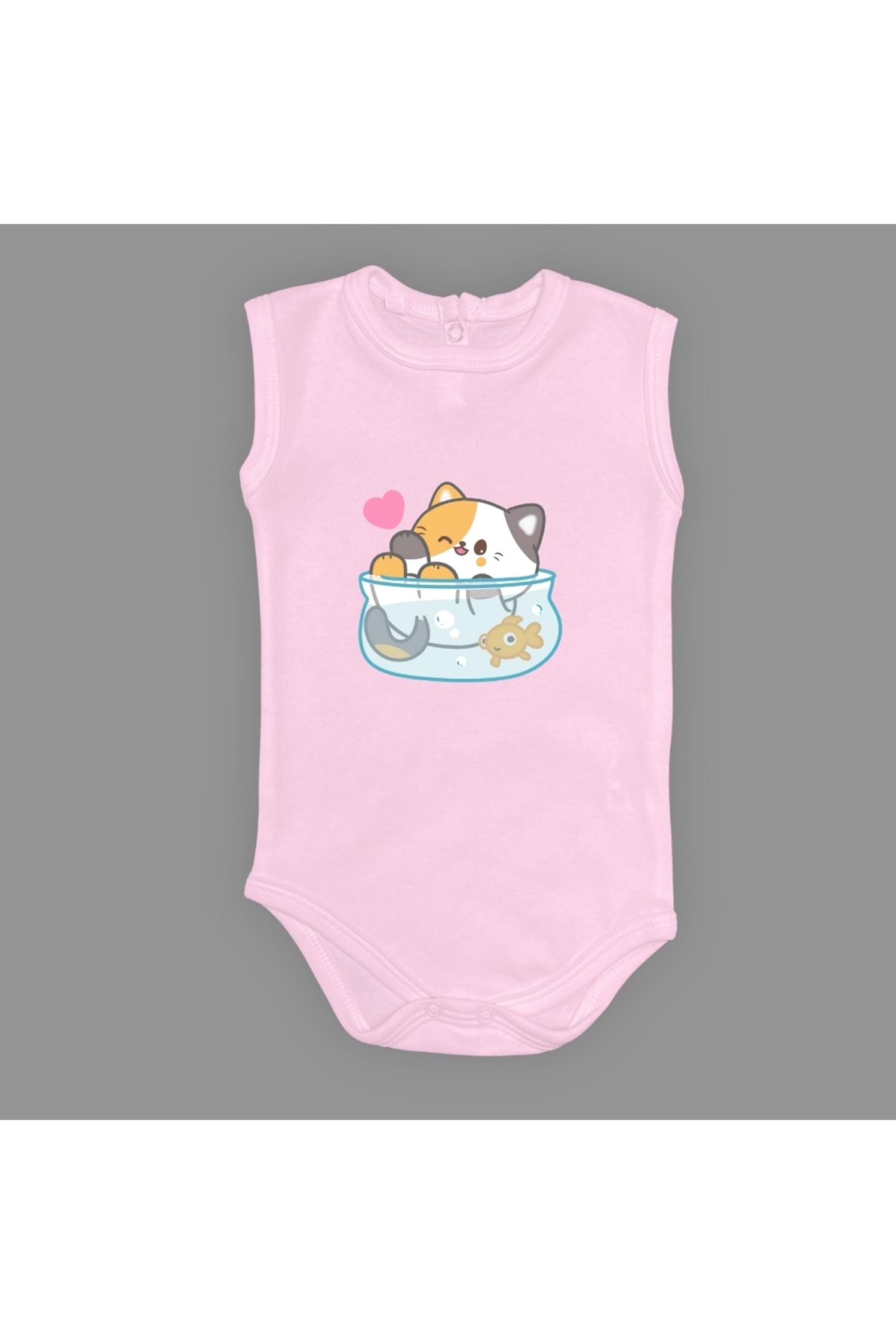 Akvaryum Kedi Baskılı Bebek Çıtçıtlı Body Uzun Kısa Kolsuz