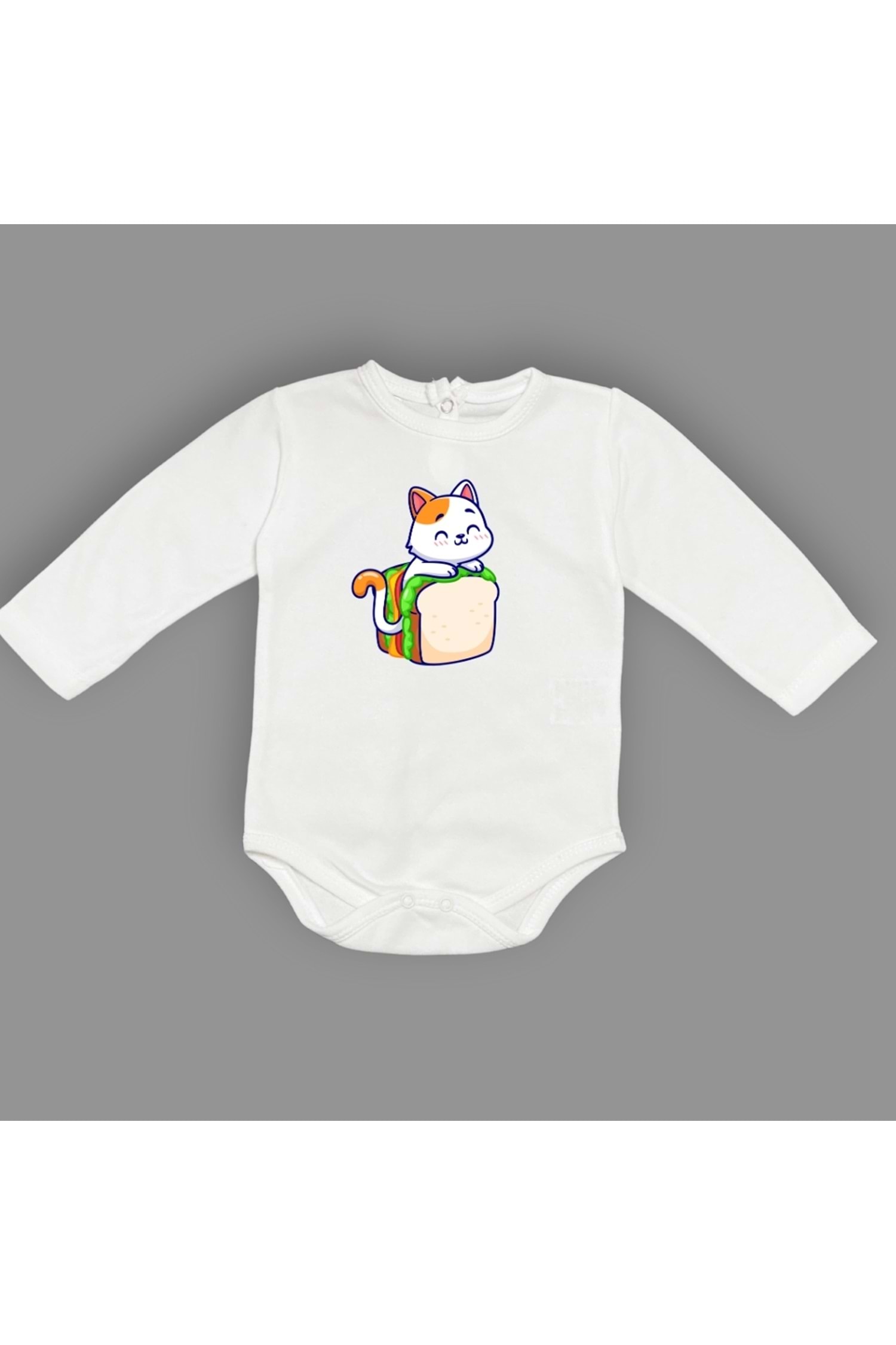 Baskılı Tost Kedi Bebek Çıtçıtlı Body - MNK0660-EKRU-6 AY