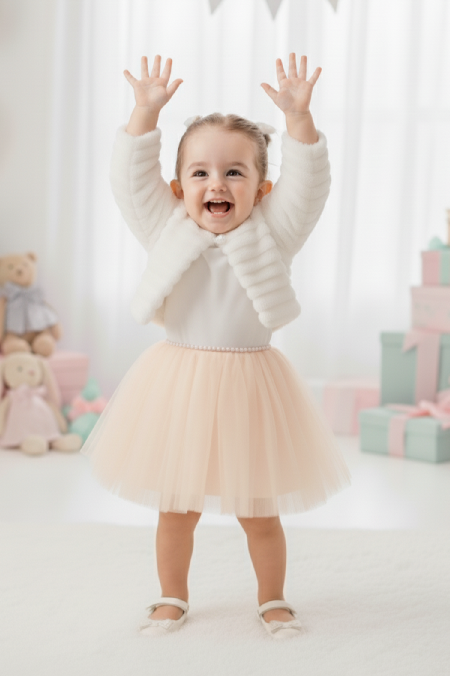Pelüş Bolerolu Kız Bebek Elbise M00771