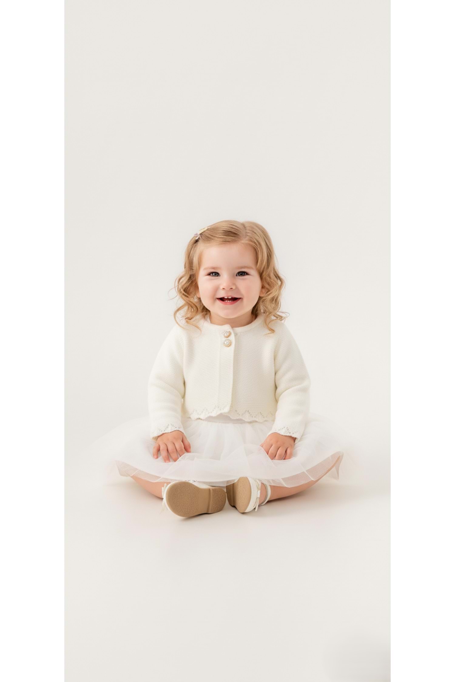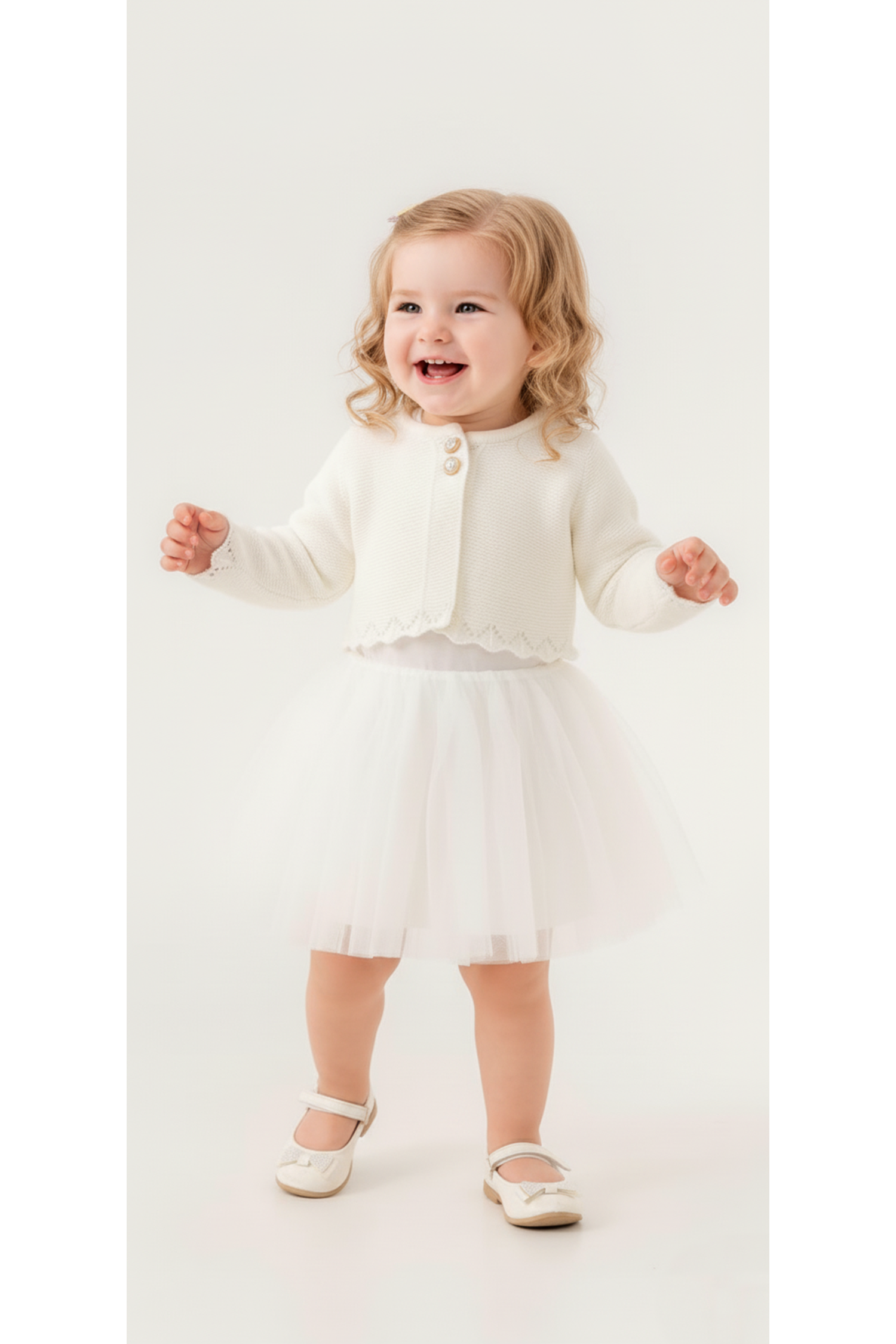 - Üst Kısım: Yumuşak dokulu triko bolero, uzun kollu ve konforlu yapısıyla bebek cildine dosttur.