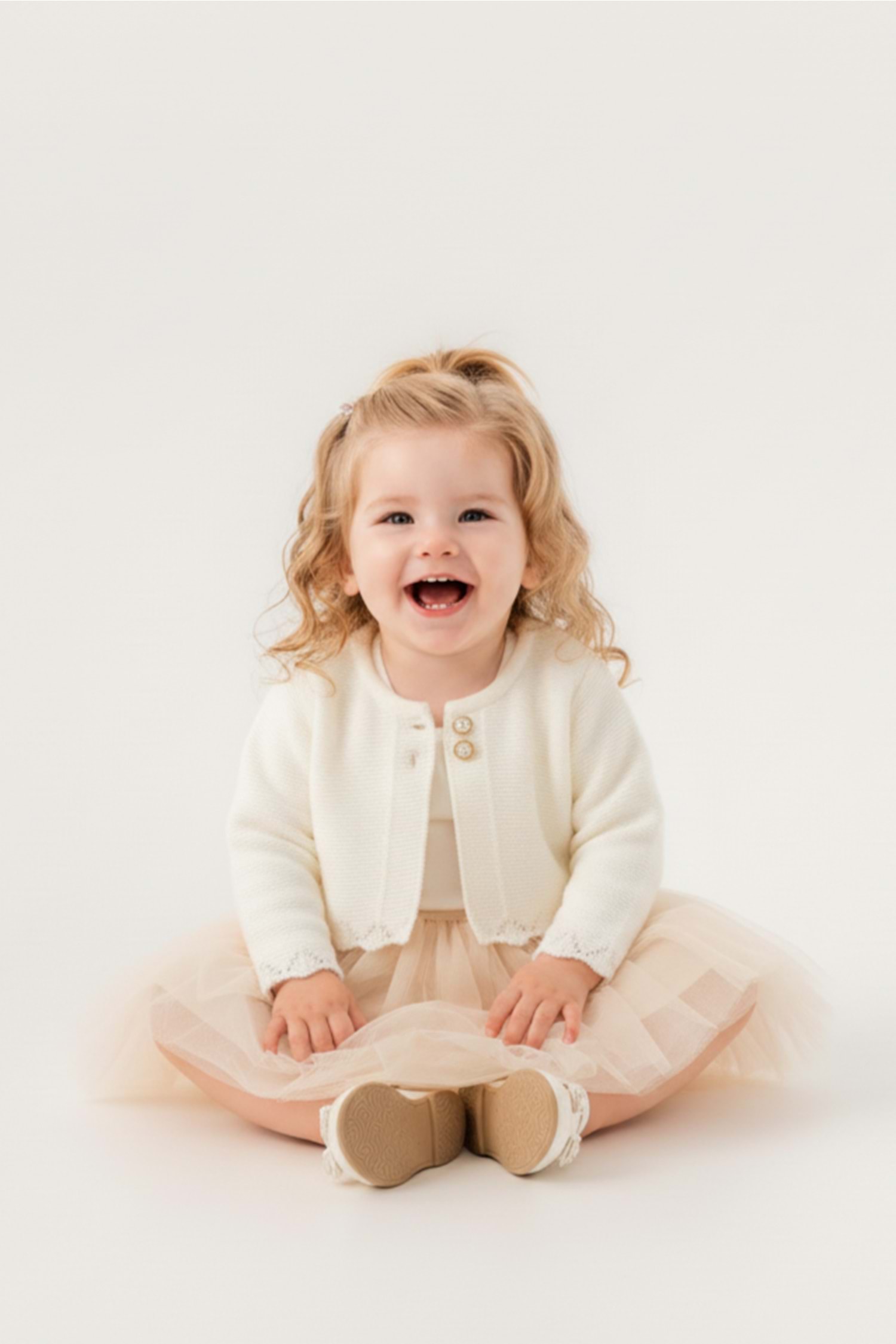 - Üst Kısım: Yumuşak dokulu triko bolero, uzun kollu ve konforlu yapısıyla bebek cildine dosttur.