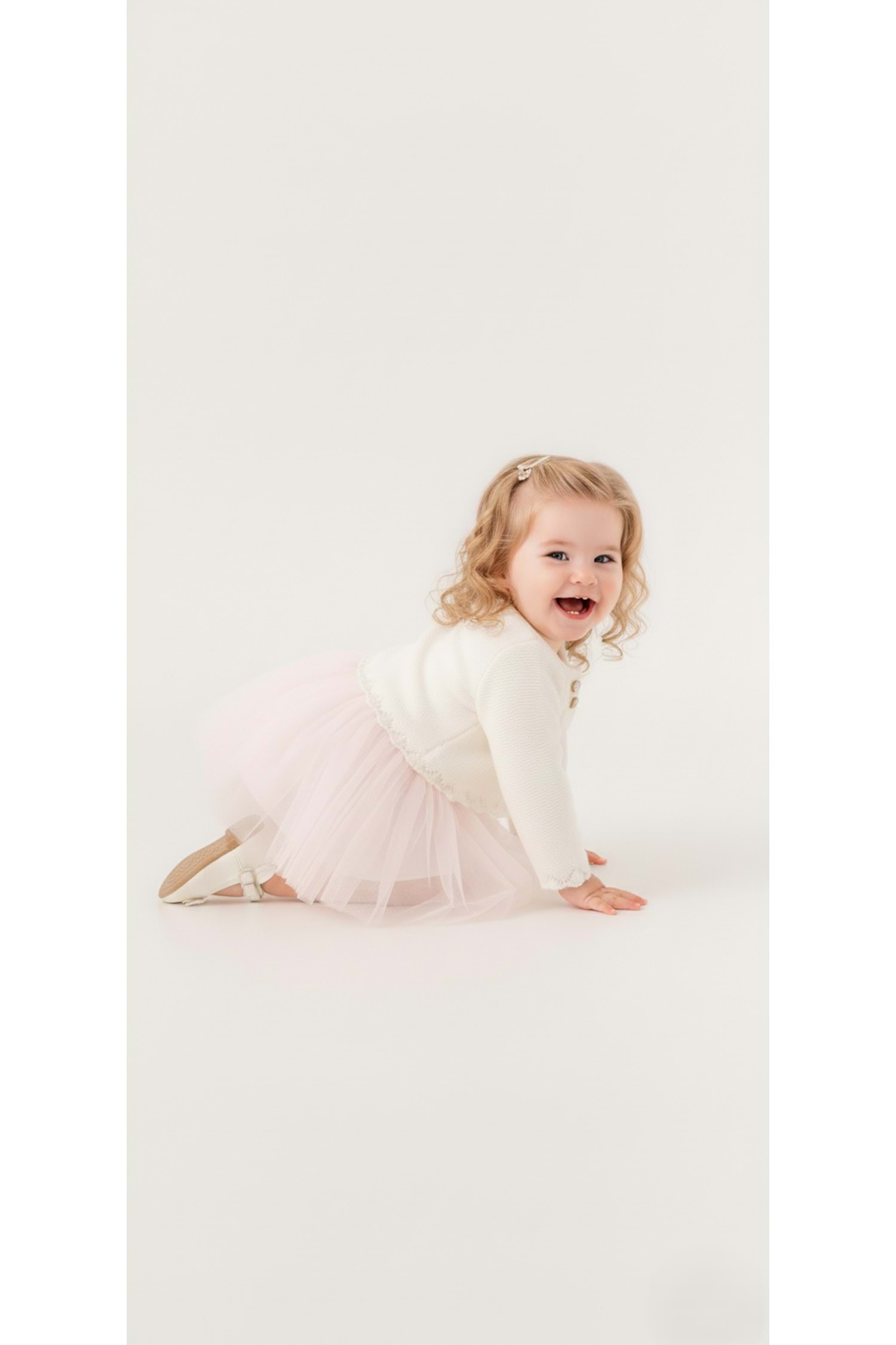 - Üst Kısım: Yumuşak dokulu triko bolero, uzun kollu ve konforlu yapısıyla bebek cildine dosttur.