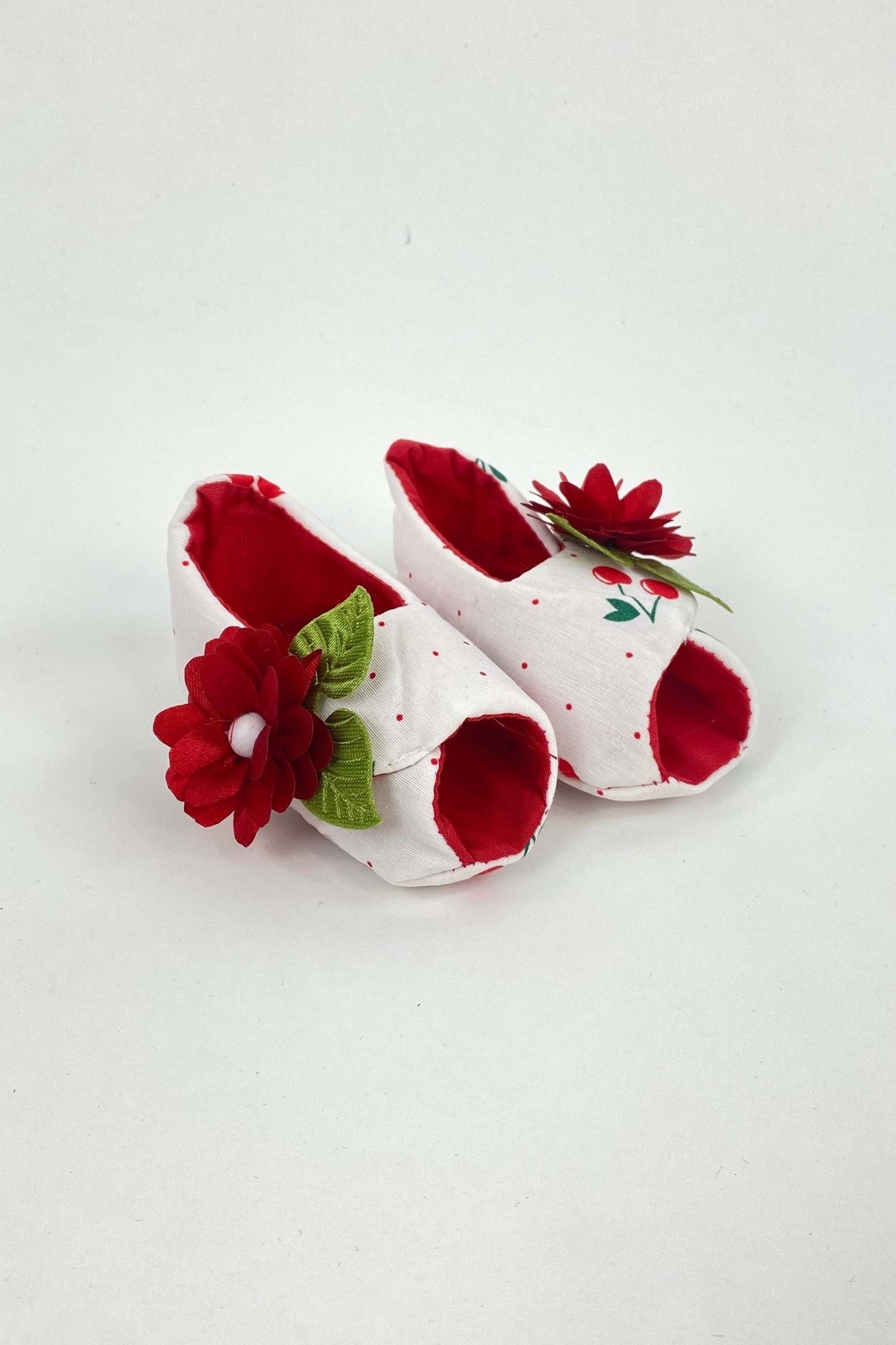 Kiraz desenli saç bandı ayakkabısı ve fırfırlı külottan oluşan kız bebek takım