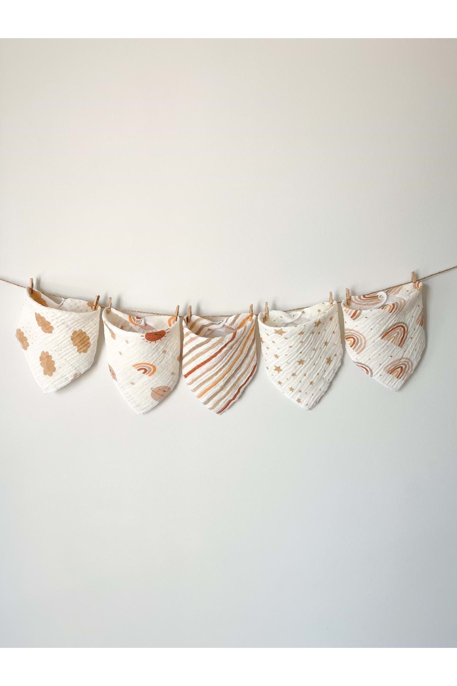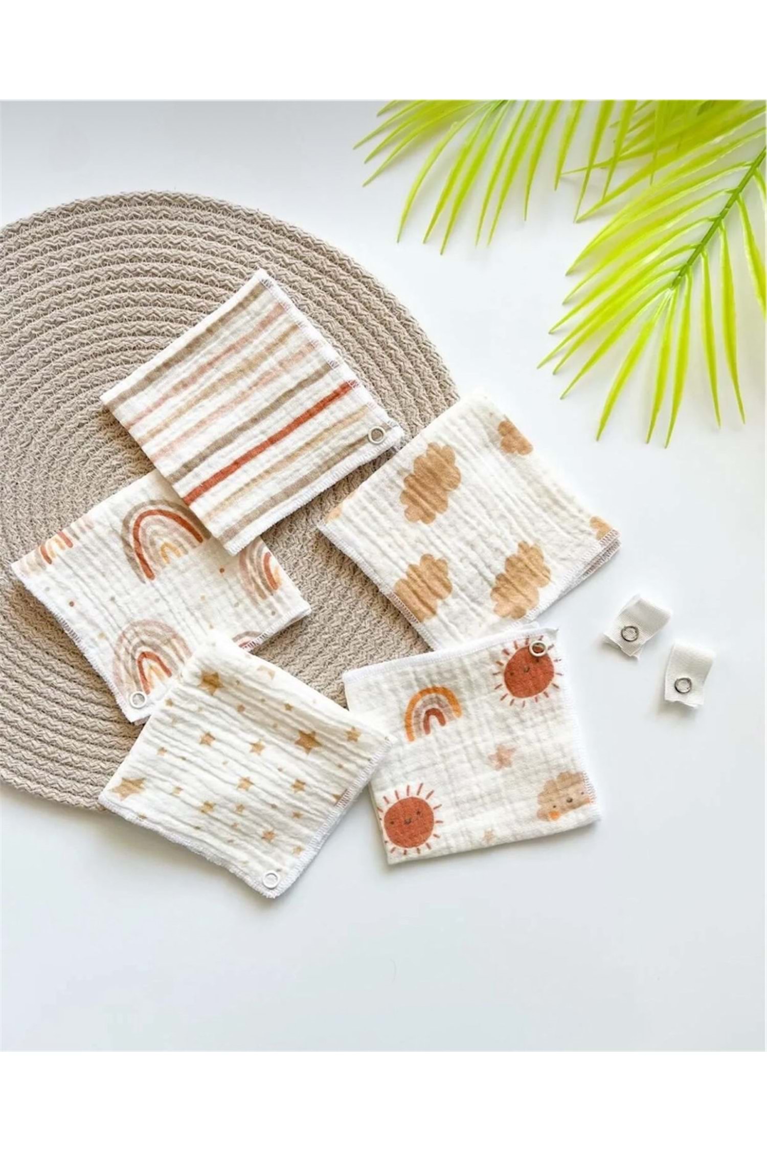 5'li Müslin Desenli Bebek Ağız Mendili Çıtçıtlı Mama Önlüğü M00750