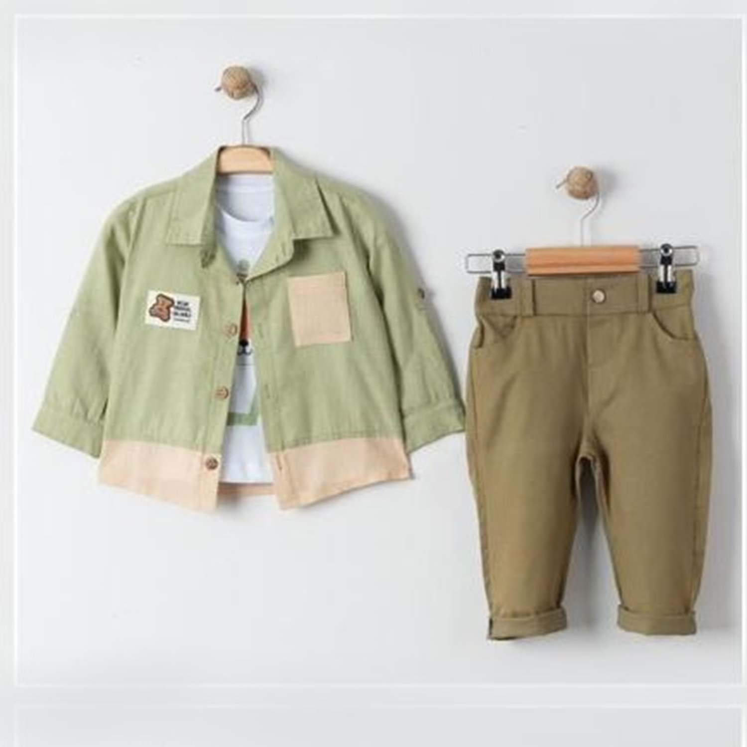 Cepli Gömlek , Pantolon , T-Shirt 3Parça Erkek Bebek Takım MNK31106