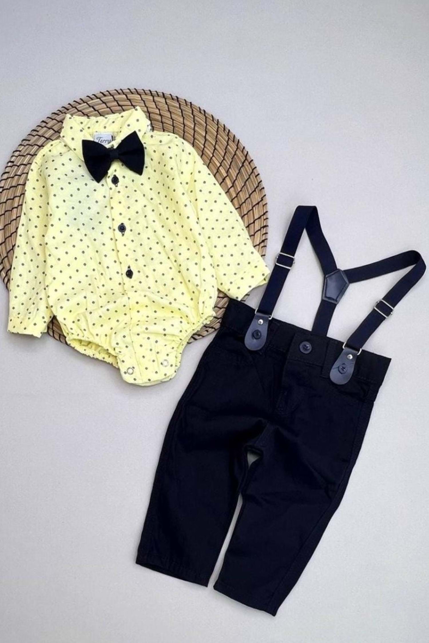 Gömlekli Alttan Çıtçıtlı Gabardin Pantolonlu Pamuklu Bebek Takım