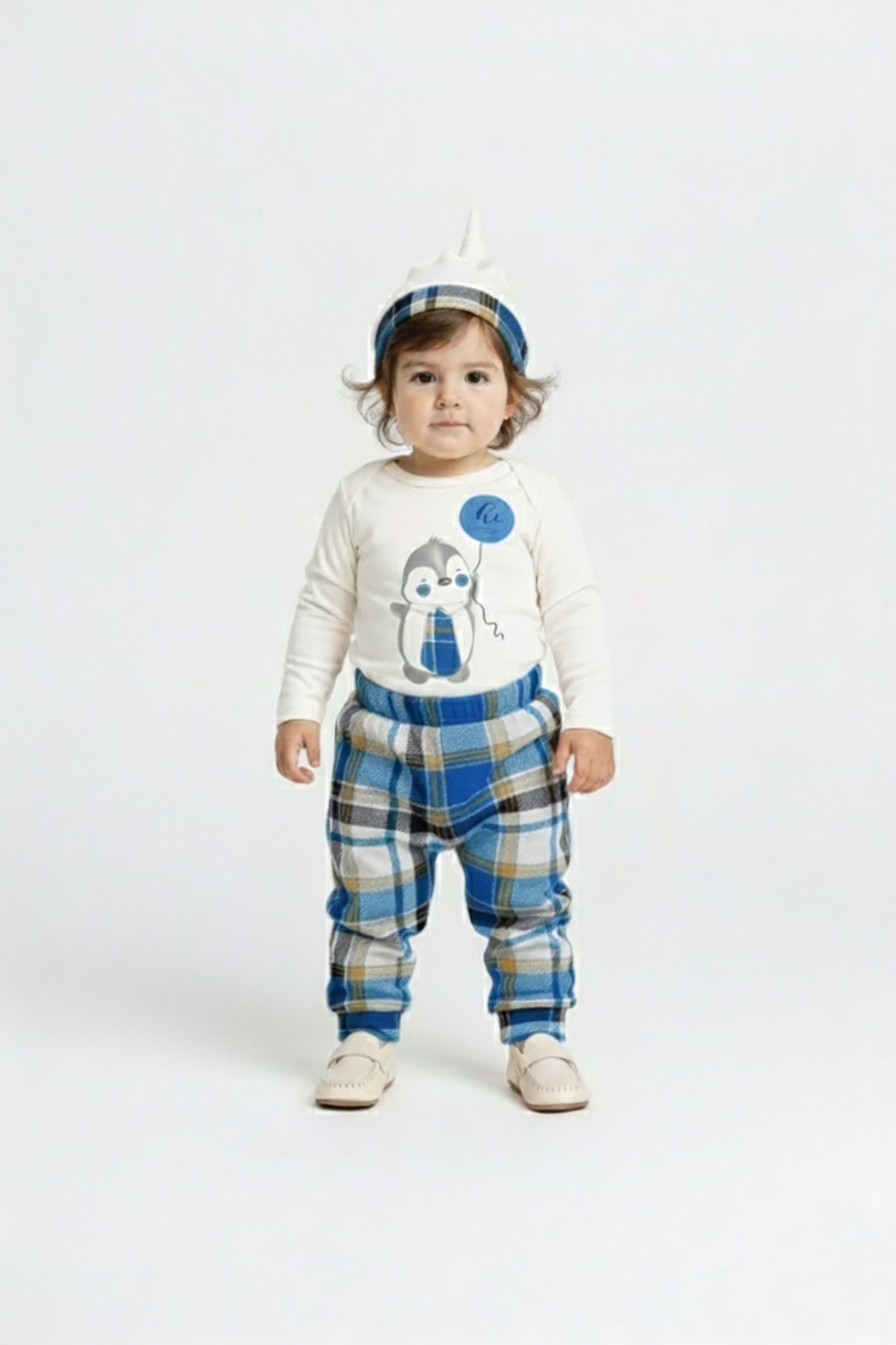 Kravatlı Penguen Badi , Pantolon , Şapka Penye Takım MNK0587
