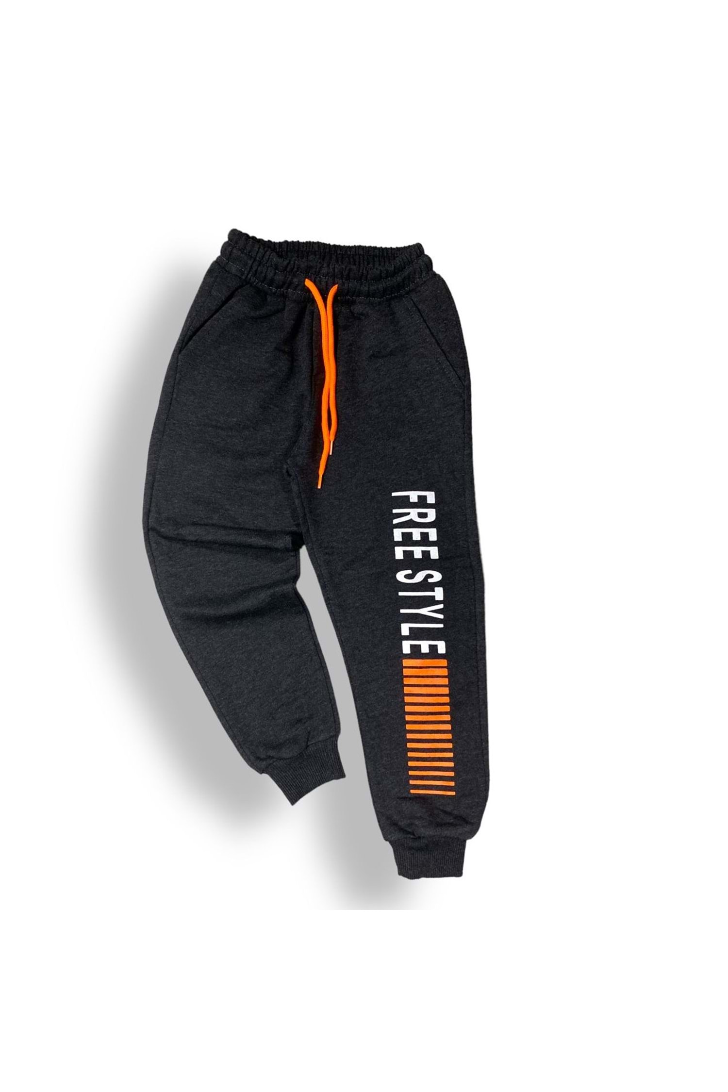 Baskı ile modellenmiş, kapüşonlu , kanguru cepli ve pantolon cepli ikiiplik şardonlu kumaştan üretilmiş rahat kalıp takım.