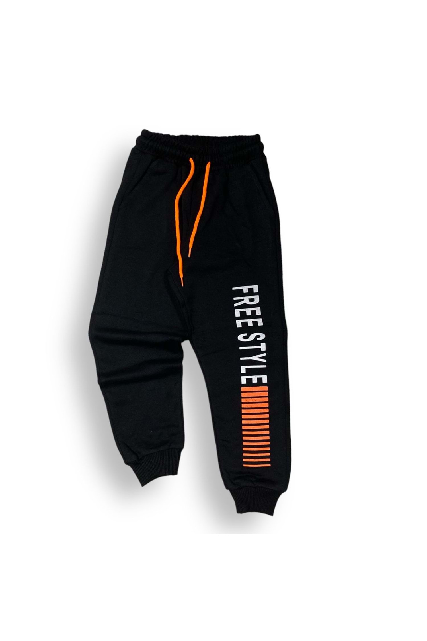 Baskı ile modellenmiş, kapüşonlu , kanguru cepli ve pantolon cepli ikiiplik şardonlu kumaştan üretilmiş rahat kalıp takım.