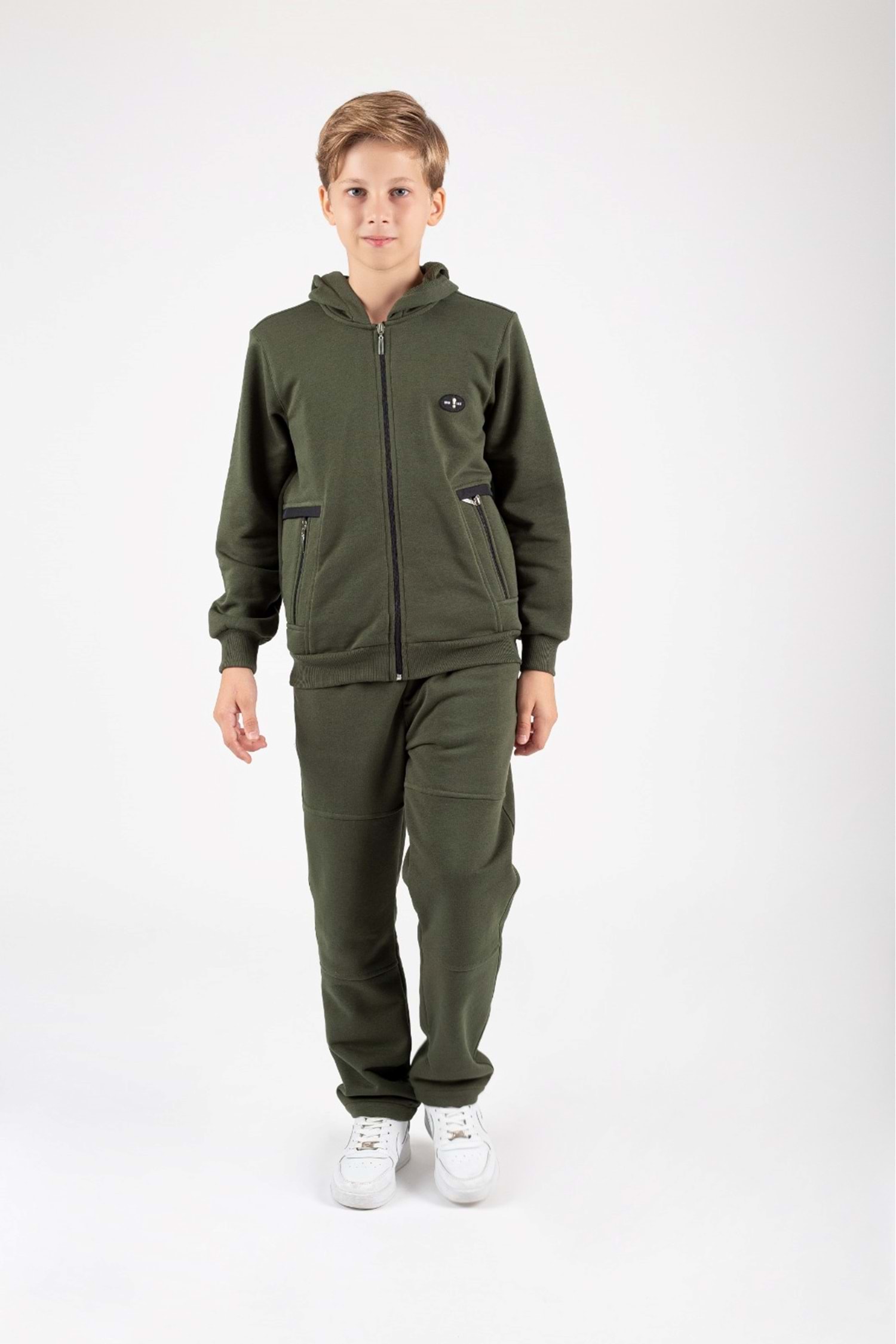 Erkek Çocuk Fermuar Kapamalı Kapüşonlu Arma Detaylı Eşofman Takımı M00757