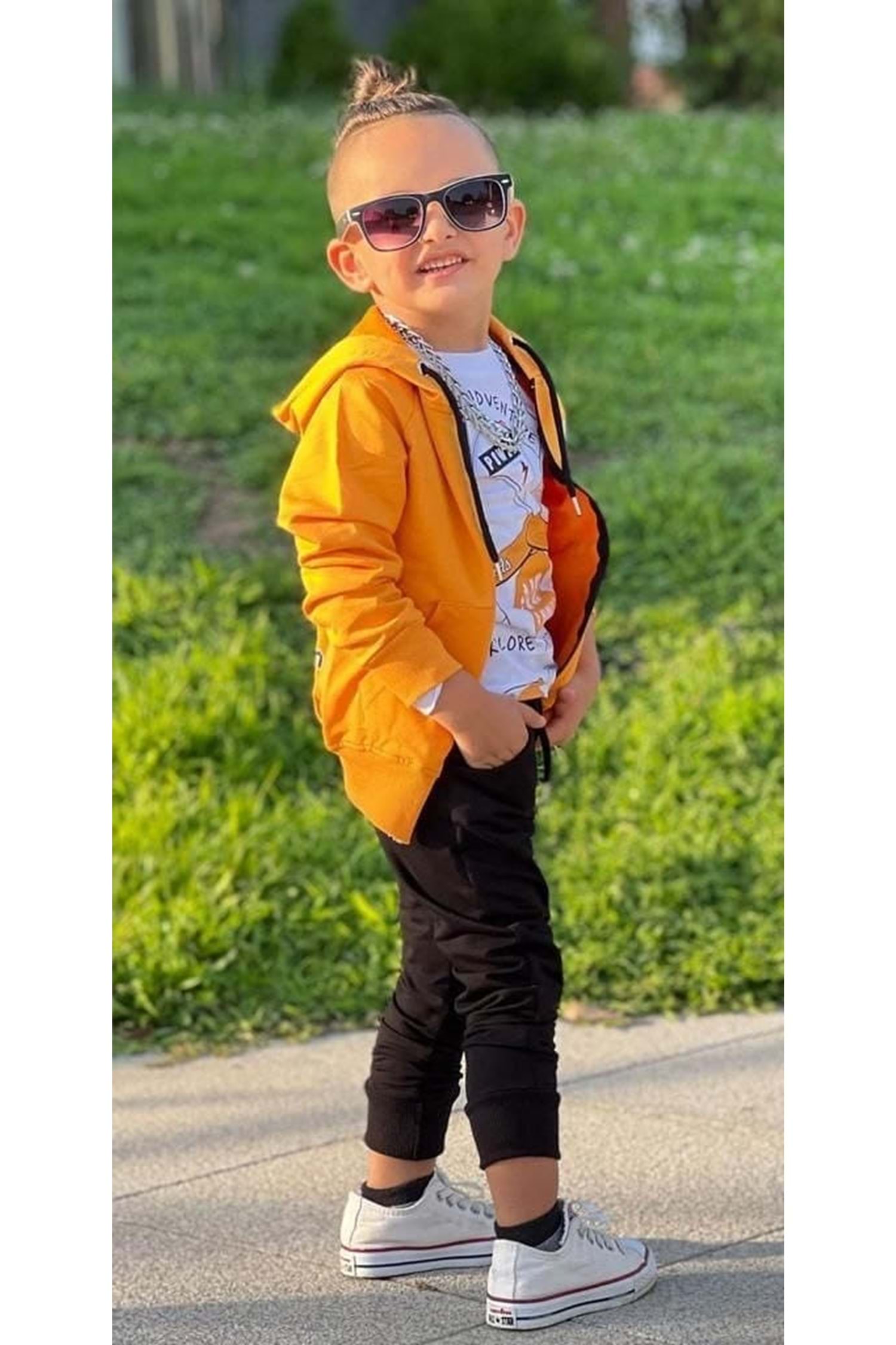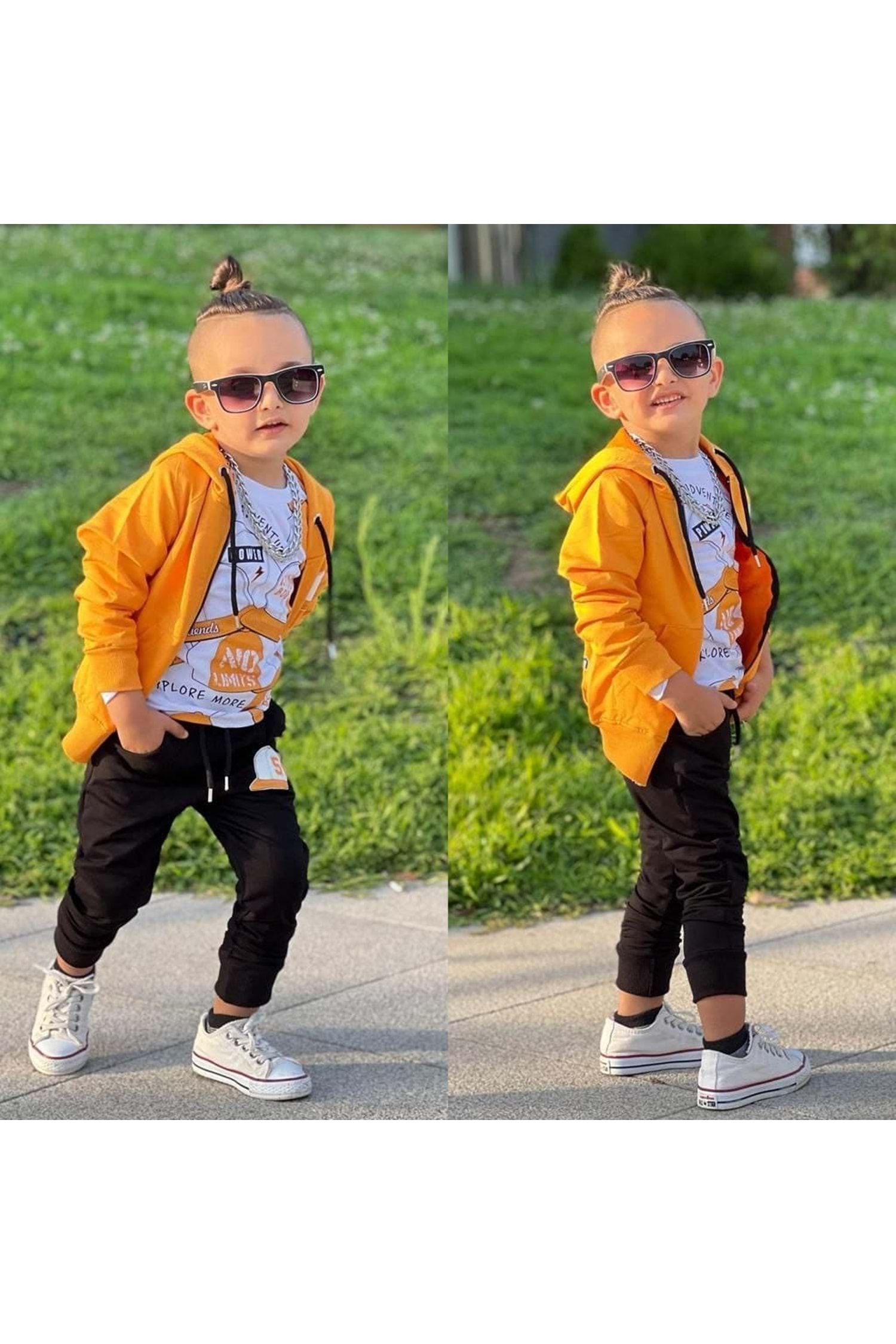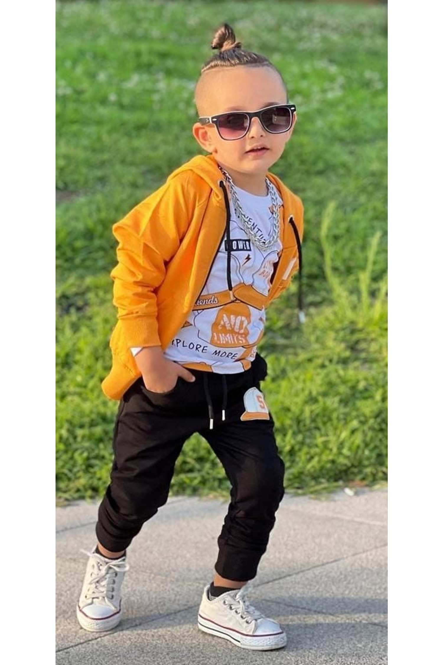 Ürün hırka , tişört ve eşofman alt olmak üzere 3 parça olarak satıştadır. Kolye , gözlük, ayakkabı görseldir. Ürün ile birlikte satışta değildir.