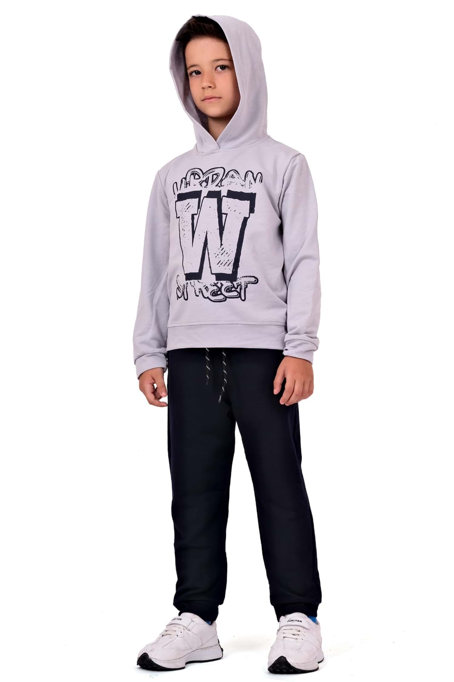 Kapüşonlu Sweatshirt , Pantolonlar ise Ceplidir.