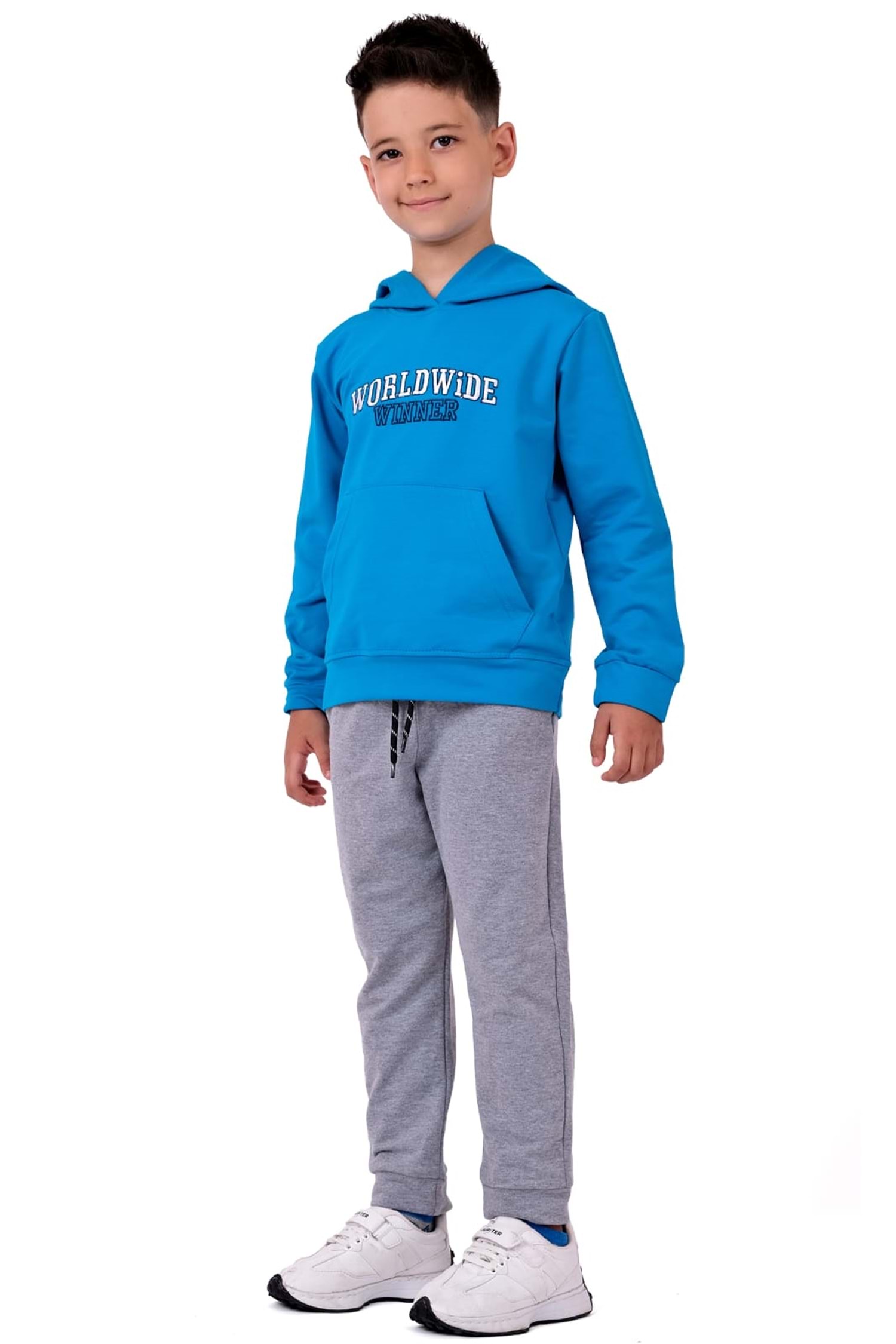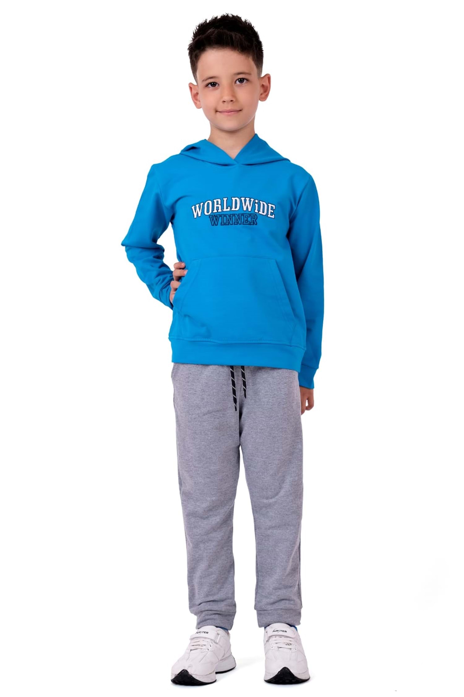 Worldwide Winner Nakış Kanguru Cepli Kapüşonlu Çocuk Eşofman MNK10073