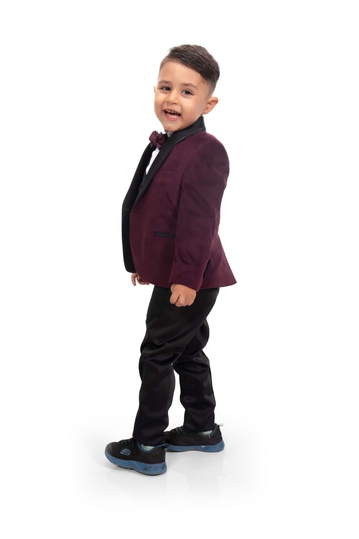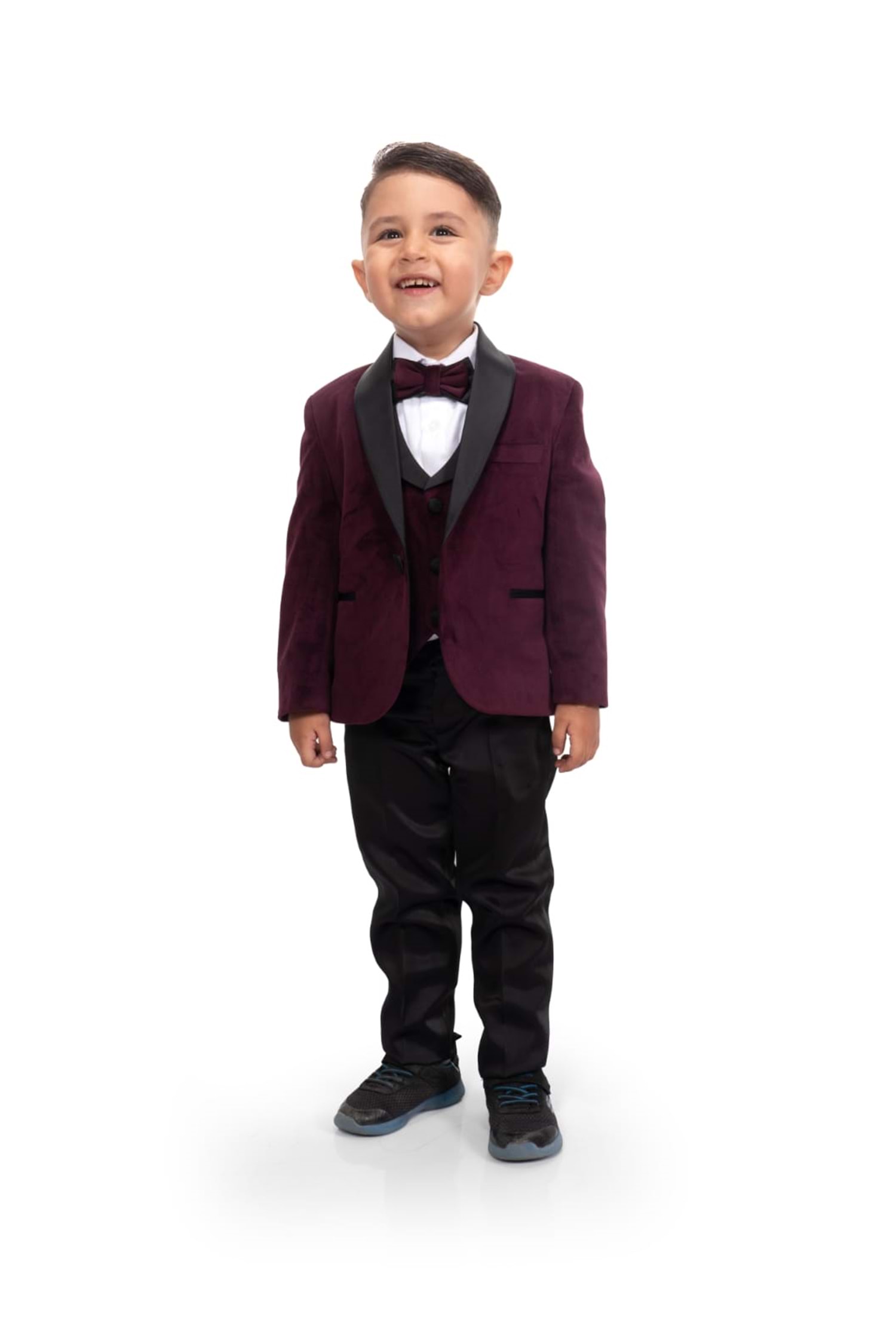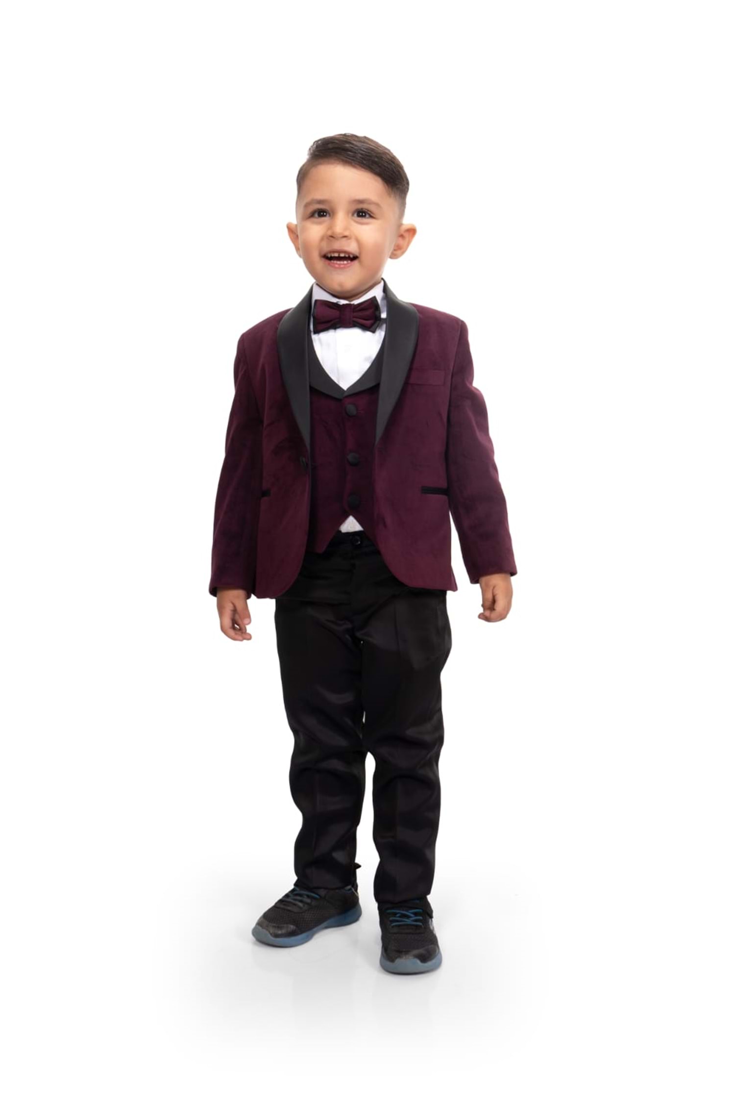 Kadife Ceketli Yelekli Erkek Çocuk Takım Elbise MNK0550