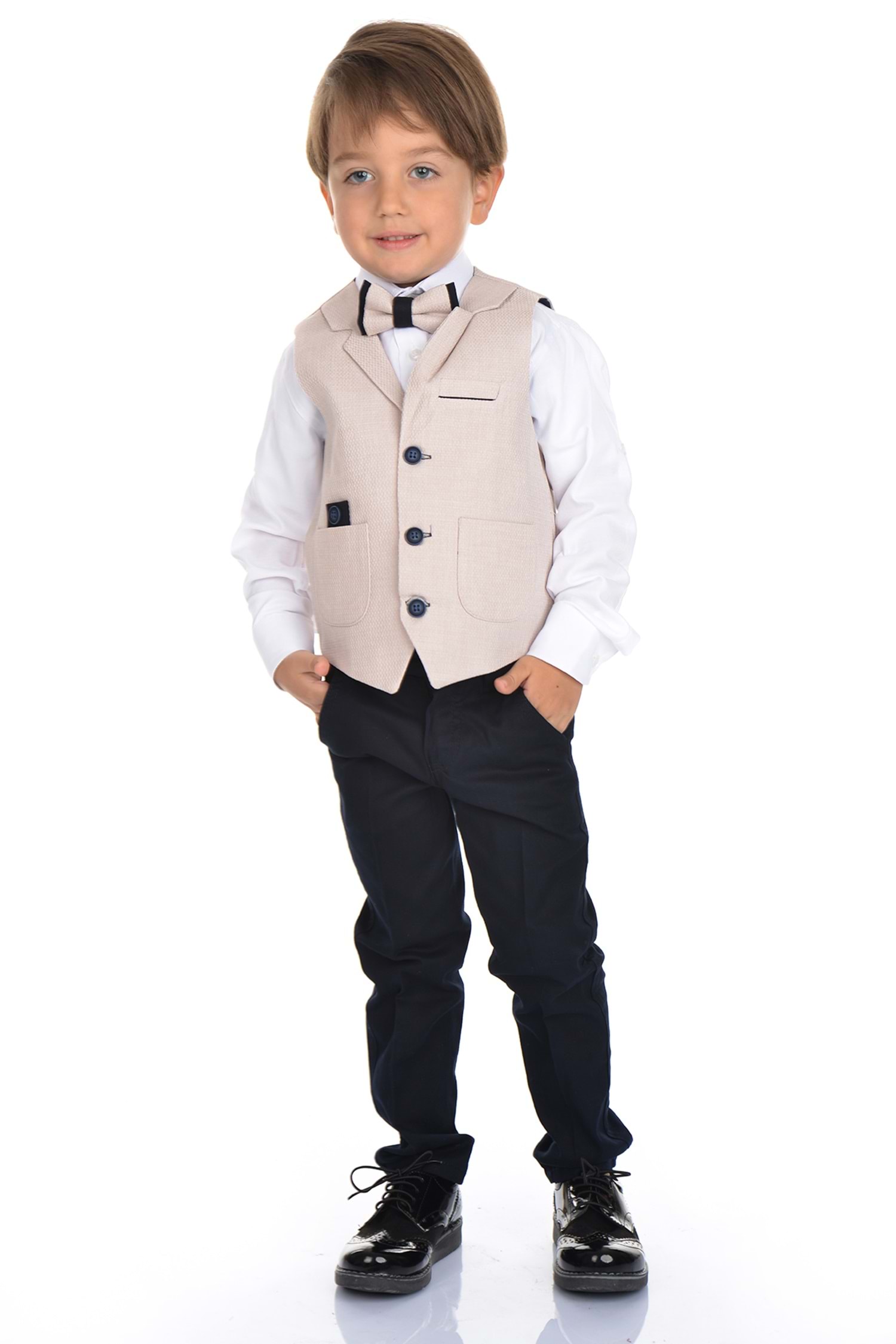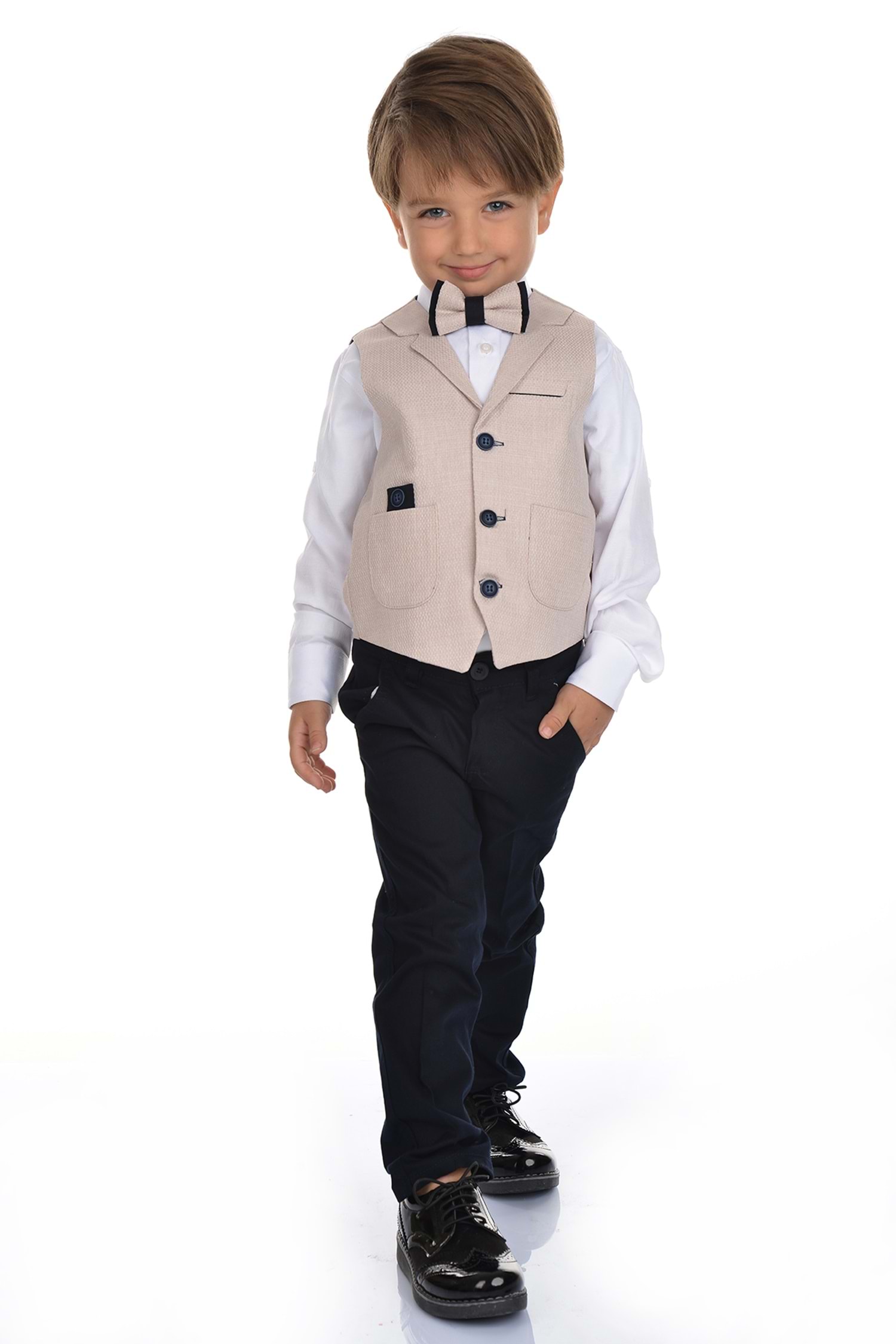 Spor kesimi sayesinde hem klasik hem de günlük kullanıma uygun olan bu takım, çocuğunuzun hem rahat etmesini hem de tarz görünmesini sağlar. Düğünler, mezuniyetler, özel günler ya da sadece fotoğraf çekimleri için bile mükemmel bir tercihtir.