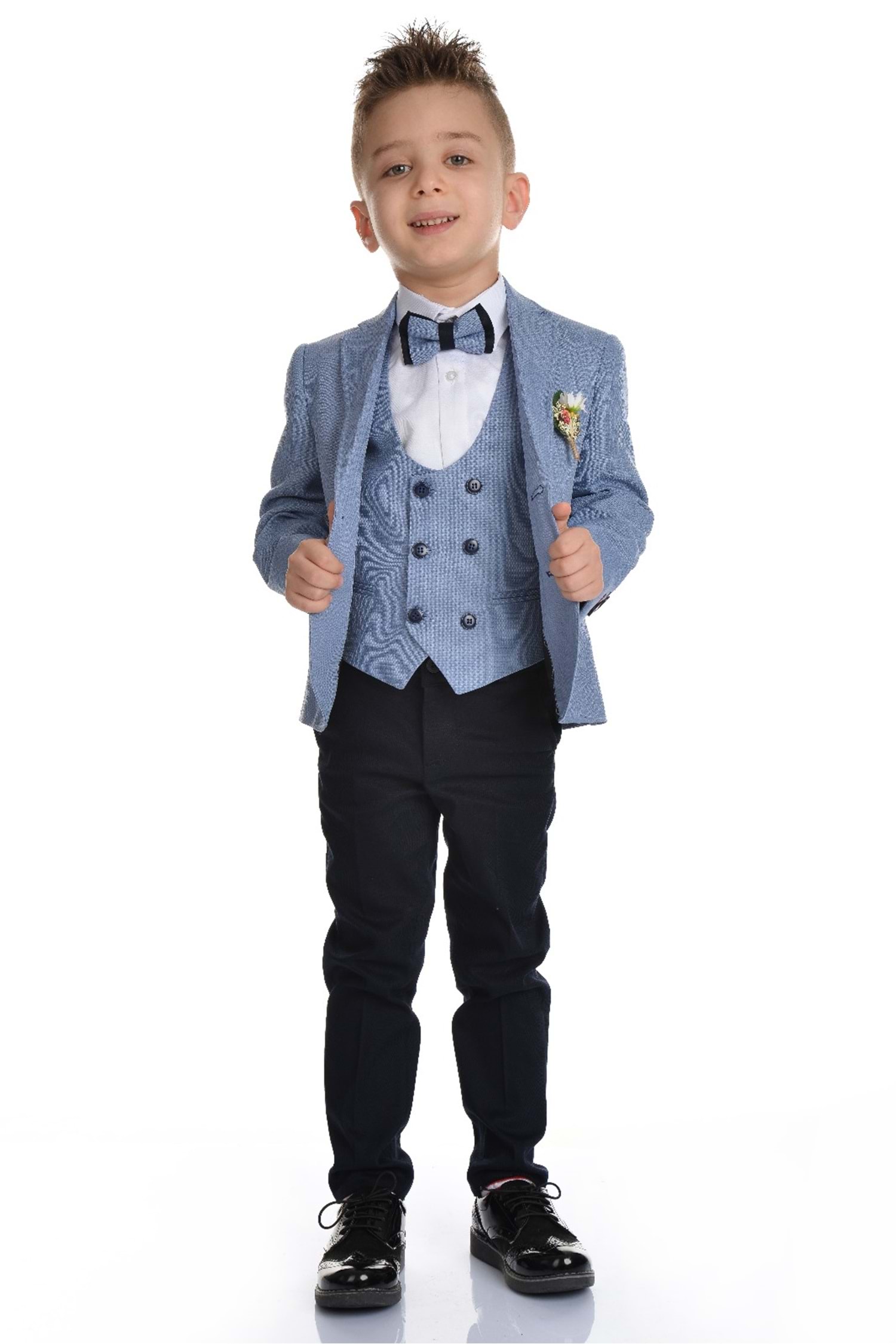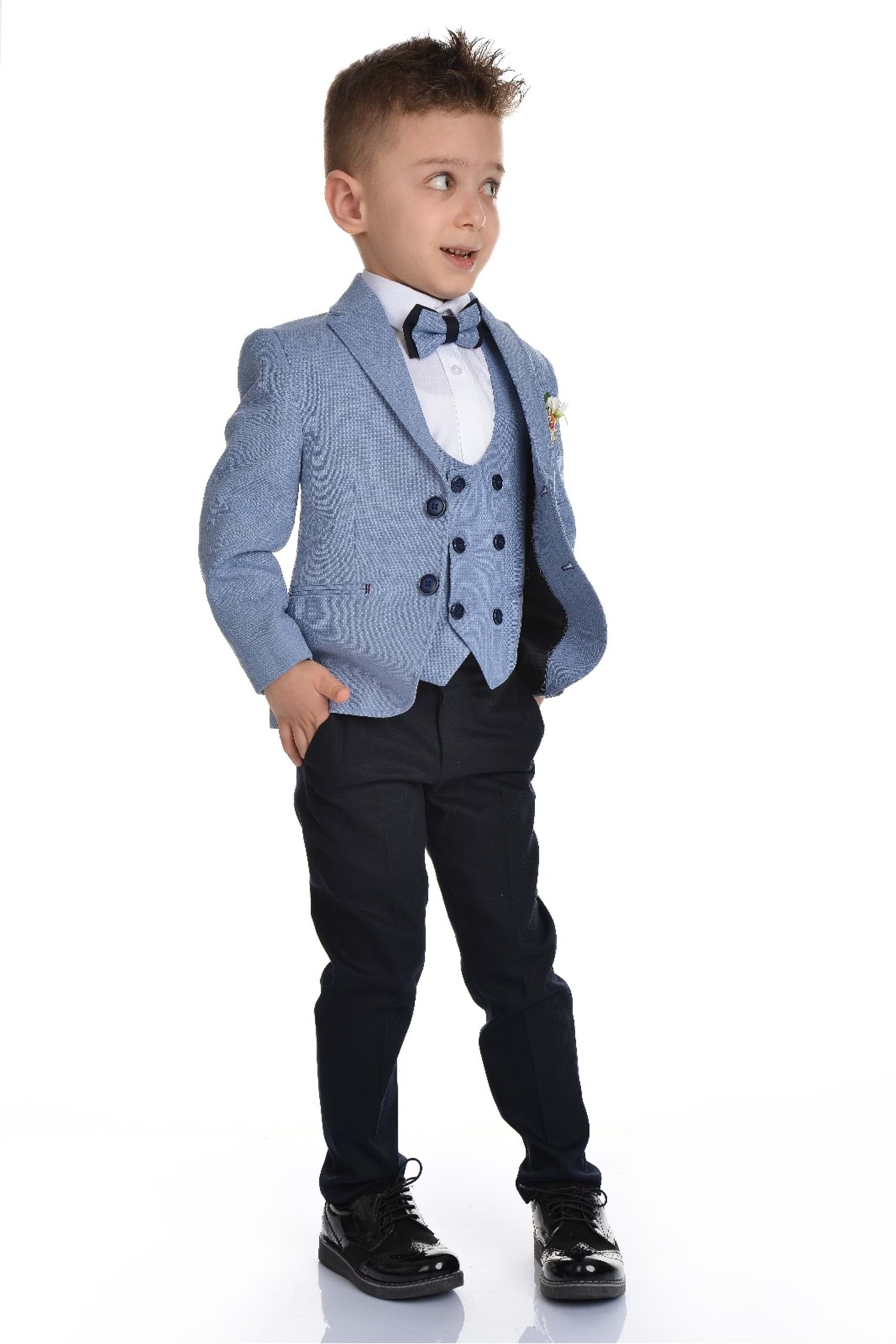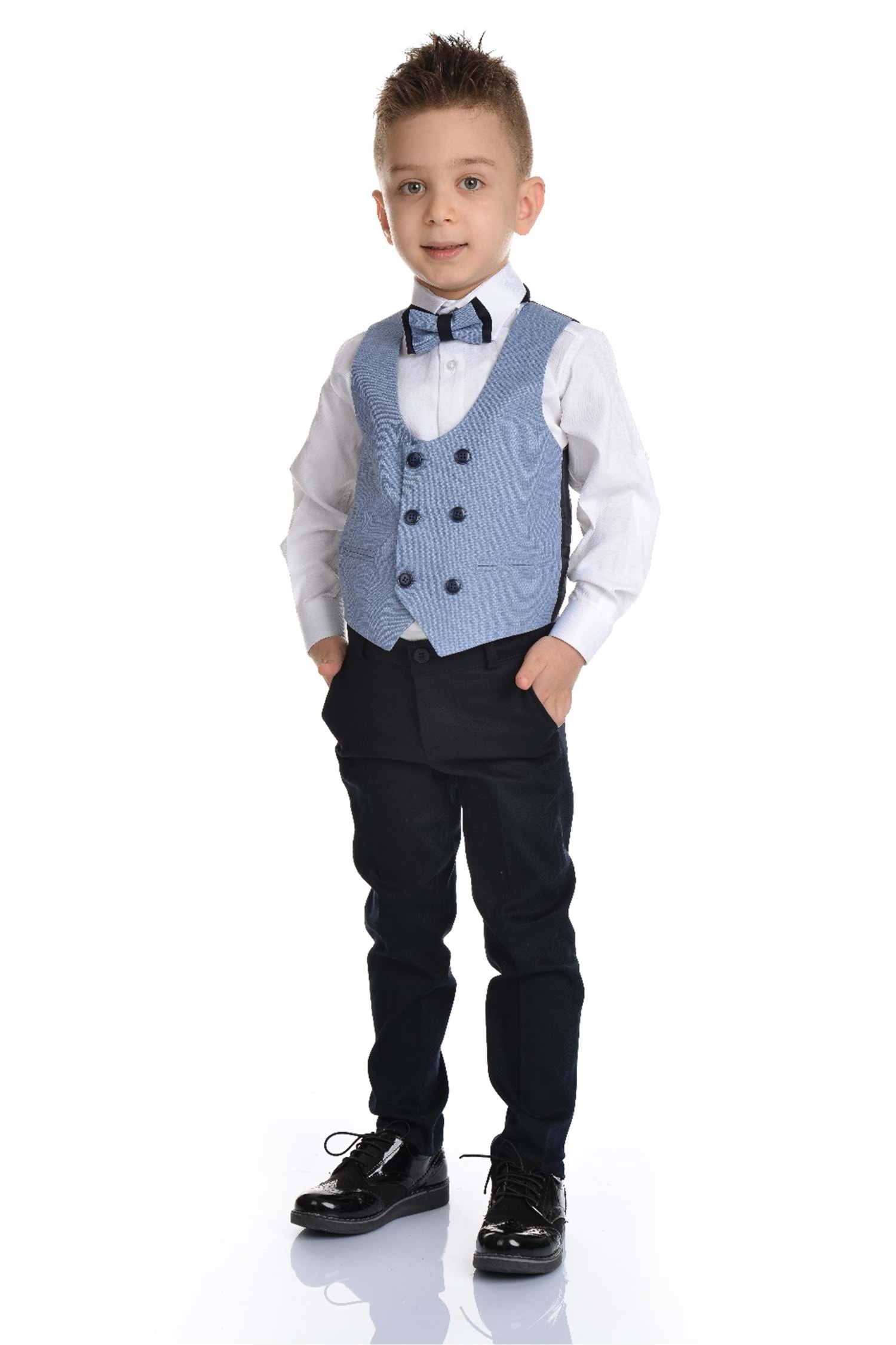 Gömlek, Yelek, Pantolon, Ceket ve Papyon olarak 5 parçadan oluşan Erkek Çocuk Damatlık Takım.