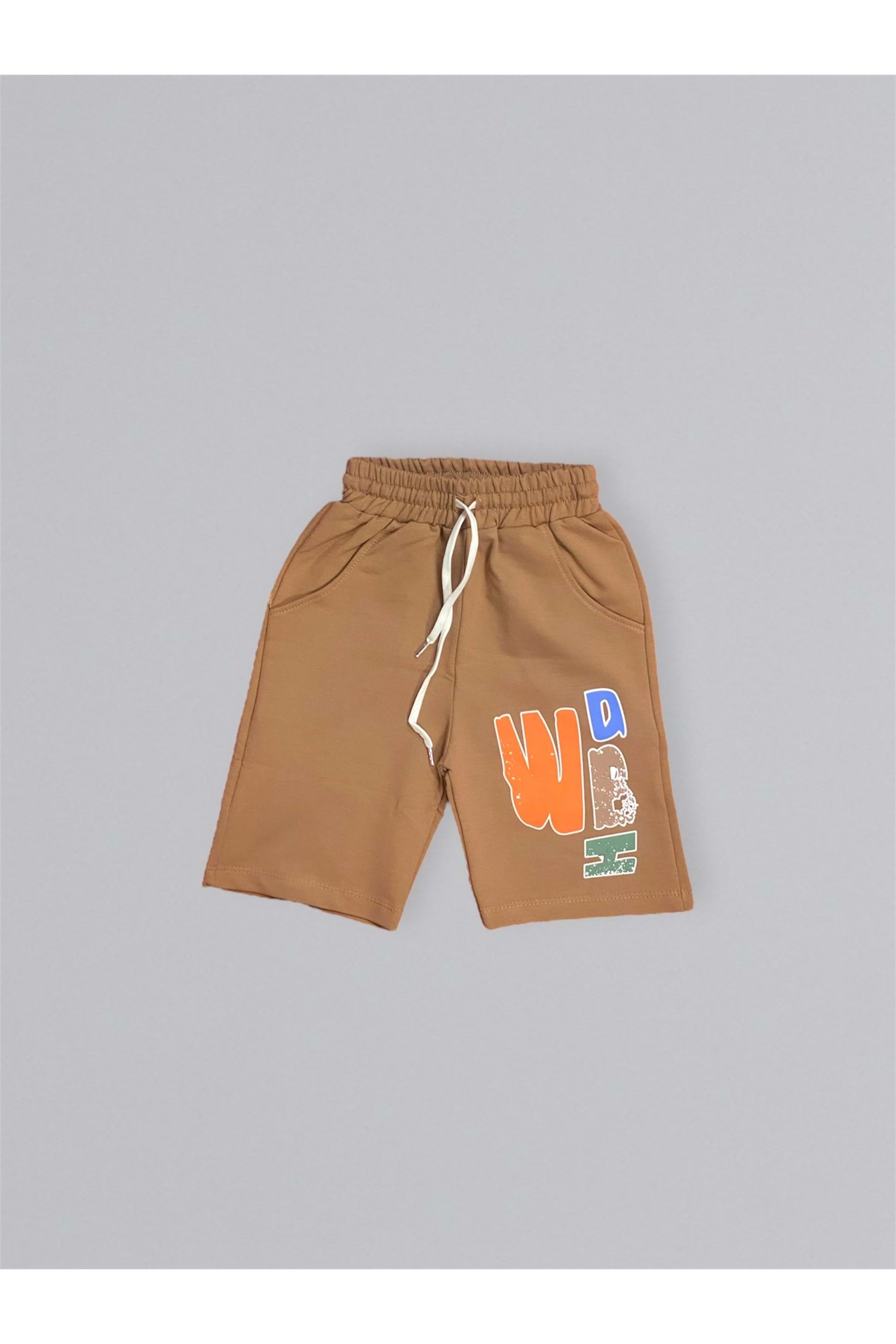 Yumuşacık penye kumaşa şortu cepli , üst baskılı süprem erkek çocuk takım