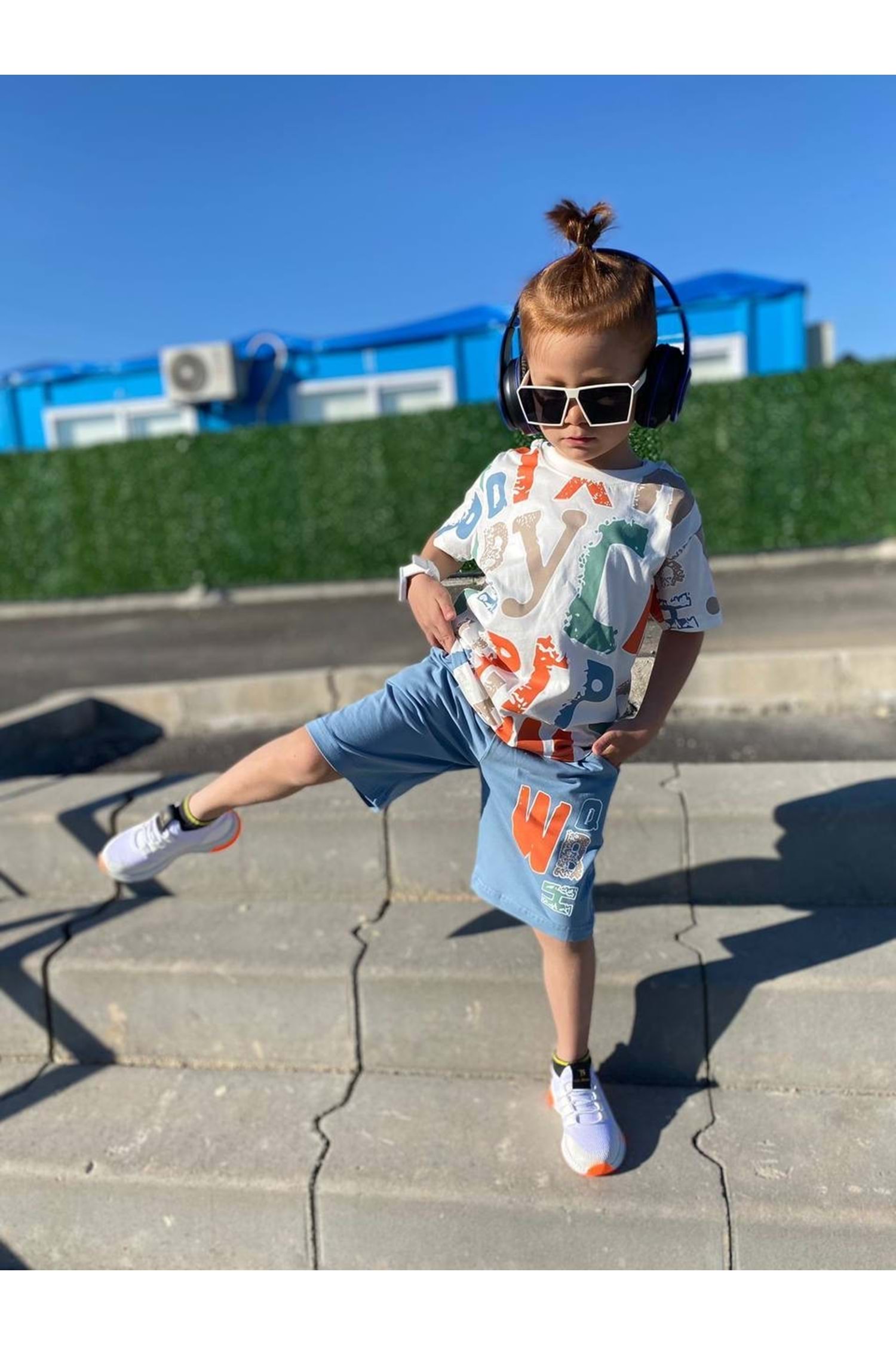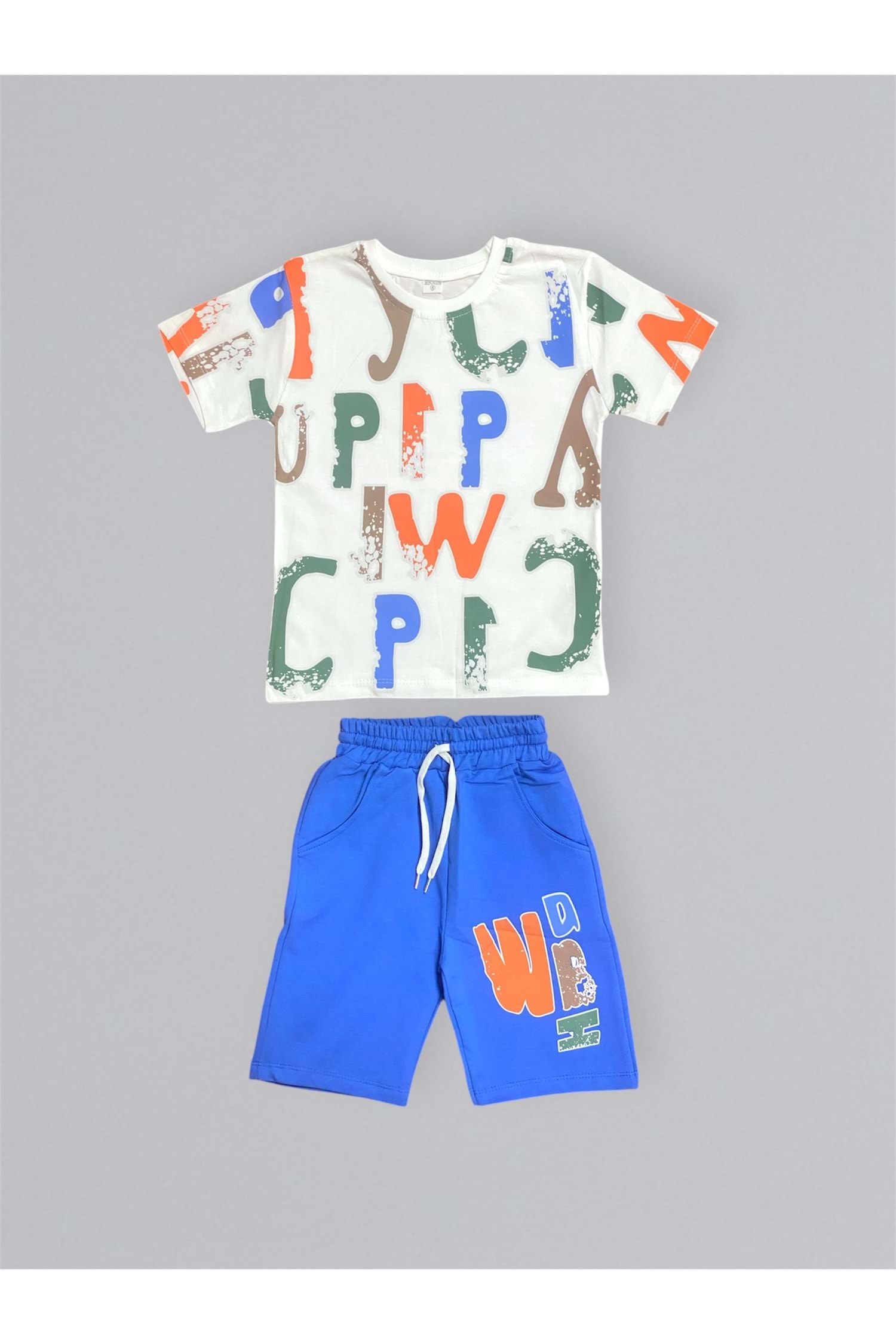 Yumuşacık penye kumaşa şortu cepli , üst baskılı süprem erkek çocuk takım
