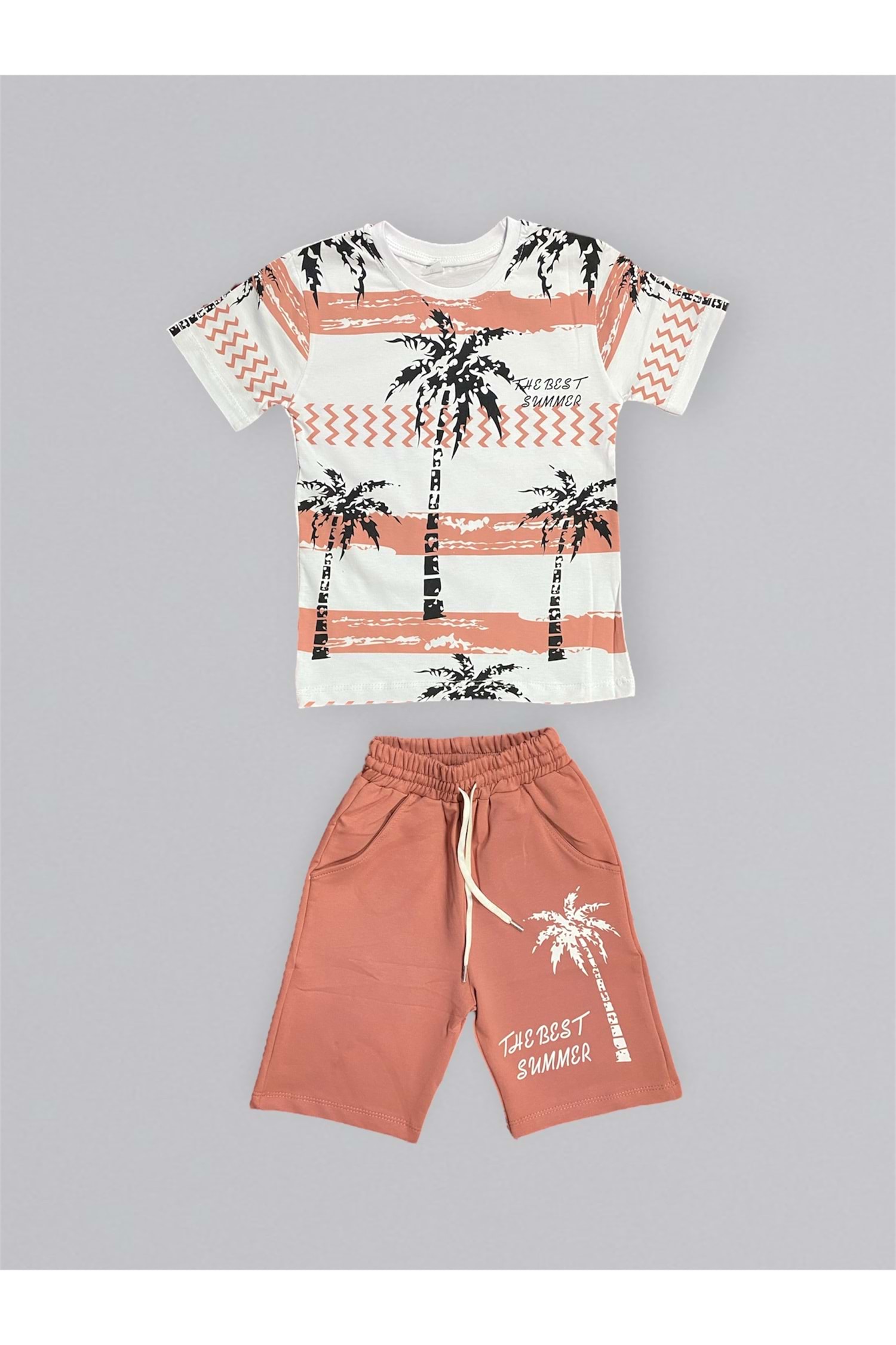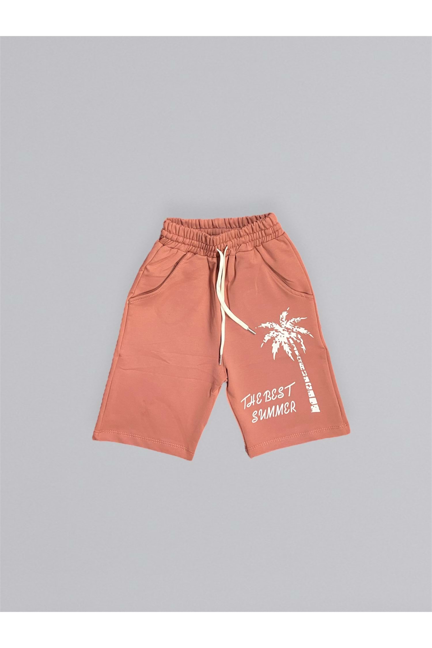Yumuşacık penye kumaşa şortu cepli , üst baskılı süprem erkek çocuk takım