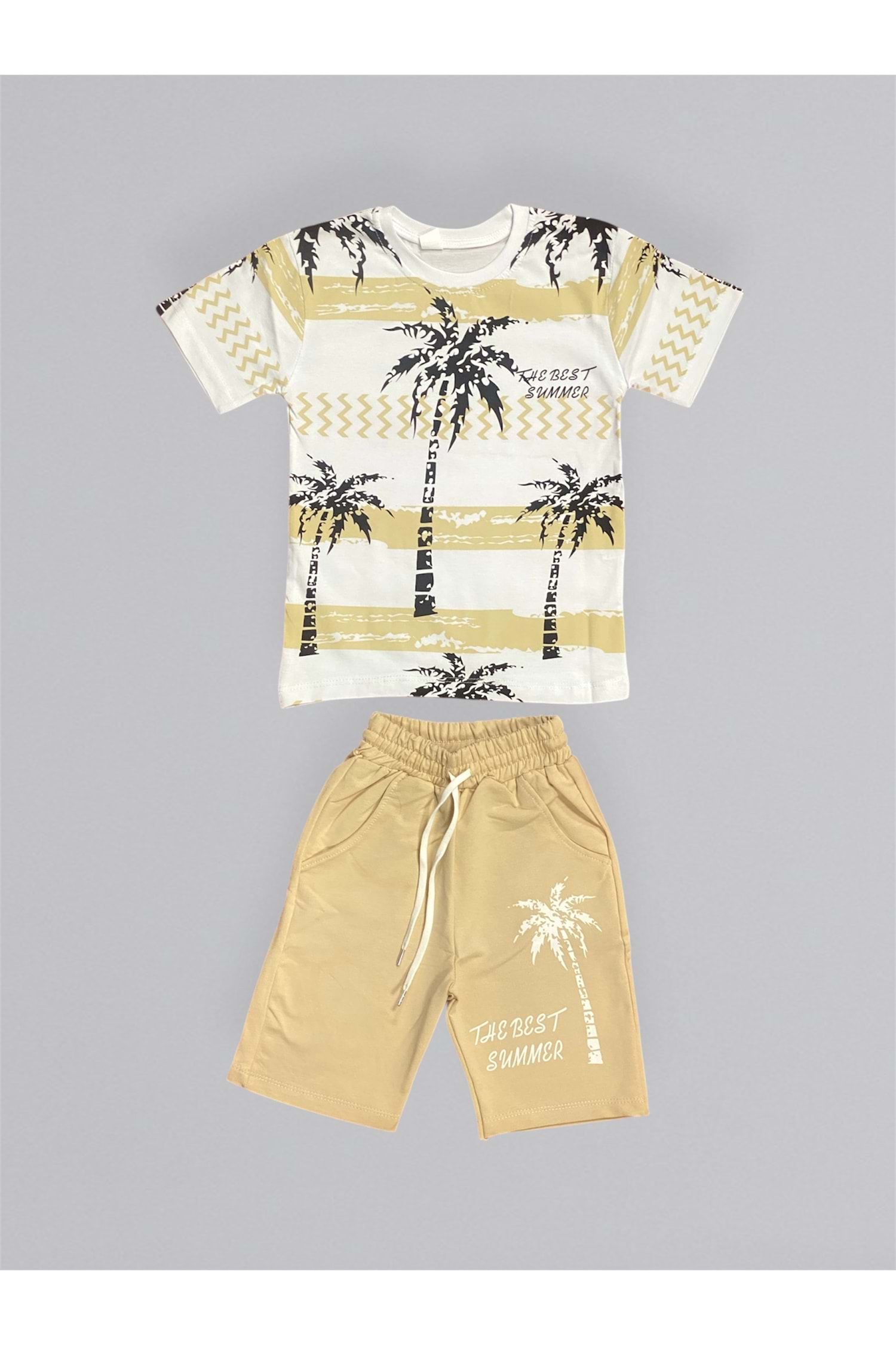 Yumuşacık penye kumaşa şortu cepli , üst baskılı süprem erkek çocuk takım