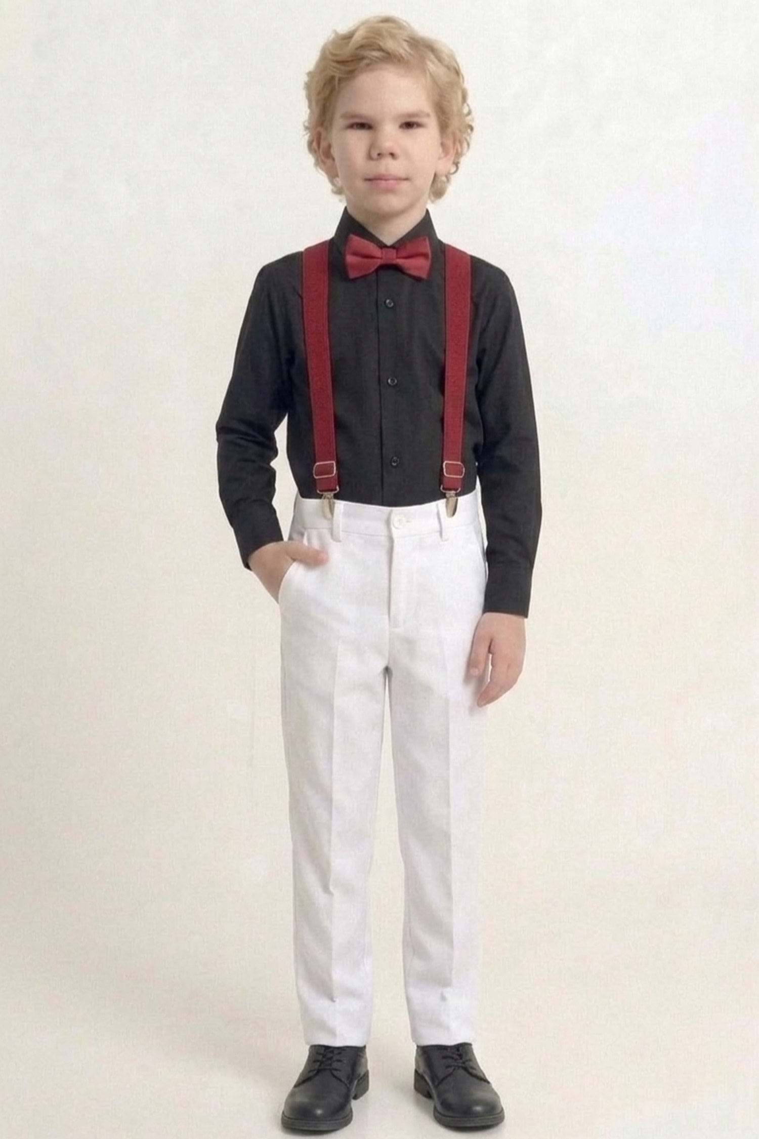 Beyaz Pantolon Gömlekli Erkek Çocuk Takım M00809