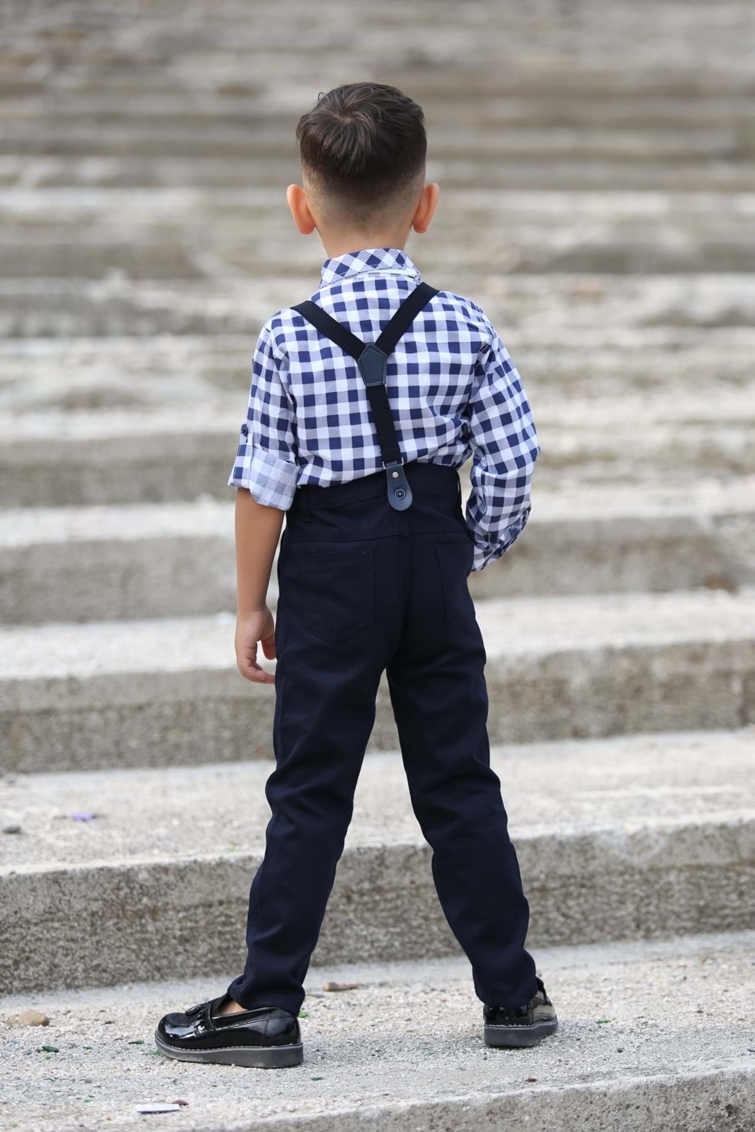 Askı , Papyon , Terikoton Gömlek Ve Pantolondan oluşan 4 parça kombin ürün.