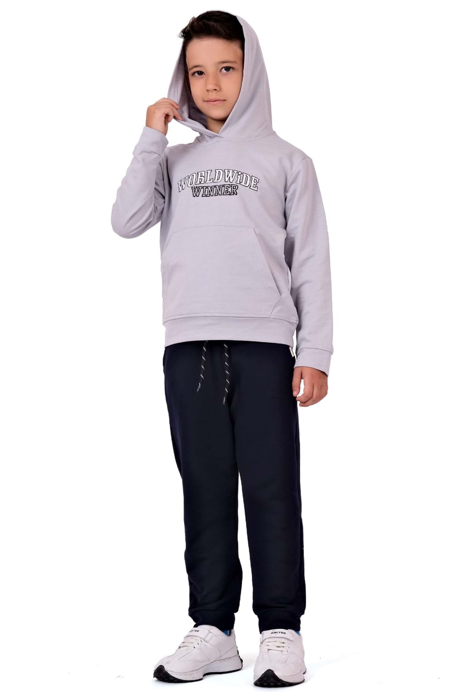 Erkek Çocuk Worldwide Winner Nakışlı Kanguru Cepli Kapüşonlu Eşofman Takımı
