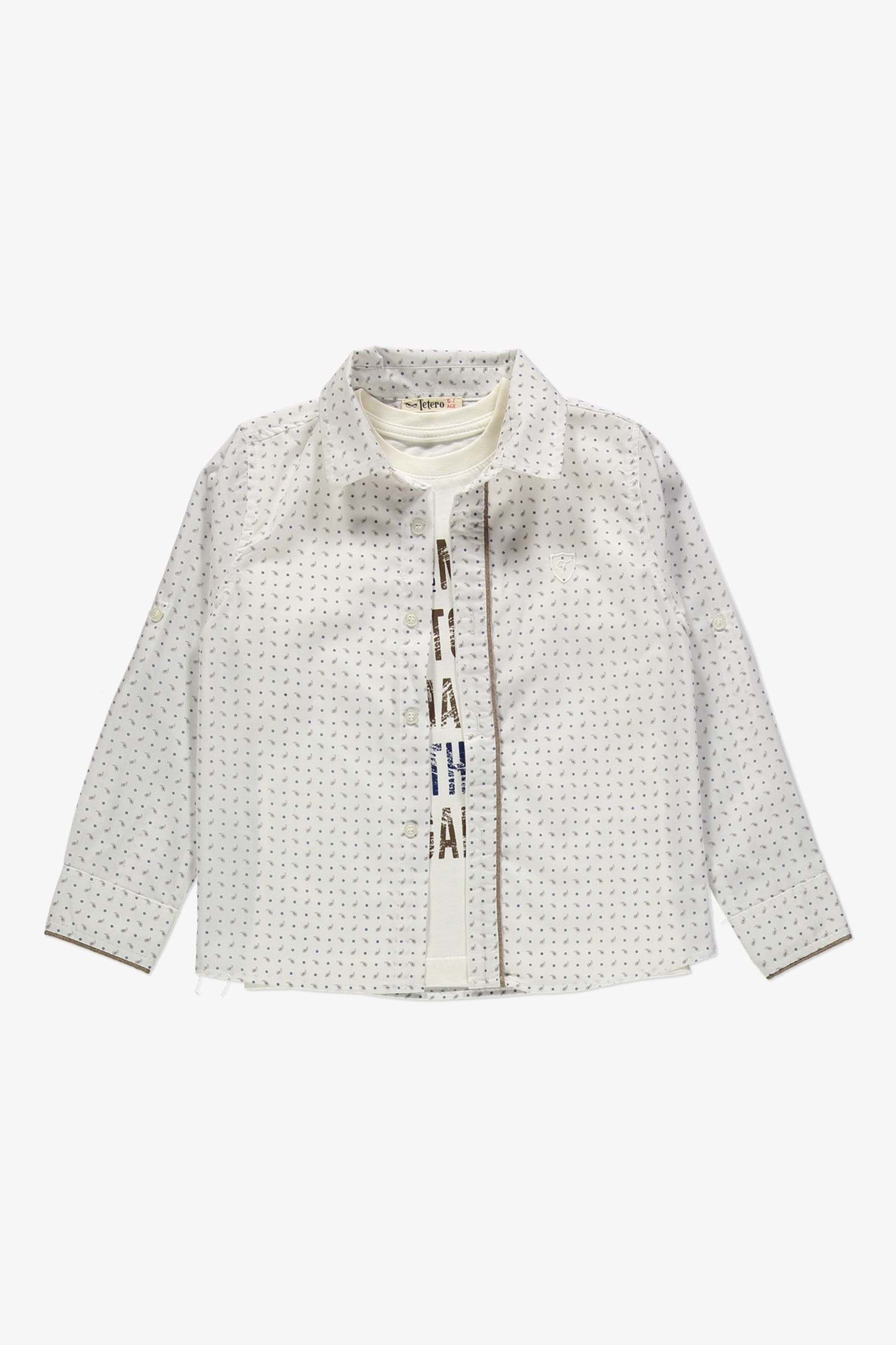 Katlamalı Kollu Gömlek , Kısa Kollu Tişört ve Gabardin Uzun Pantolondan oluşan 3 parça takım .