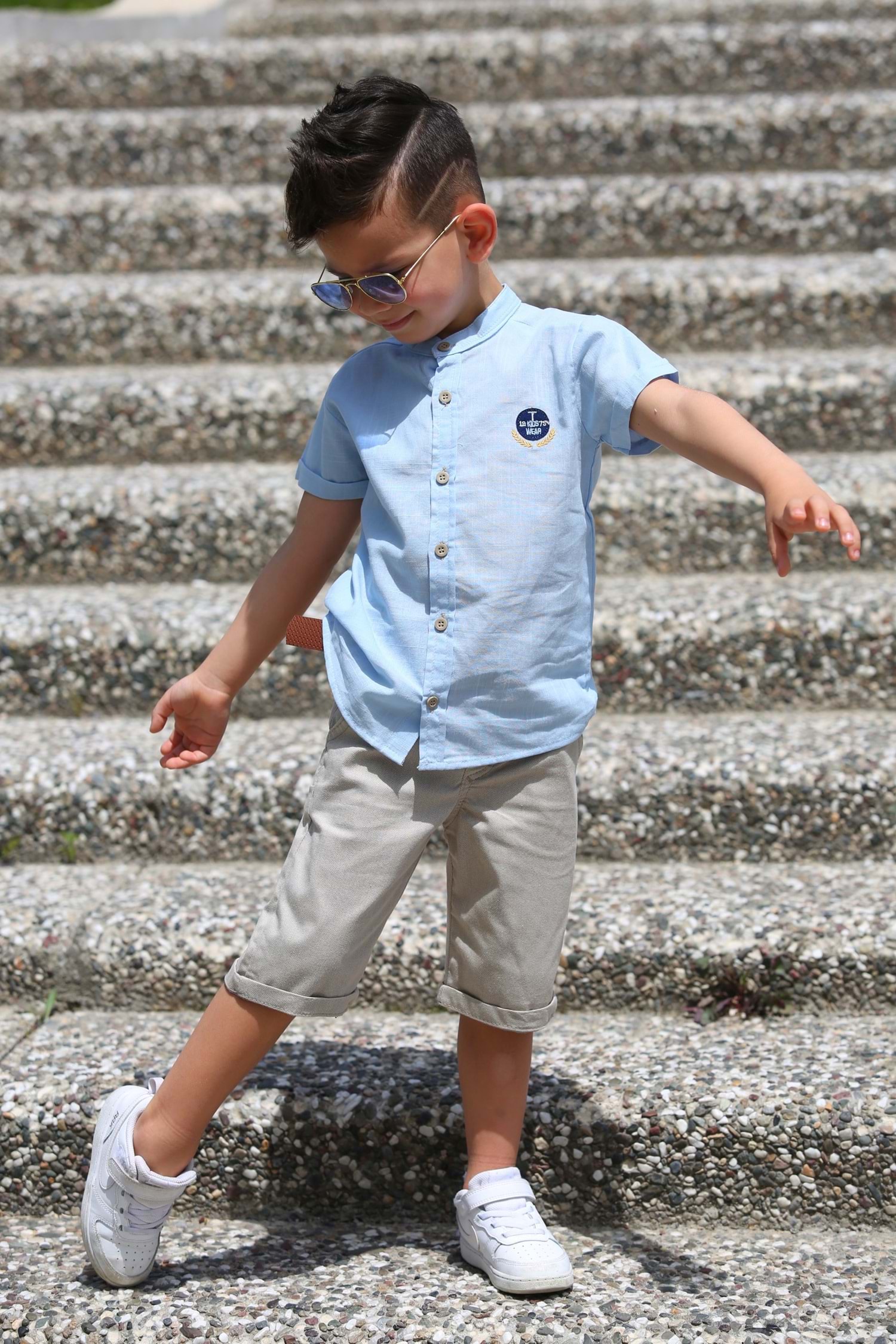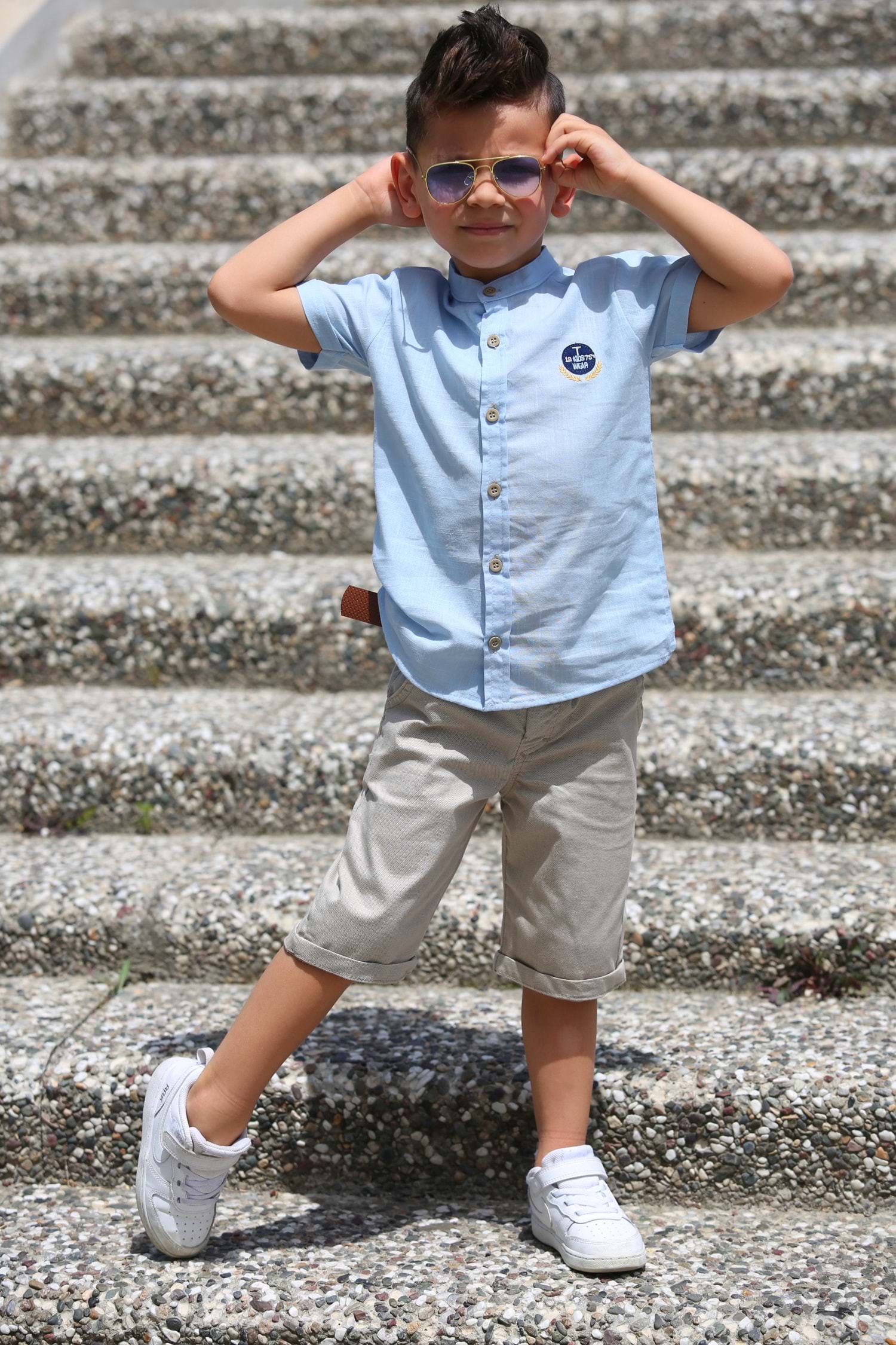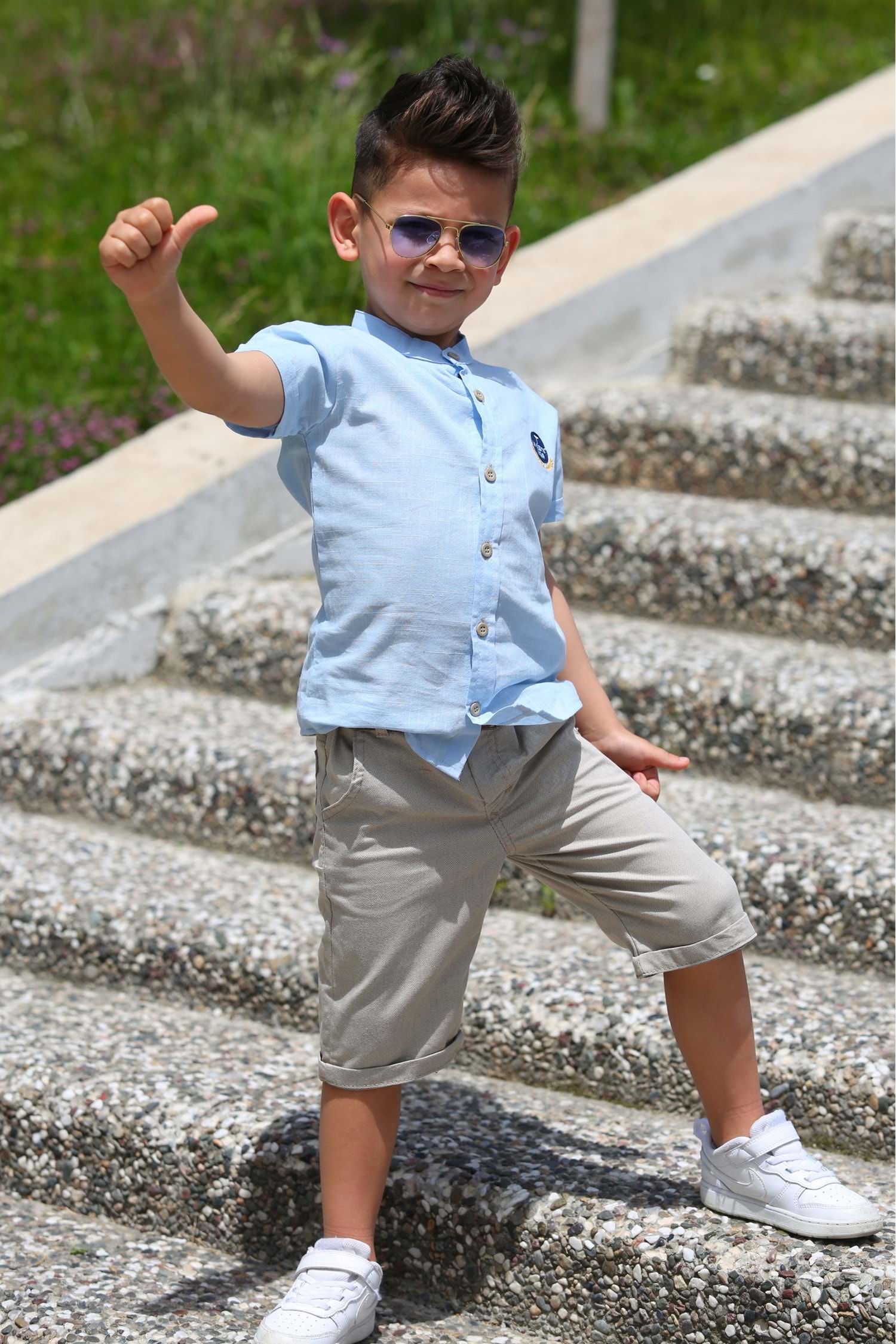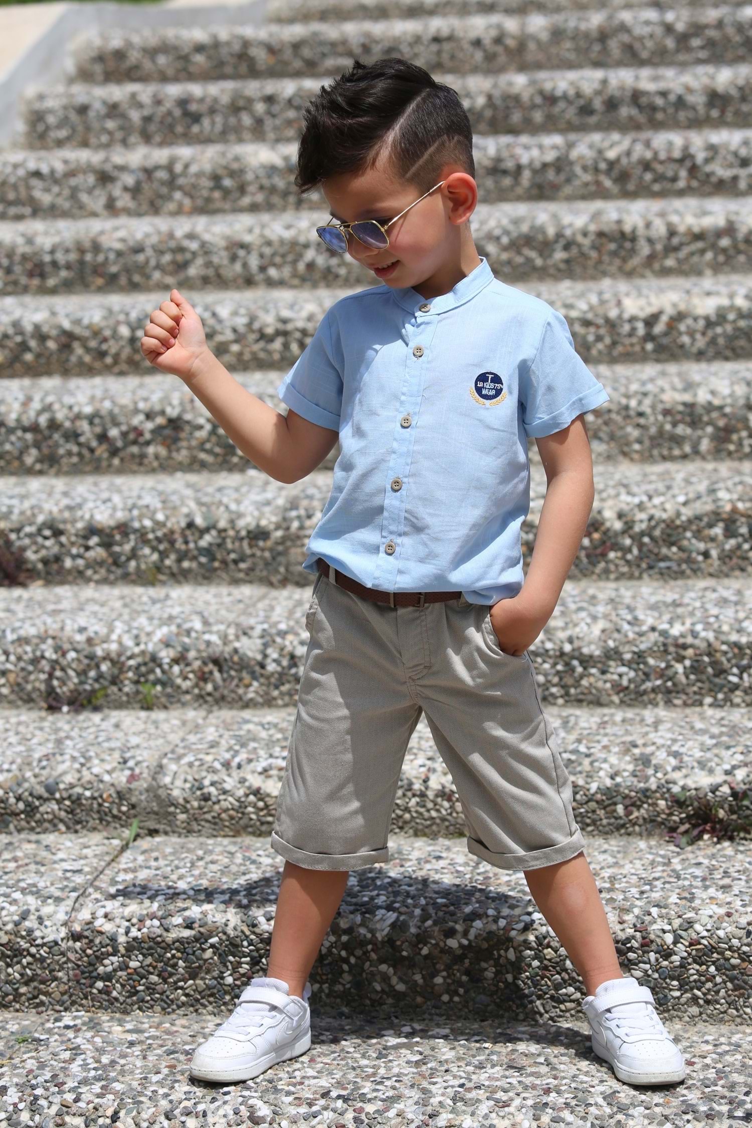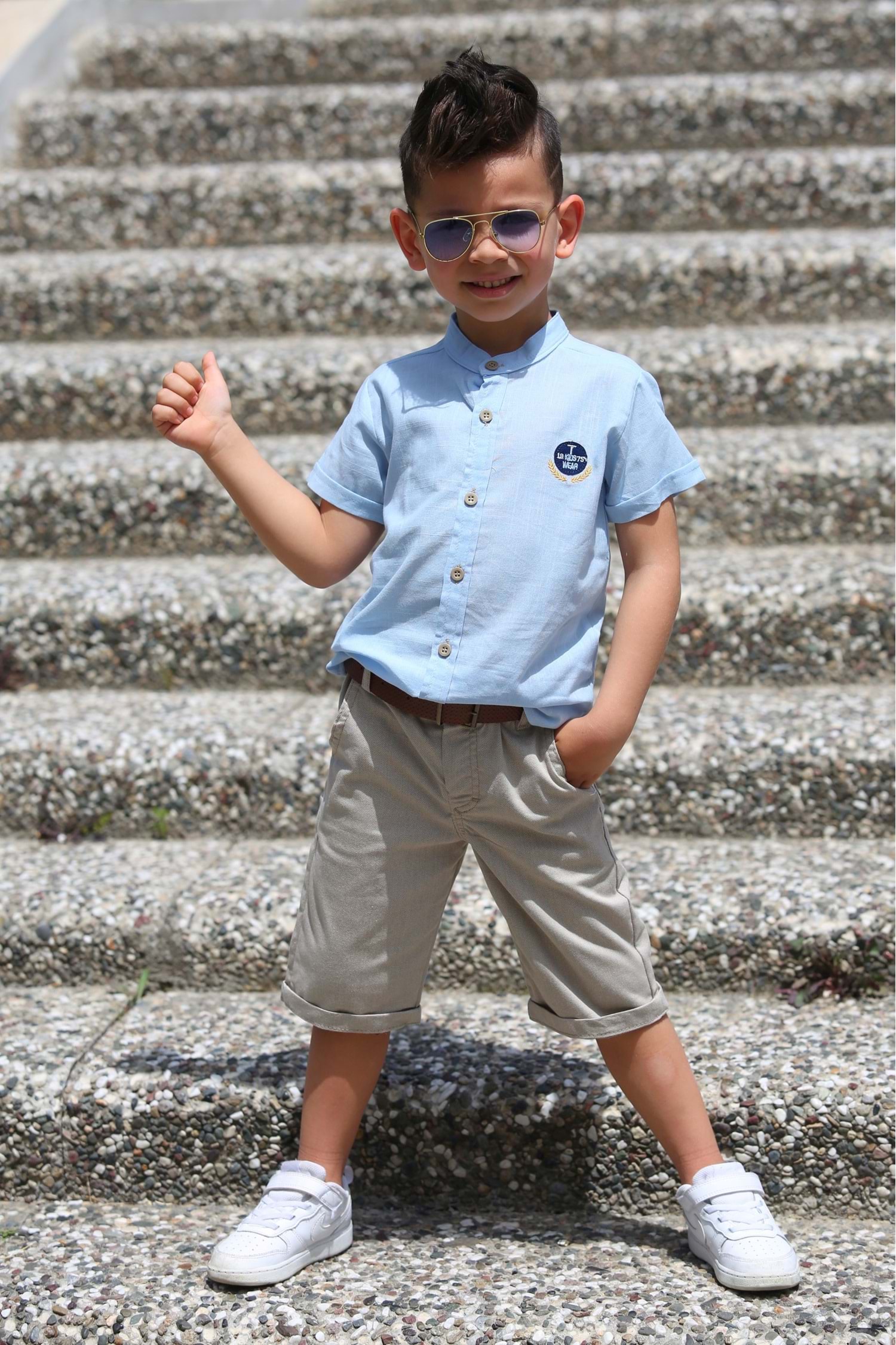 Keten Gömlek Dokuma Pantolon Kemerli Erkek Çocuk Takım MNK4306