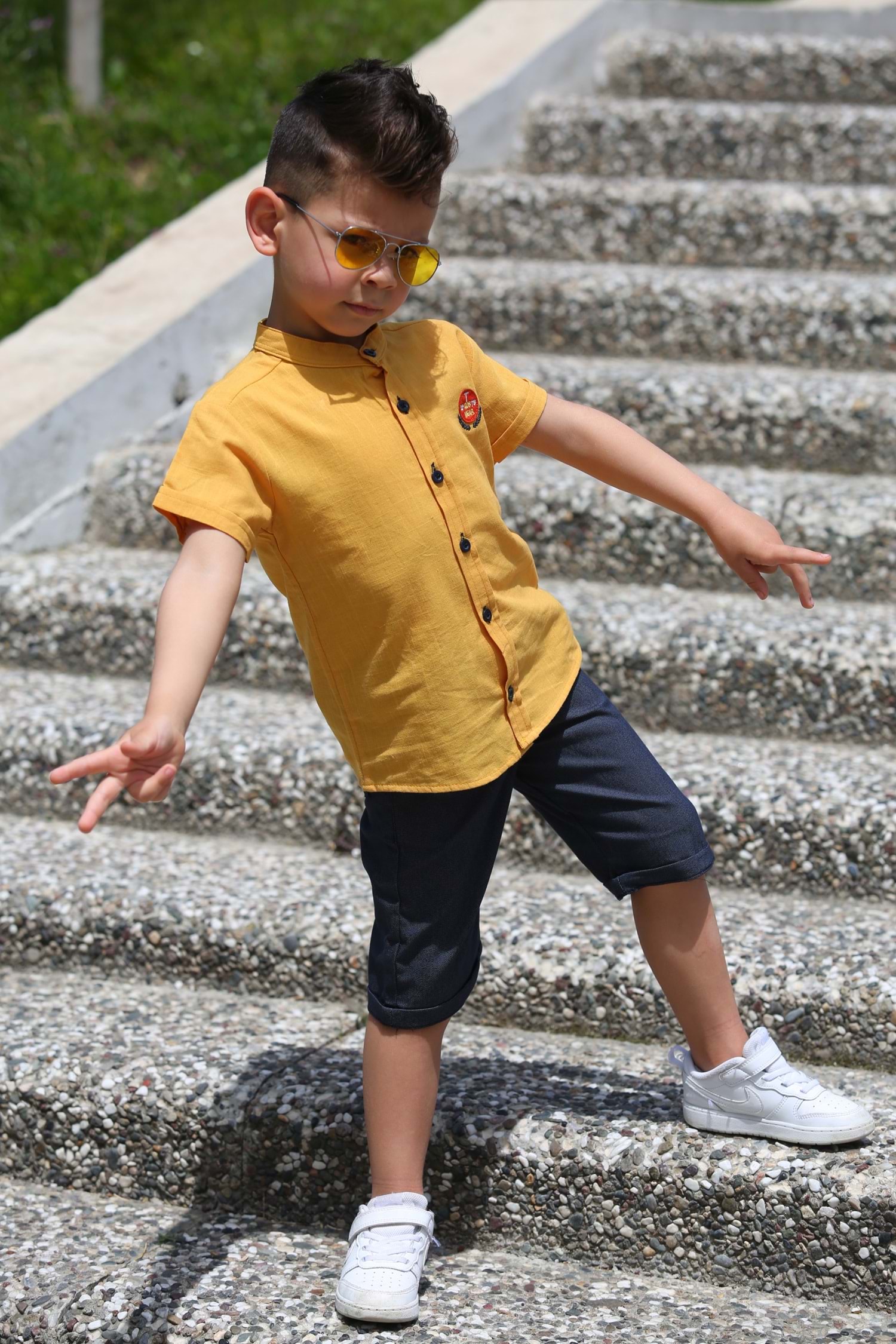 Keten Gömlek Dokuma Pantolon Kemerli Erkek Çocuk Takım MNK4306
