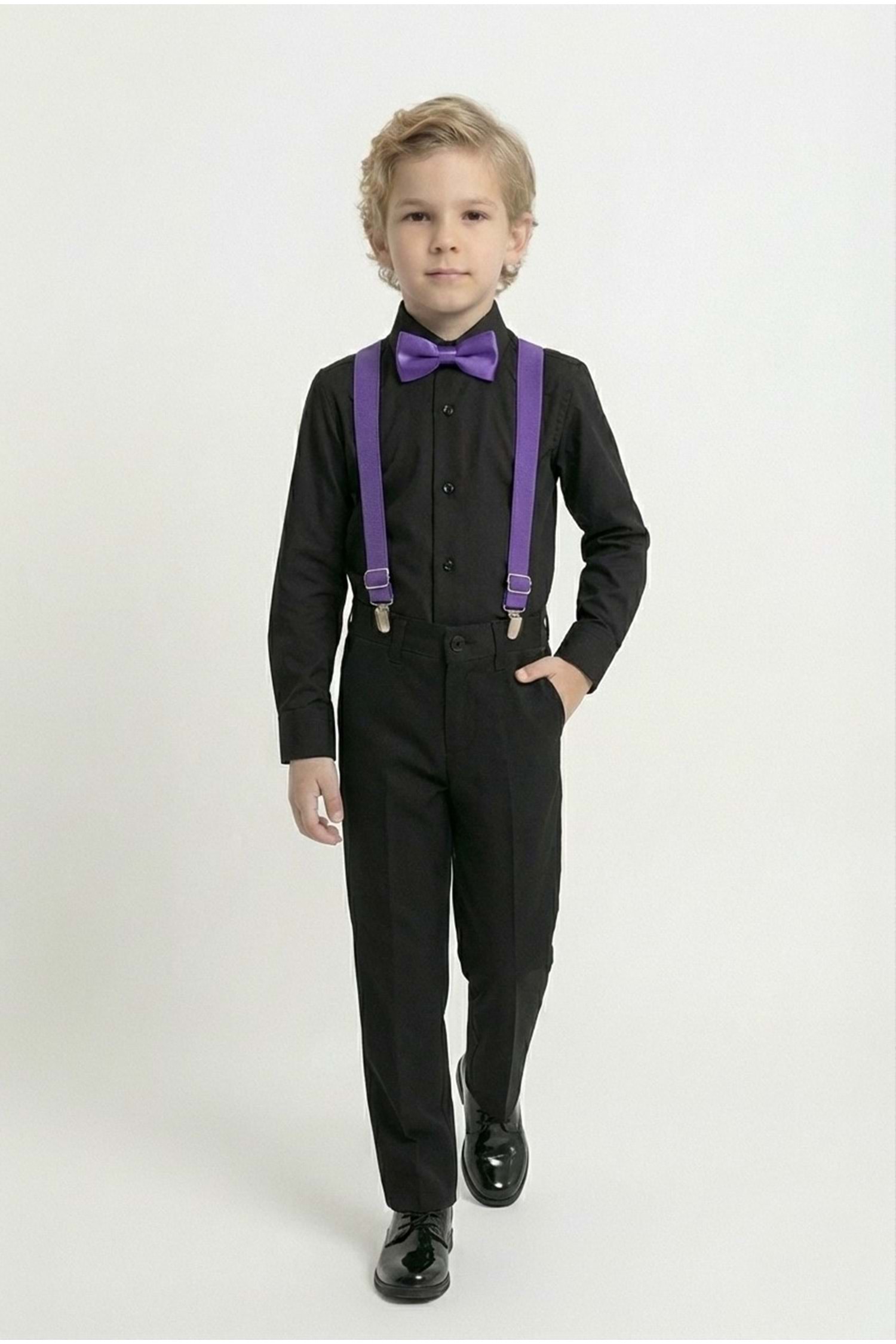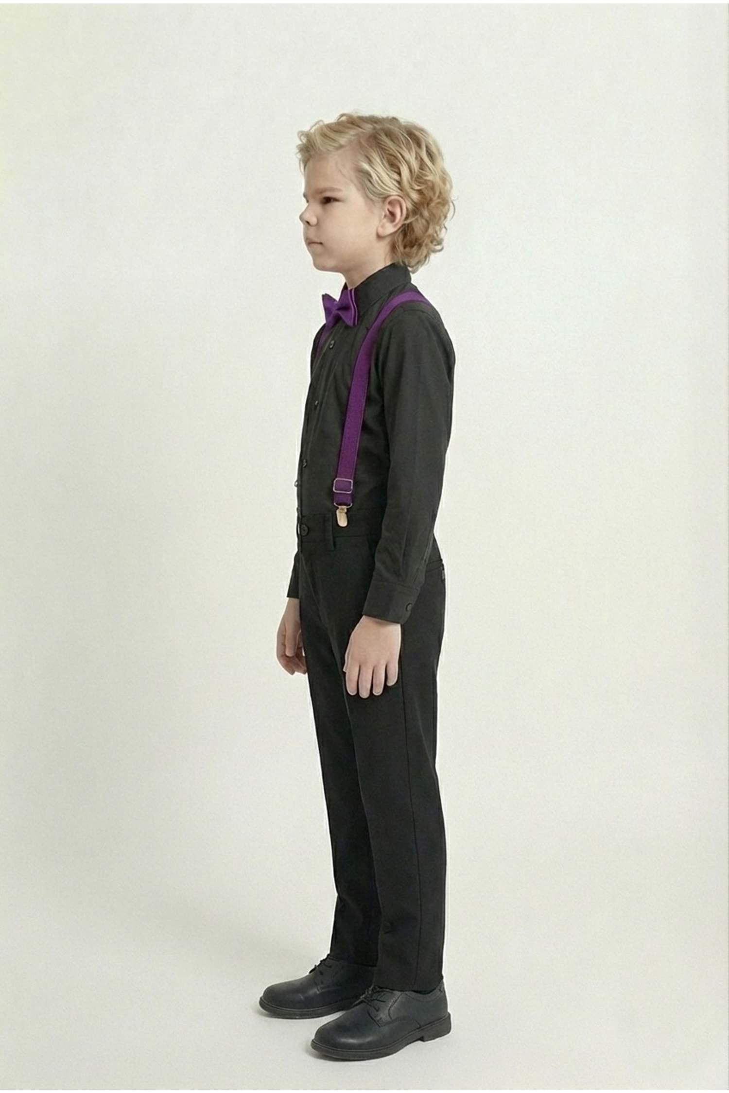 Gabardin pantolon formunu uzun süre korur, kırışmaya dayanıklıdır. Nefes alan gömlek kumaşı terlemeyi minimize eder. Ayarlanabilir askı ve papyon ise kombini tamamlayarak modern ve şık bir görünüm kazandırır.