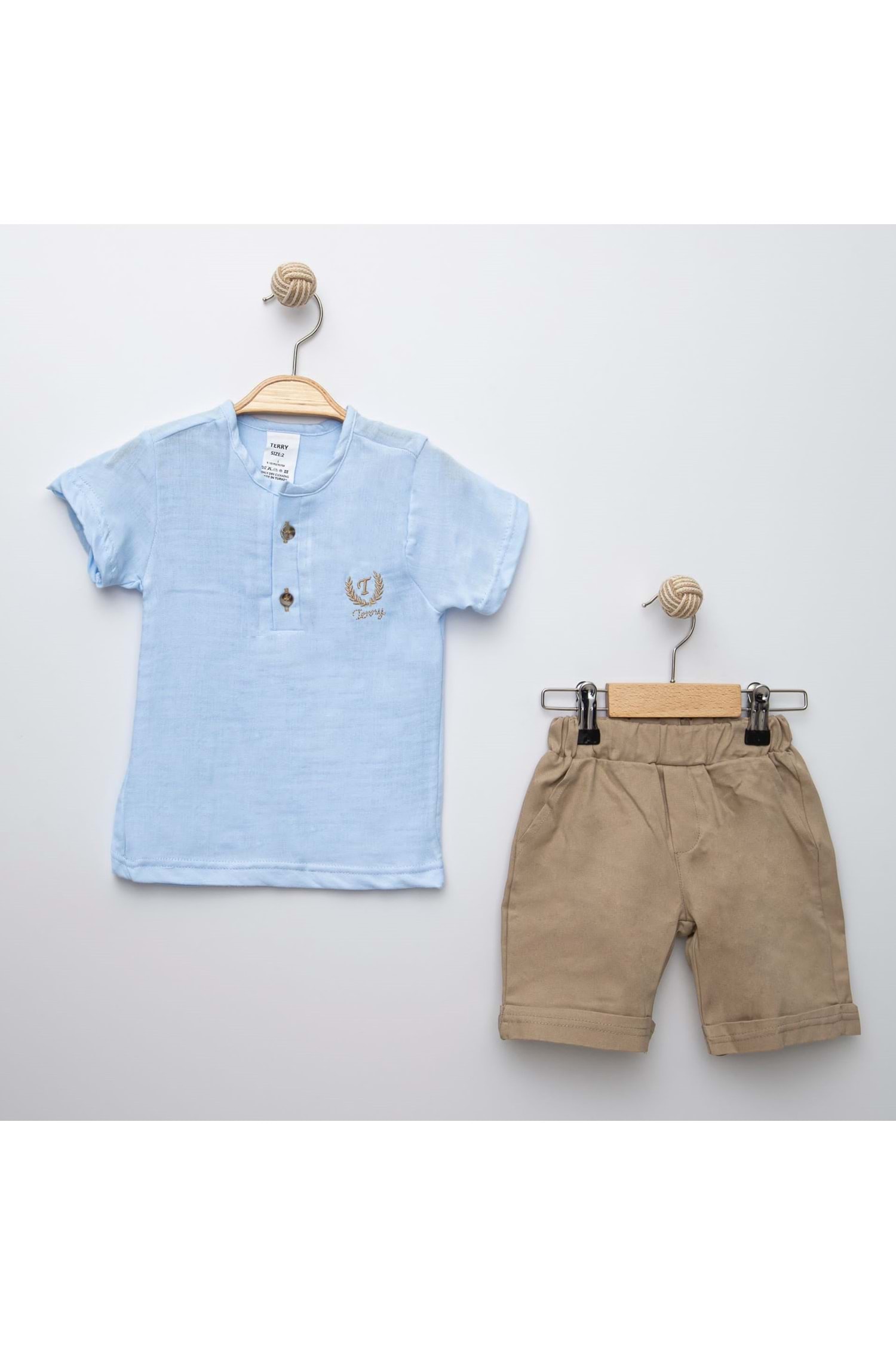 Gömlek ve Cepli Şort Olarak İki Parçadan Oluşan, Nakış ile Modellenmiş Sıfır Yaka Erkek Çocuk Takım.
