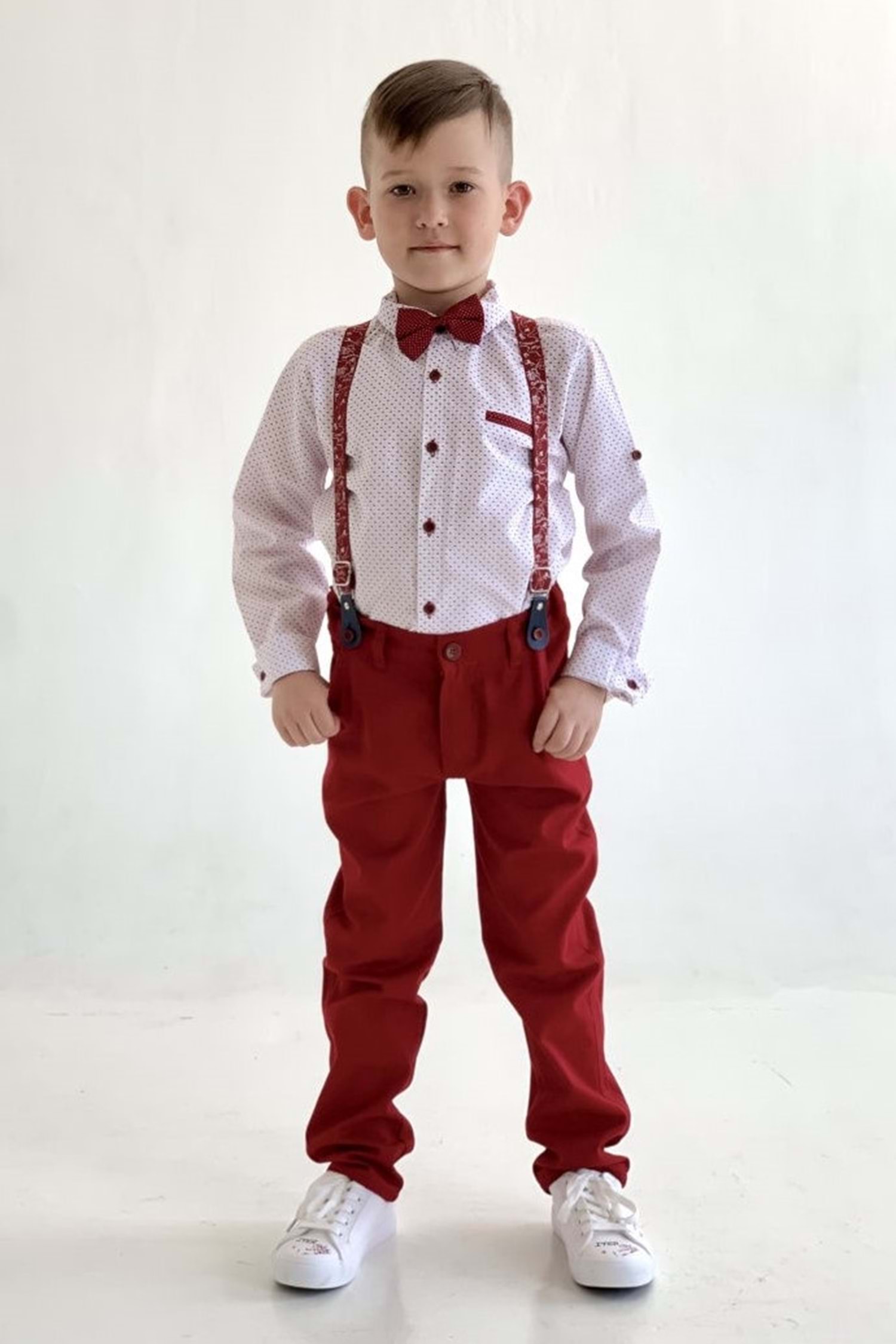 Askı , Papyon , Gömlek Ve Pantolondan oluşan 4 parça kombin ürün. Ayakkabı görseldir ürüne dahil değildir.