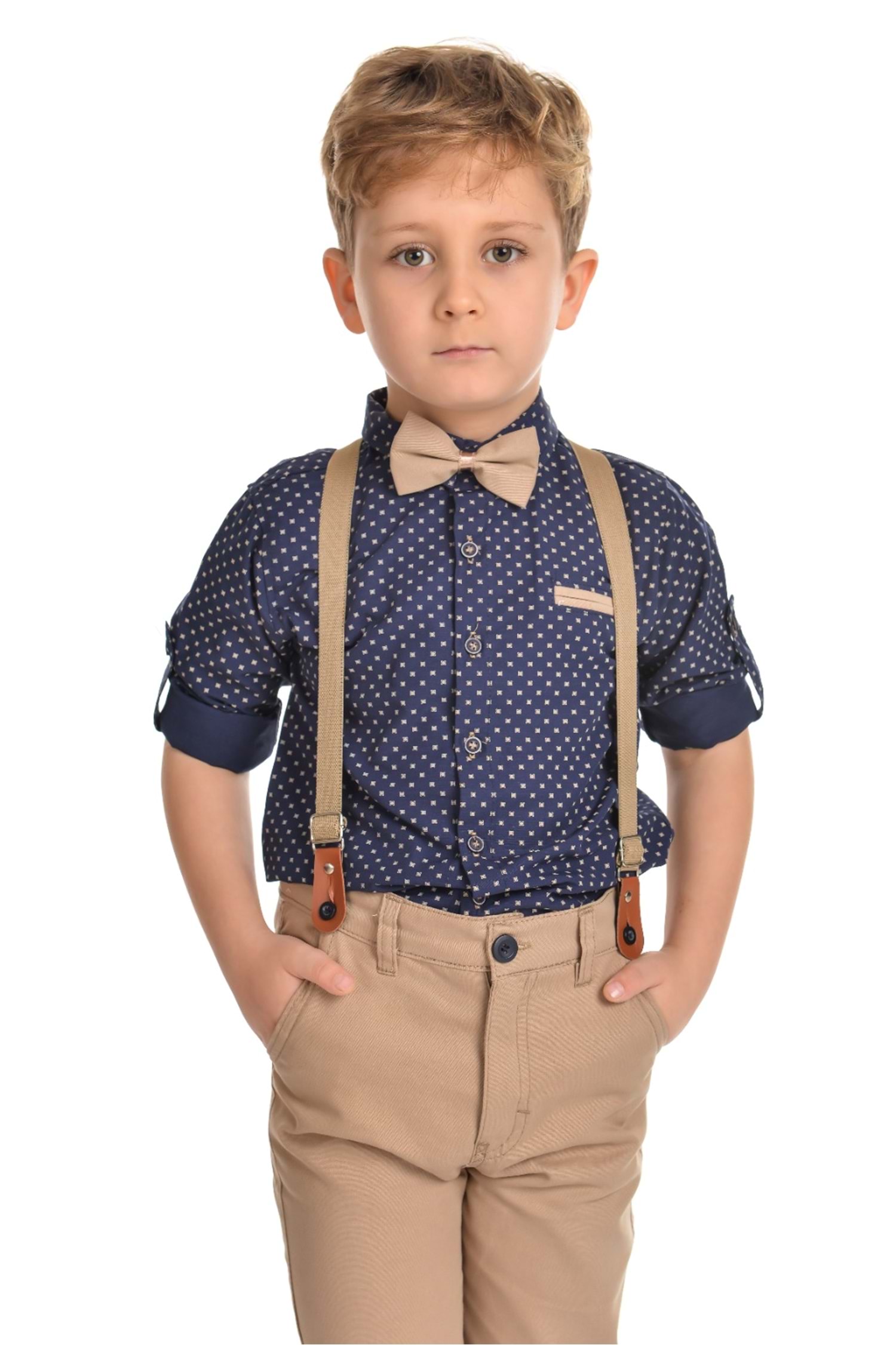 Uzun Pantolon Koyu Desenli Gömlek Erkek Çocuk Takımı