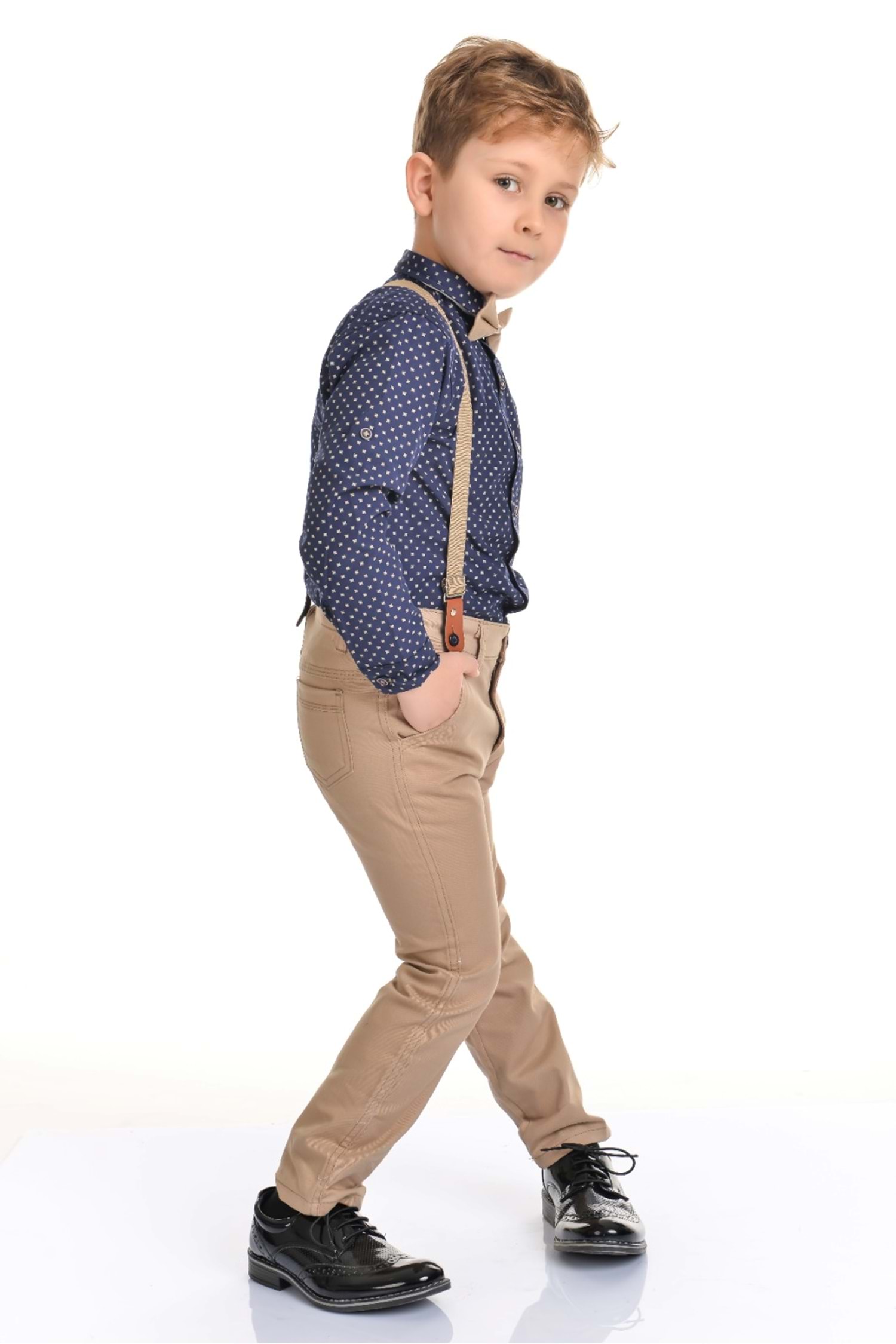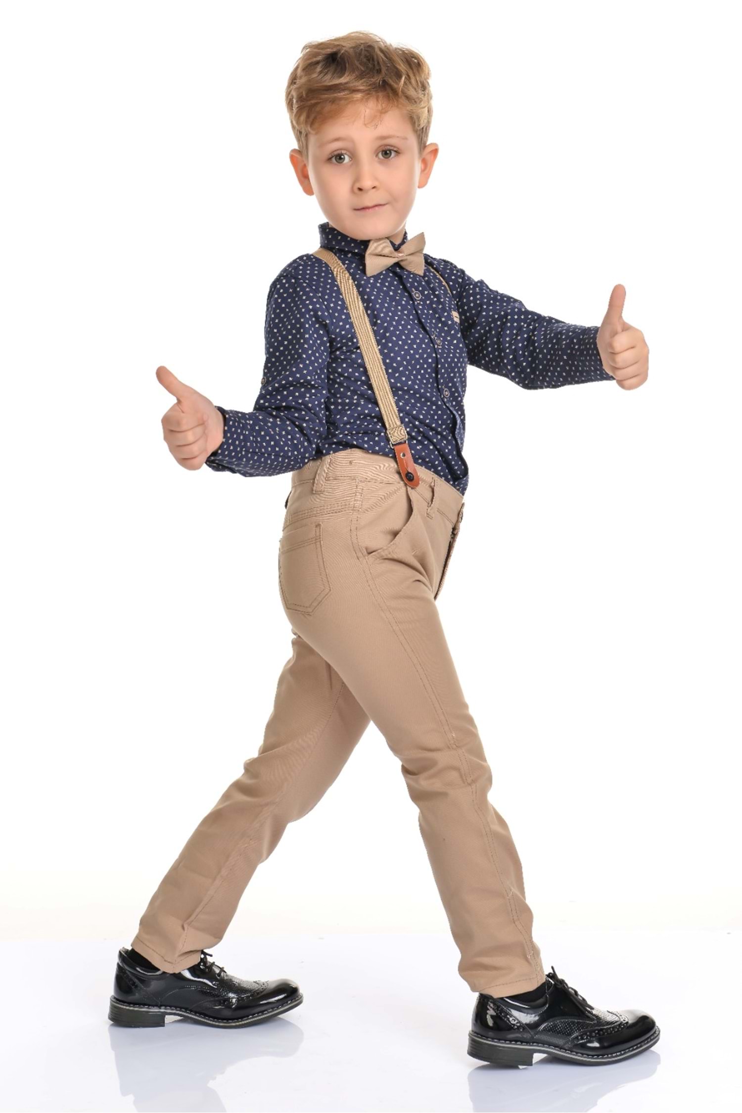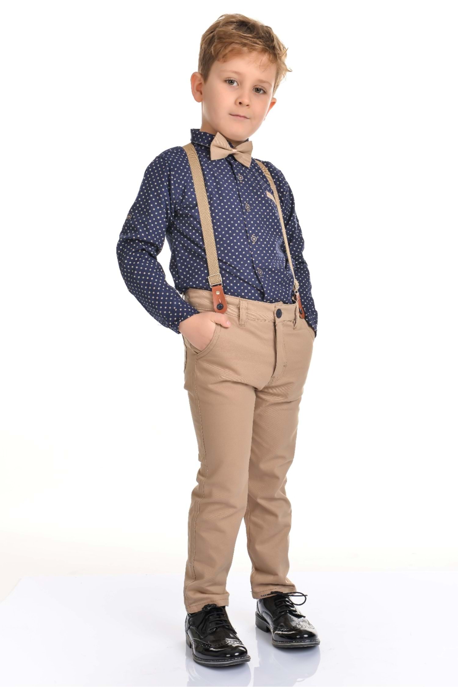 Uzun Pantolon Koyu Desenli Gömlek Erkek Çocuk Takımı