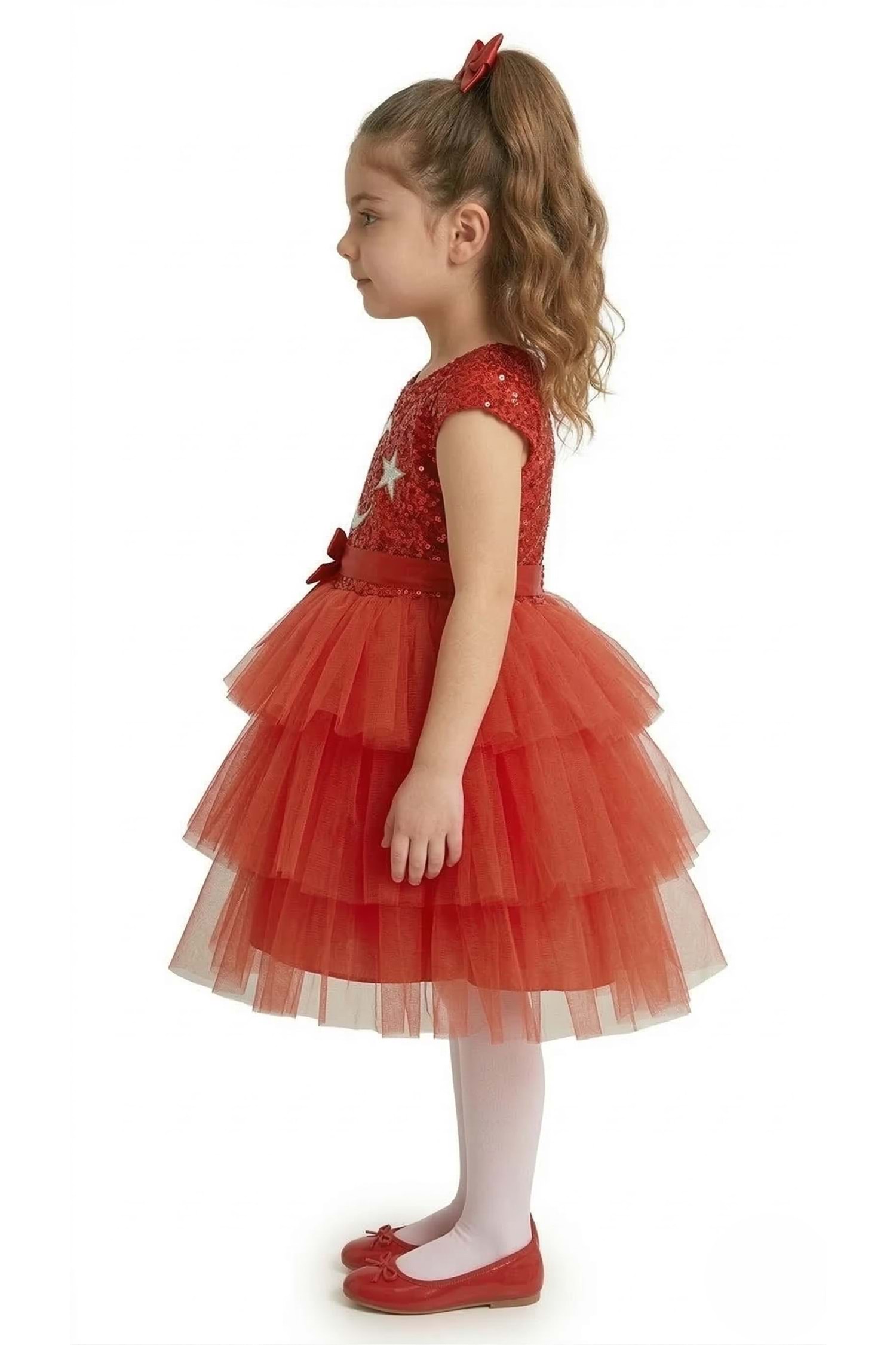 23 Nisan ve Milli Bayramlara Özel: Pul Payetli Ay Yıldızlı Kız Çocuk Elbisesi (Kırmızı & Beyaz)