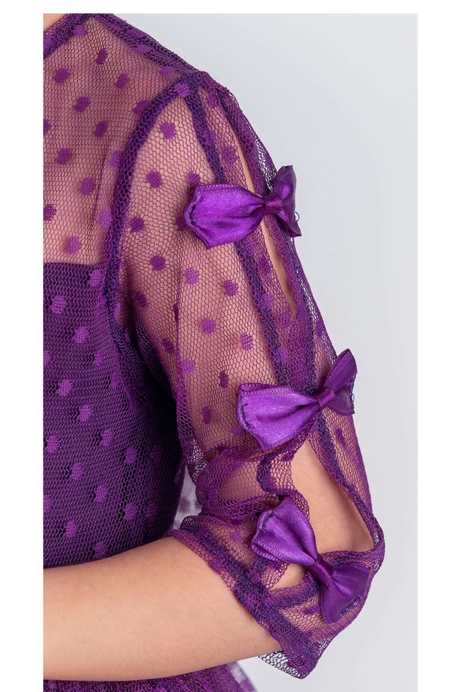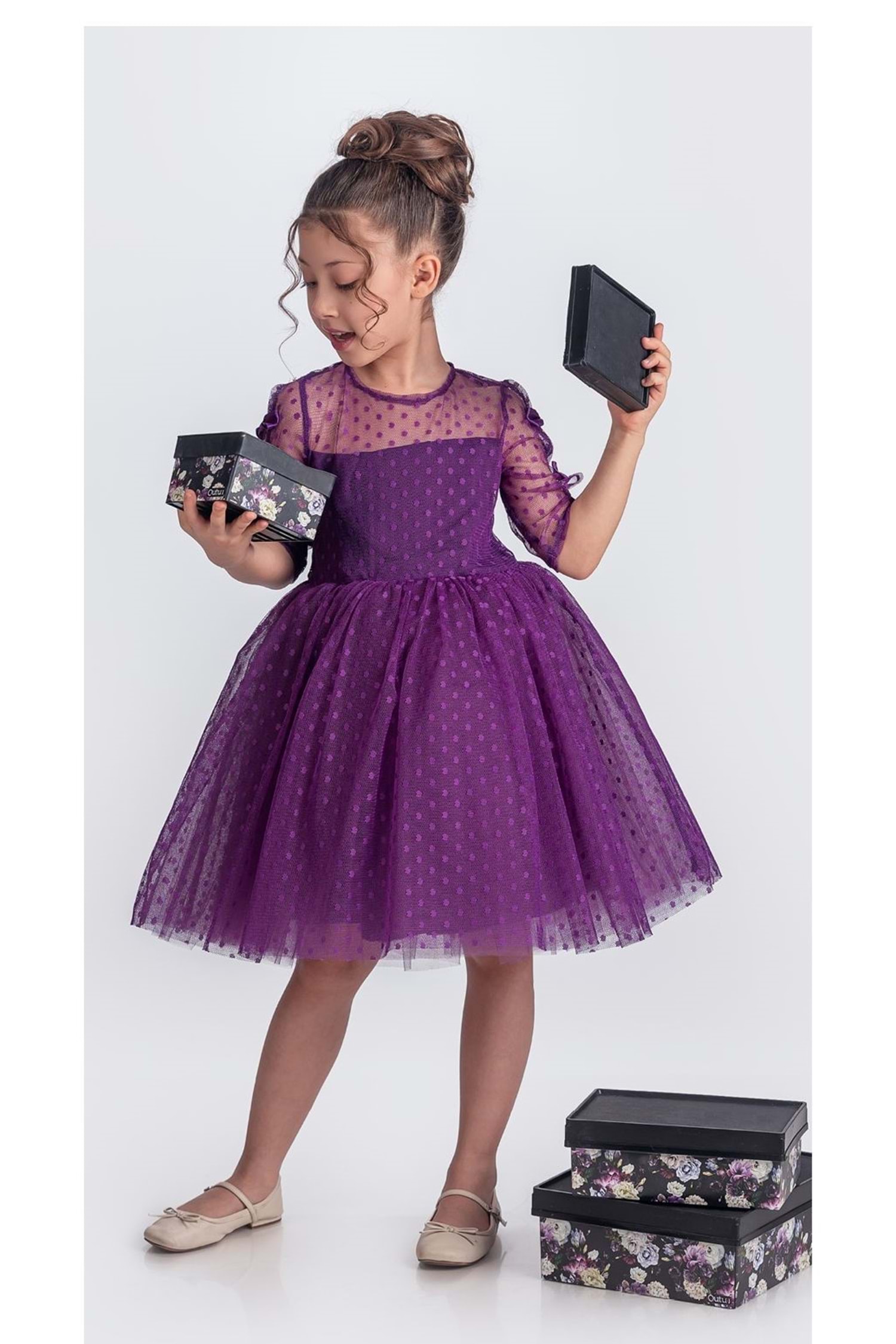 Dantel Puanlı, Uzun Kol Prenses Kız Çocuk Elbise M00707
