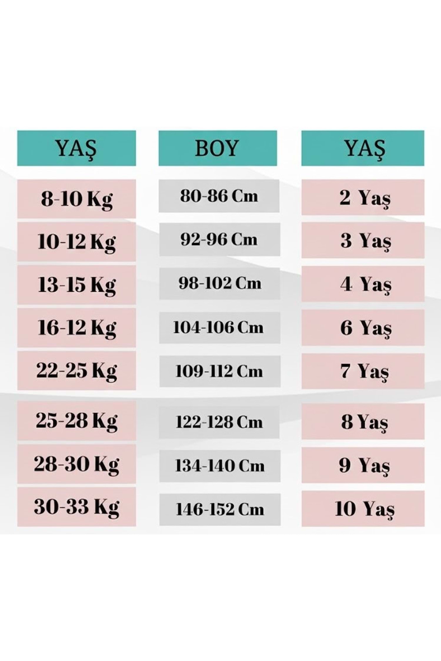 Kızınızın yaşına ve ölçülerine en uygun elbiseyi bulmanız için aşağıdaki **çocuk elbisesi ölçü tablosunu** inceleyebilirsiniz. Elbiseyi uzun süre keyifle kullanabilmesi için lütfen Yaş, Boy ve Kilo bilgilerini kontrol ederek doğru bedeni sipariş edin: