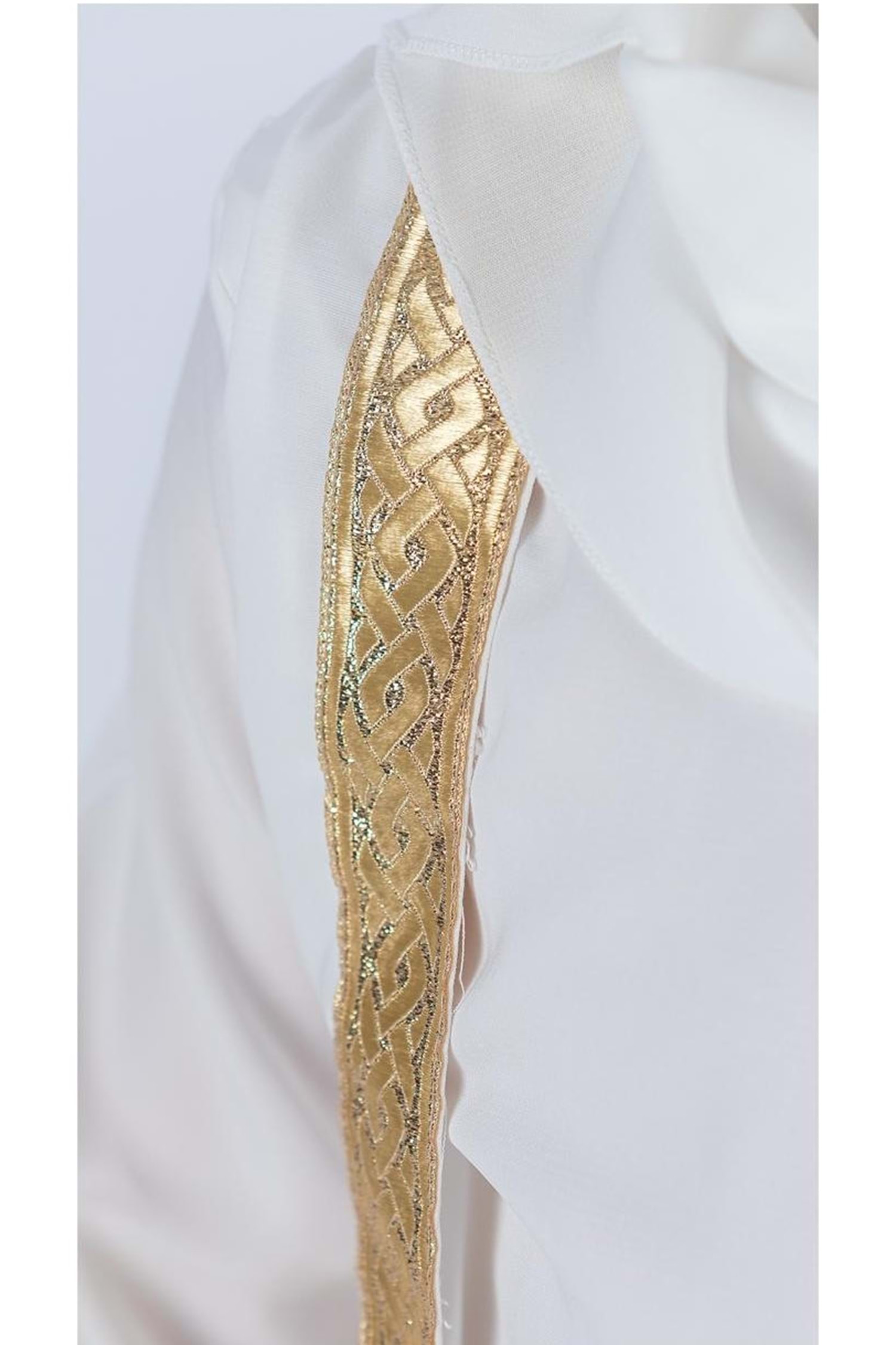 Detay: Altın şeritli işleme detayları ve bilekte süs bordür