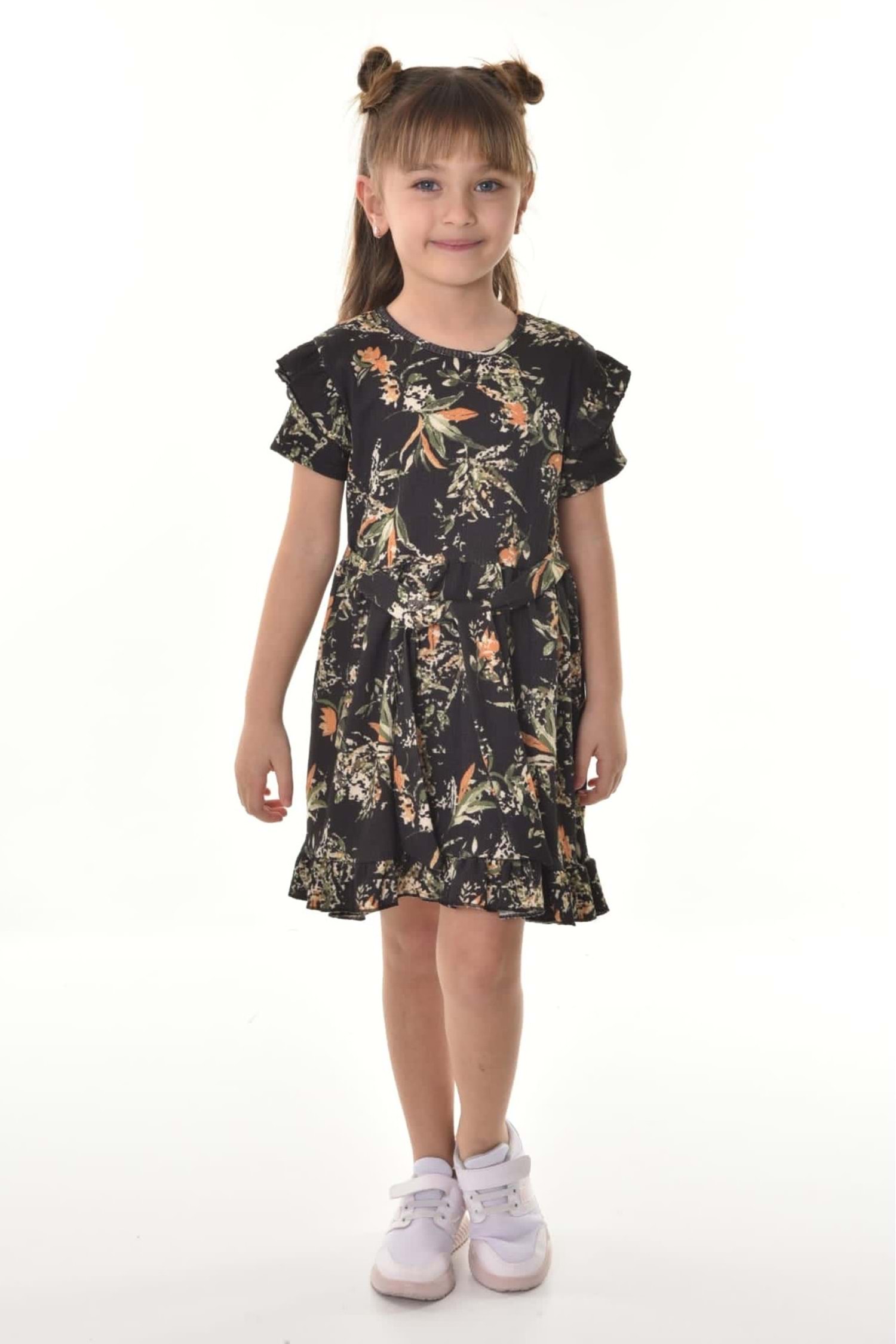 Fırfırlı Kız Çocuk Dokuma Kumaş Tiril Elbise MNK0503