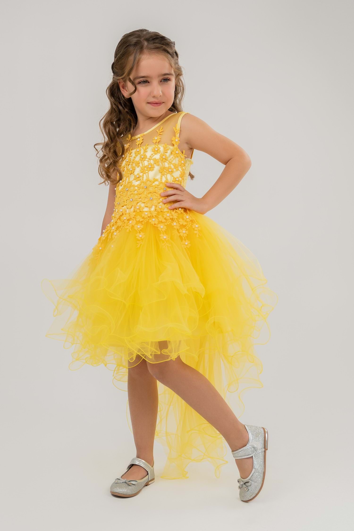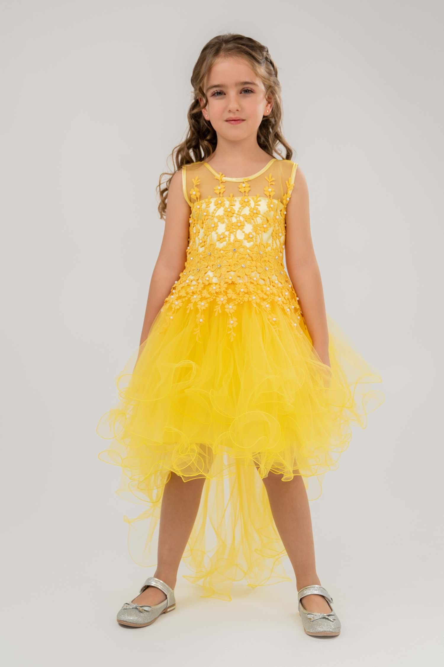 Güpür Model Kuyruklu Gelinlik Çocuk Kolsuz Abiye MNK0470