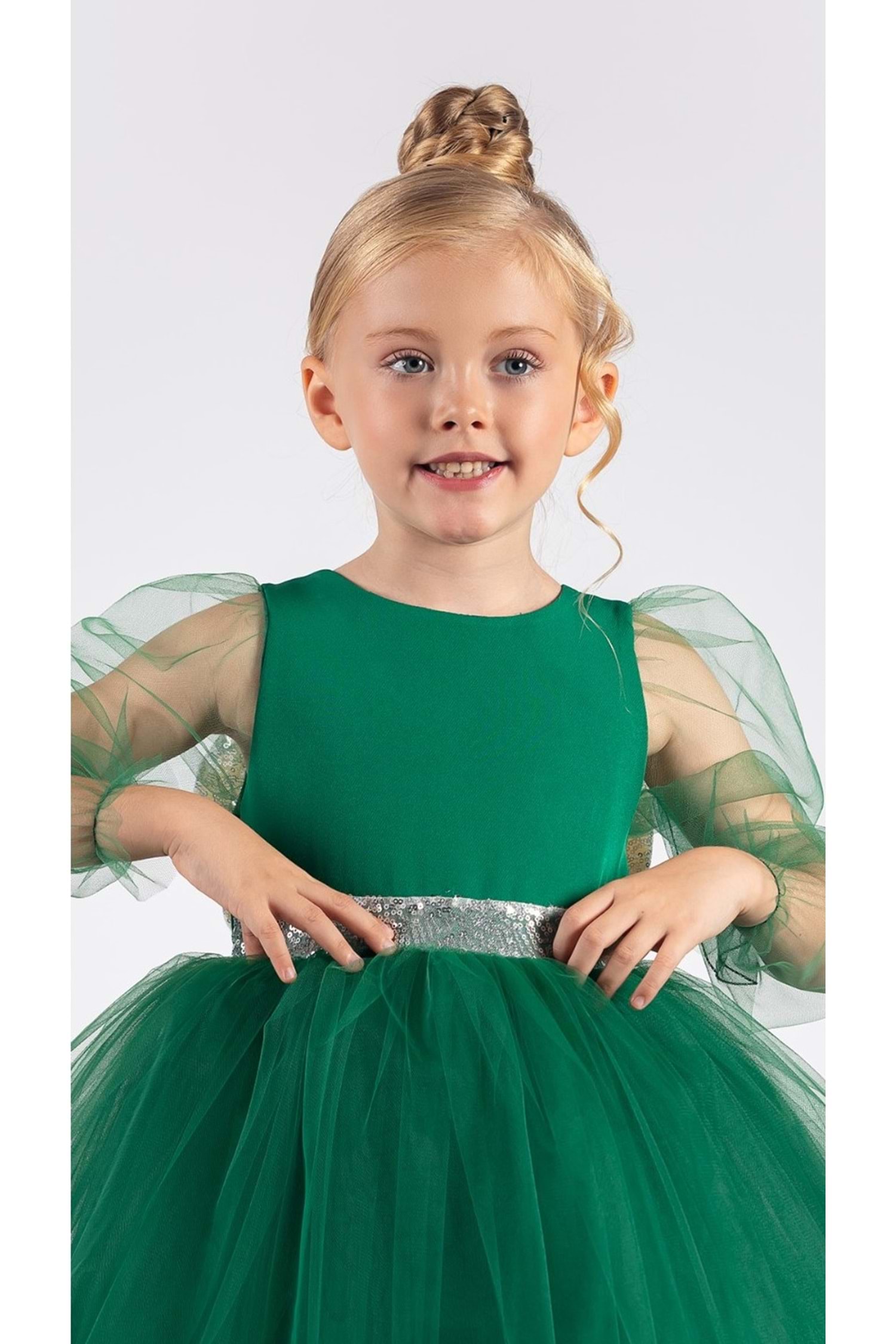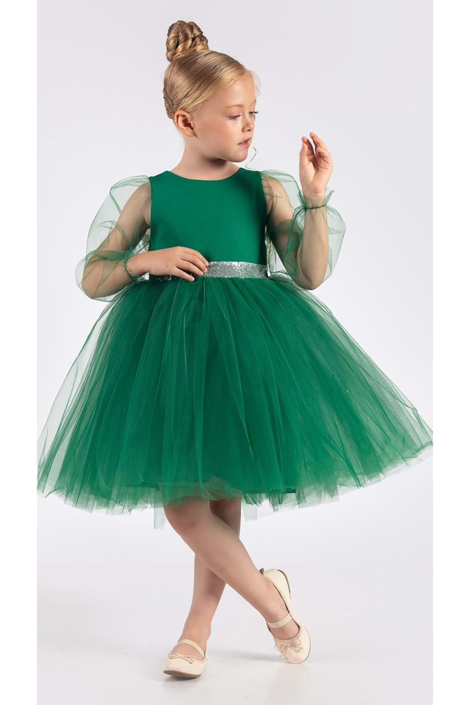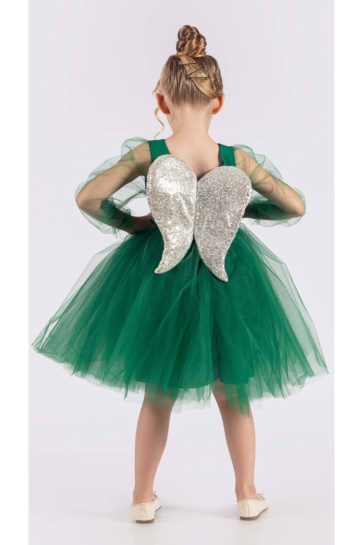 Tül kumaş ile modellenmiş sırt sünger destekli pul payetli kanat ile modellenmiş kız çocuk özel gün , doğum günü ve partilerde kullanıma uygun elbise.