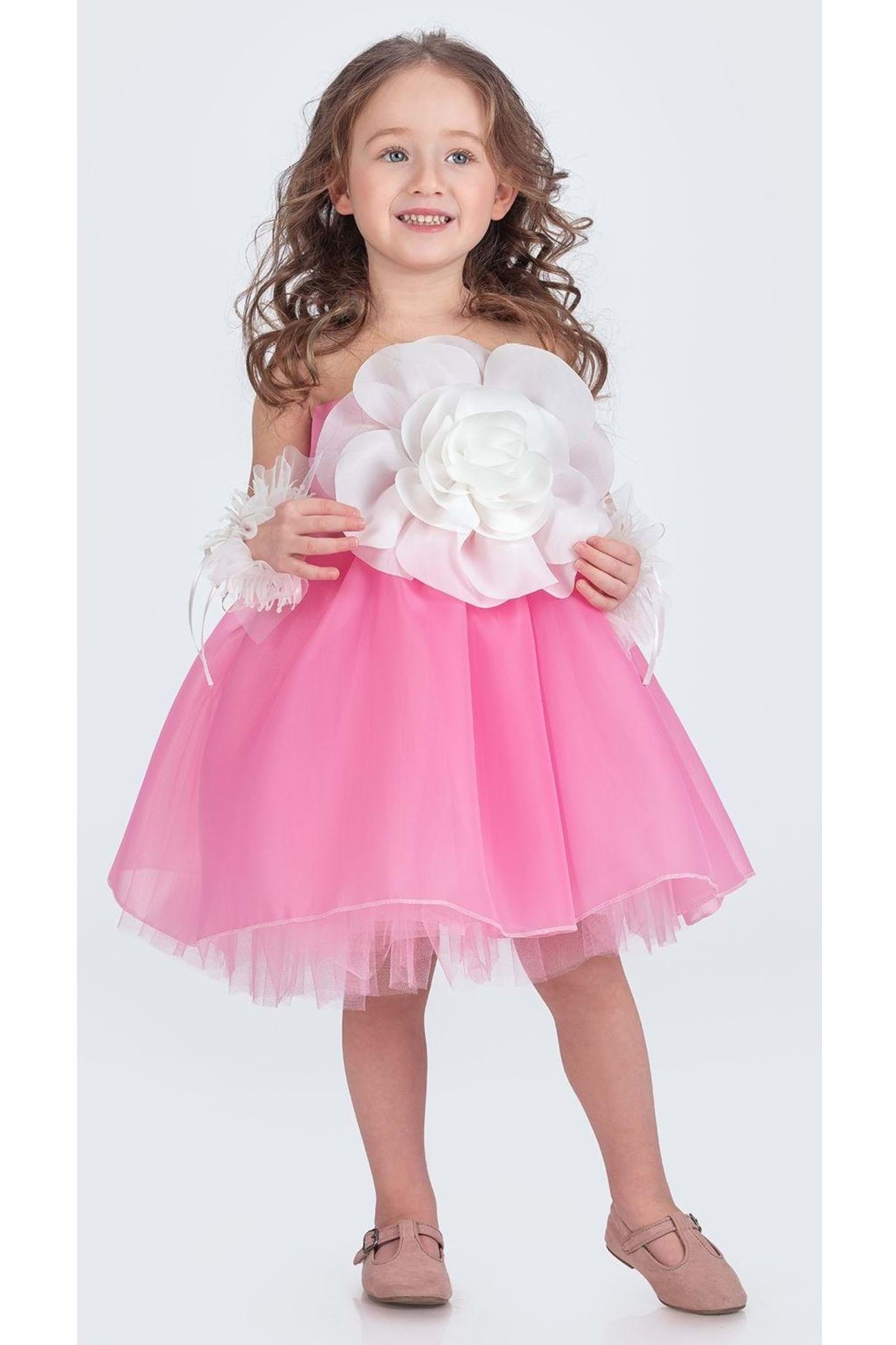 Karolin Robası Çiçekli, Bileklik Aksesuarlı Kız Çocuk Abiye Elbise