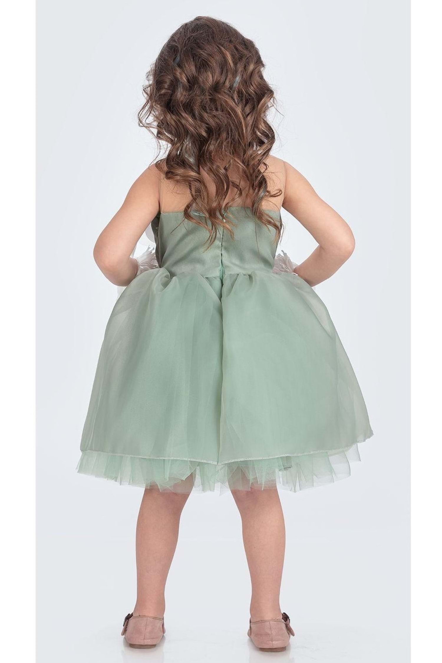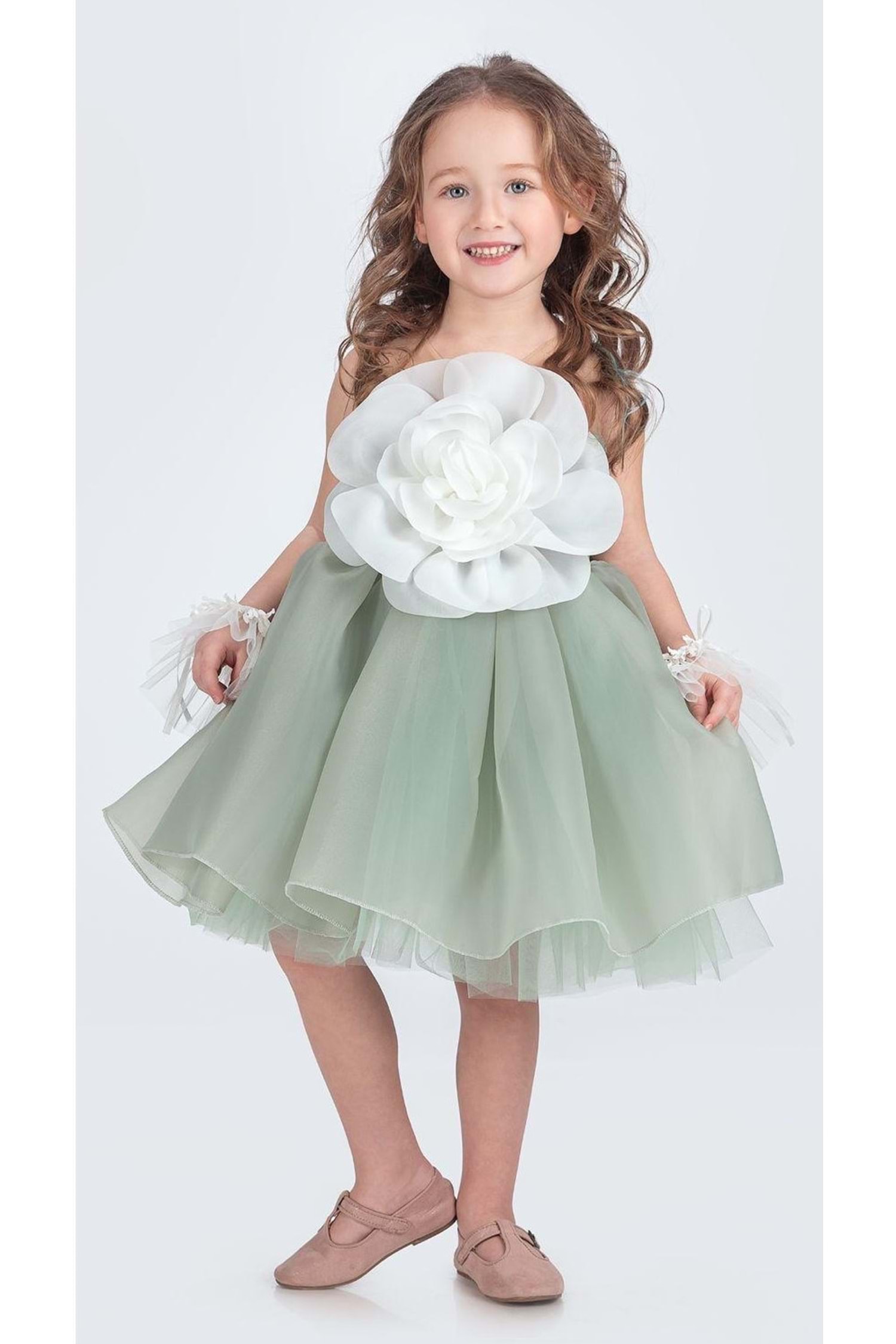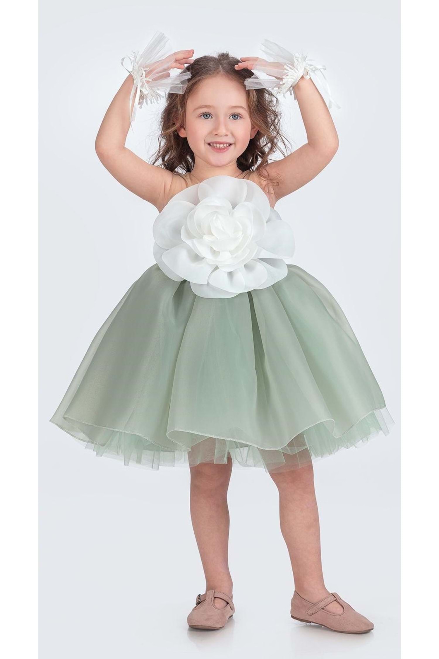 Elbise, modası geçmeyen yeşil renk seçeneğiyle sunuluyor. Çiçek motifleri ve tül kumaşla uyumlu renk tonu, doğal ve taze bir görünüm kazandırıyor. Kız çocuklarının beğenisini kazanan bu renk, her mevsime uyum sağlar.