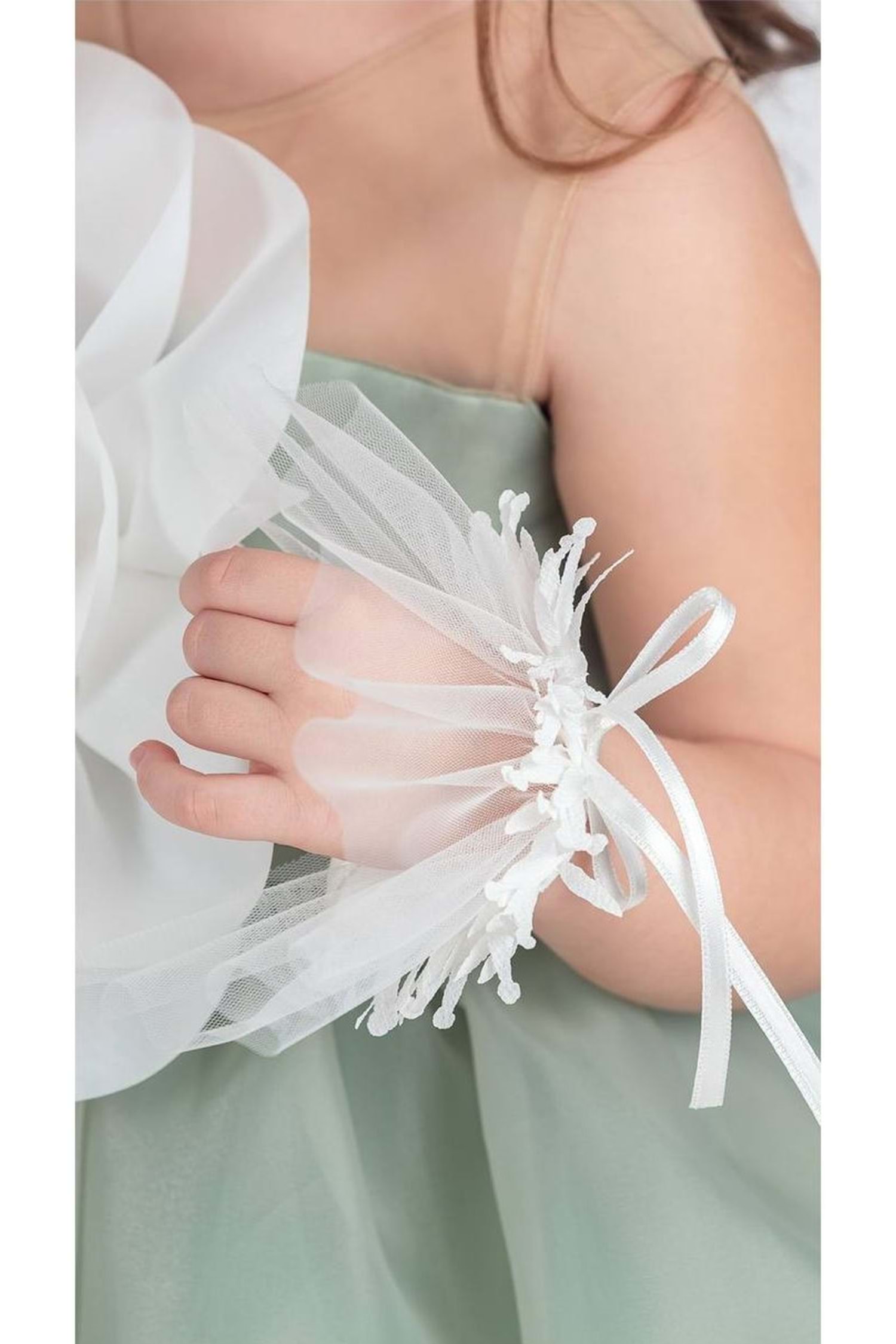 Çocuğunuzun özel günlerde zarif ve şık görünmesini istiyorsanız, Karolin robası çiçekli bileklik aksesuarlı kız çocuk abiye elbise tam size göre! Göz alıcı gül motifleri, kabartmalı tül detayı ve bileklik aksesuarlarıyla tasarlanan bu özel model, doğum günü partilerinden düğünlere kadar tüm özel anlarda fark yaratır.