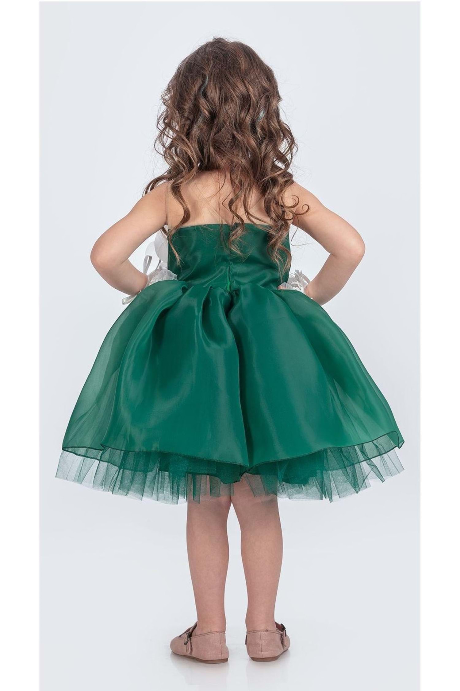 Elbise, modası geçmeyen yeşil renk seçeneğiyle sunuluyor. Çiçek motifleri ve tül kumaşla uyumlu renk tonu, doğal ve taze bir görünüm kazandırıyor. Kız çocuklarının beğenisini kazanan bu renk, her mevsime uyum sağlar.