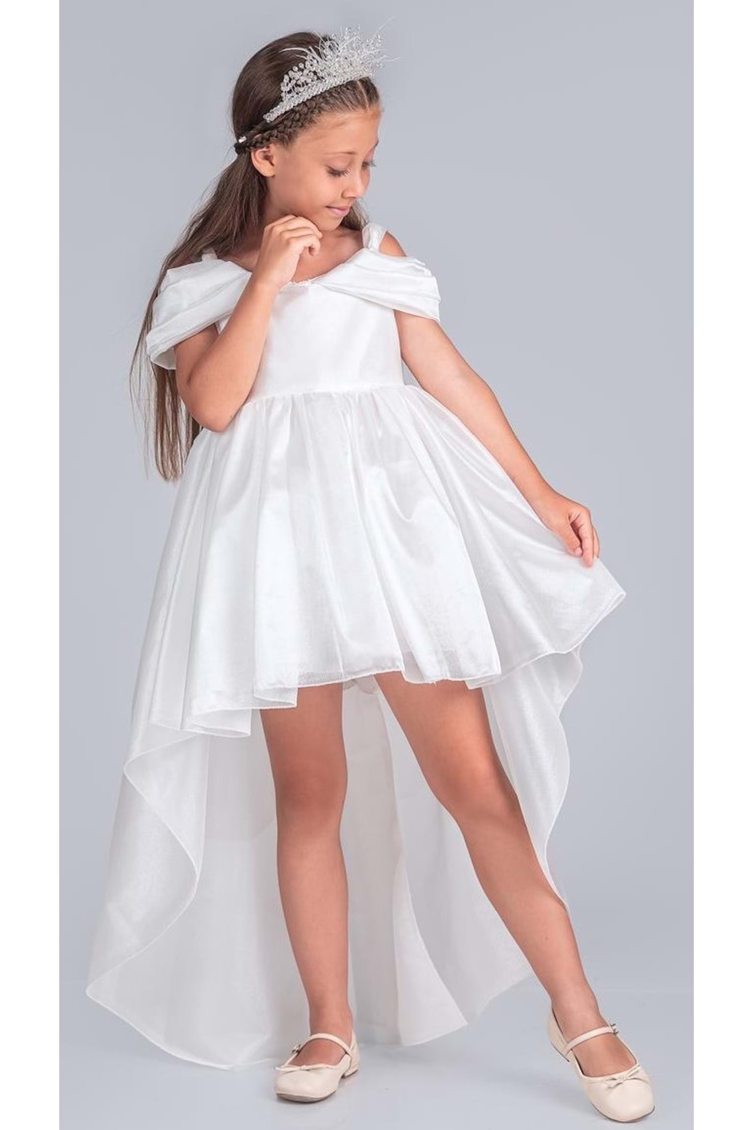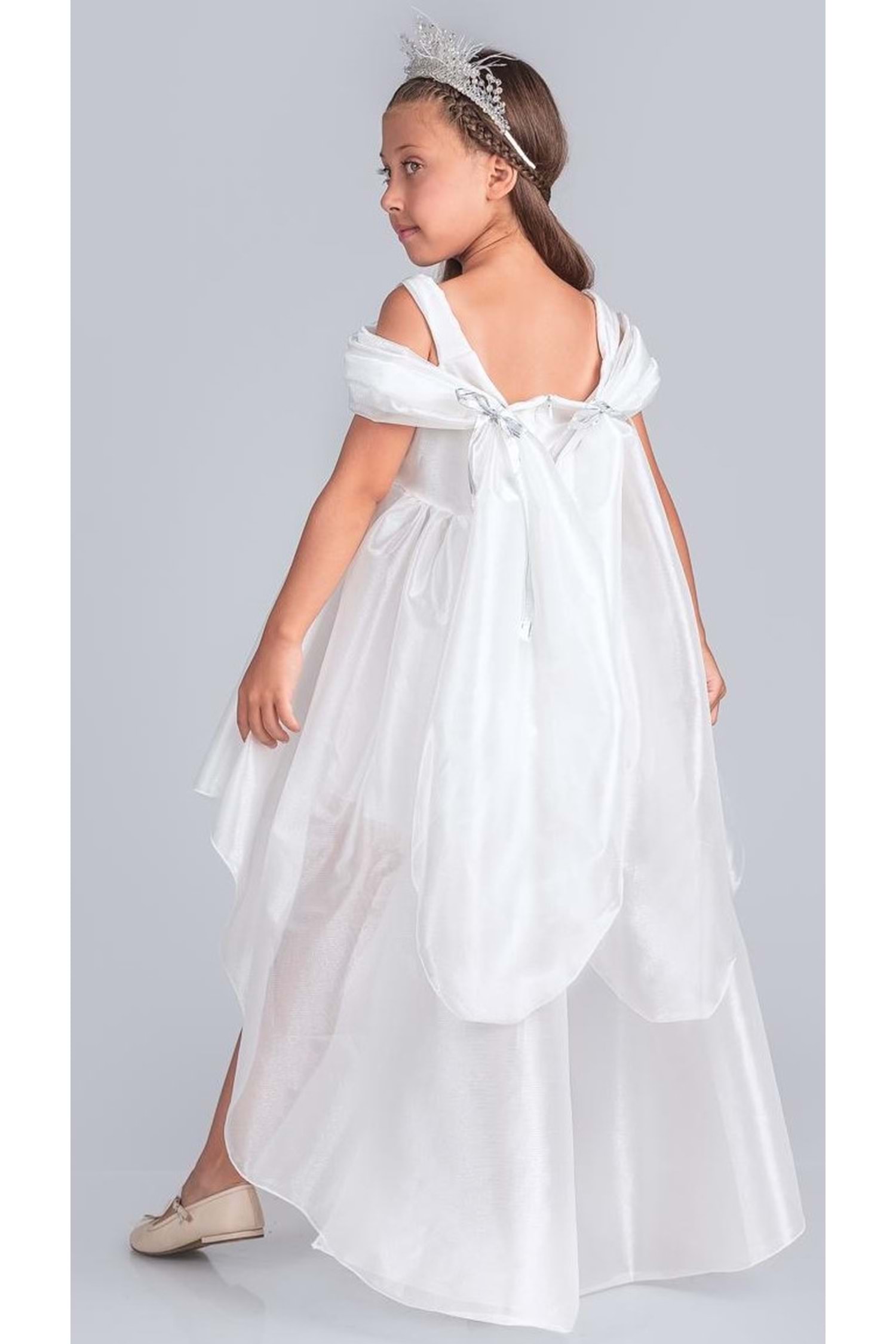 Bel kısmından başlayan kat kat tül detayları eteğe hacim kazandırırken, düşük omuzlar prenses temalı davetlerin vazgeçilmez tamamlayıcısıdır. İç astarlı yapısı çocuğunuzun cildini korur; hafif, dökümlü ve esnek kumaşı maksimum hareket özgürlüğü sağlar. Kat kat hacimli etek detayı ve hediye kristal prenses tacı ile bu kız çocuk abiye elbise, özel günlerin yıldızı olmak isteyen minik prensesler için mükemmel bir seçimdir.