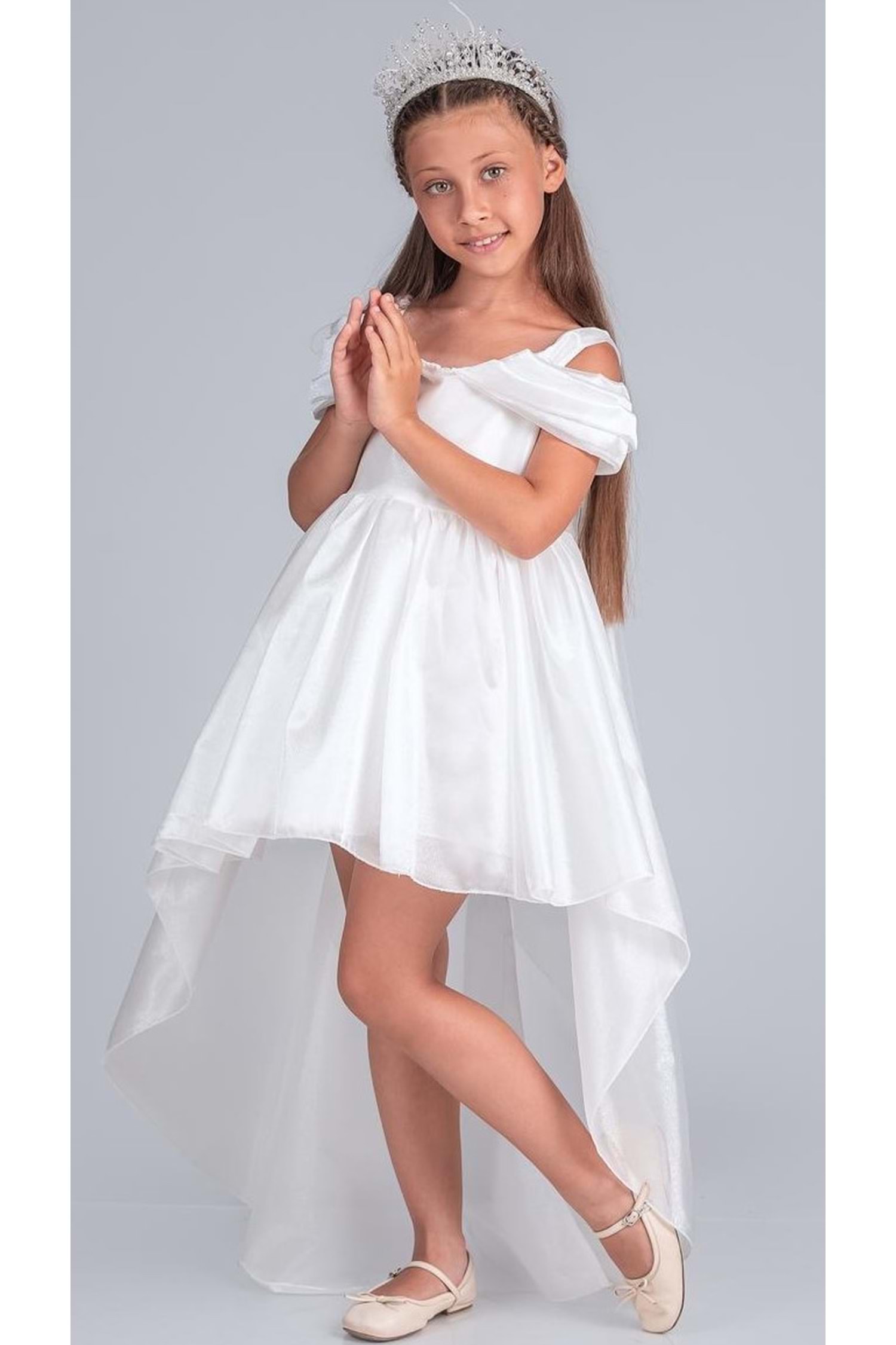 Kız Çocuk Taçlı Masalsı Prenses Abiye Elbise (3-12 Yaş)