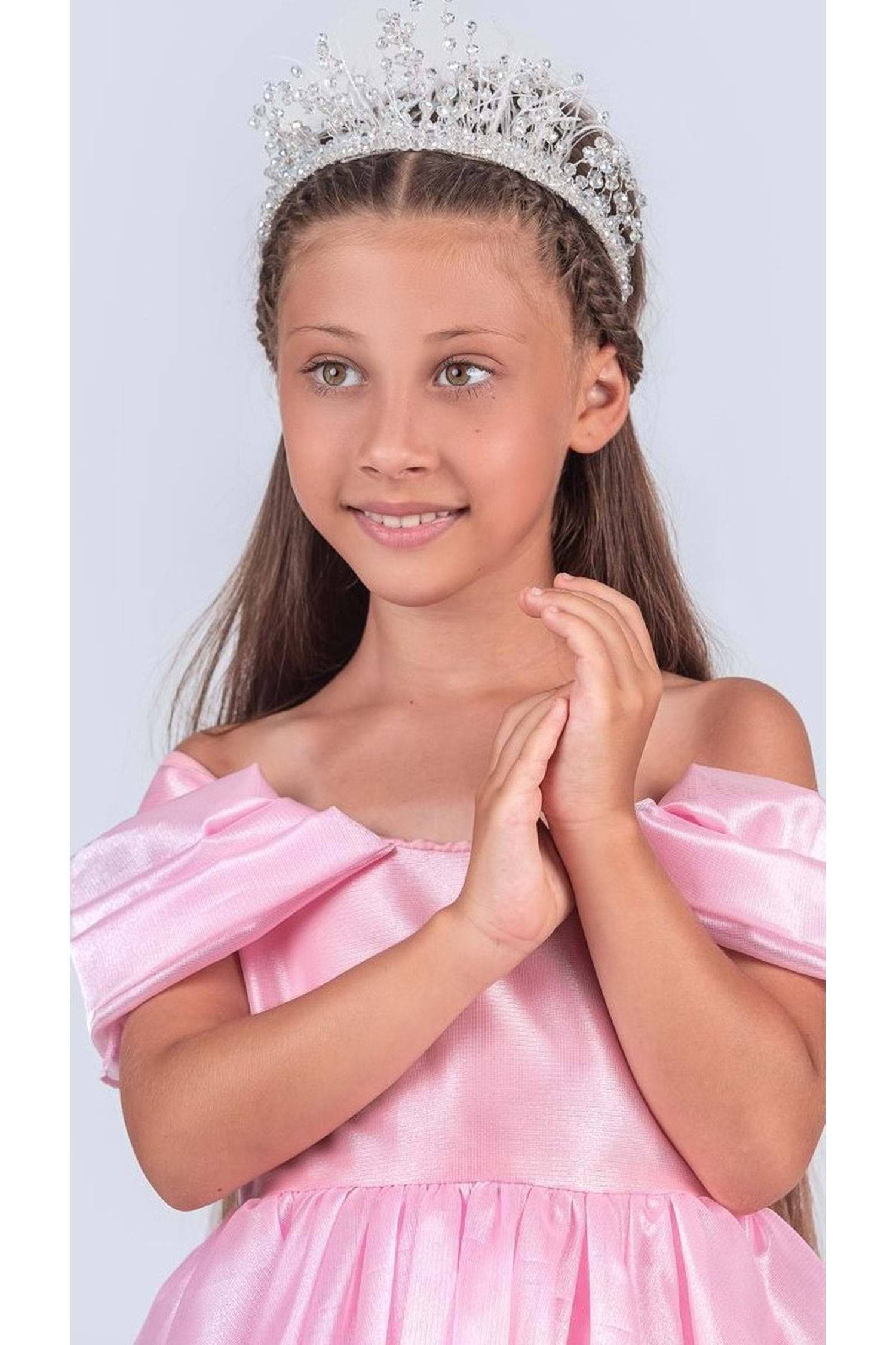 Kız Çocuk Taçlı Masalsı Prenses Abiye Elbise (3-12 Yaş)