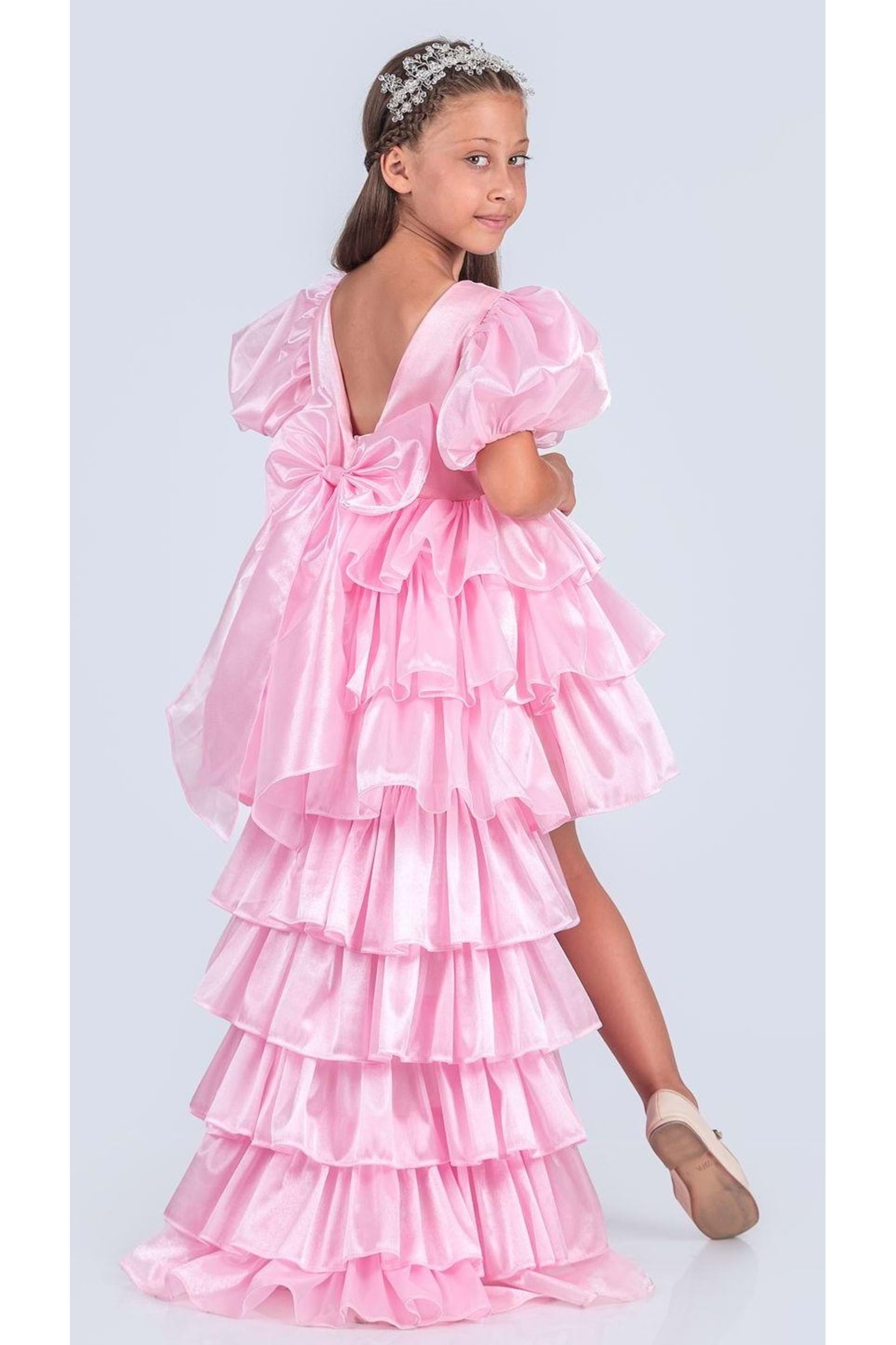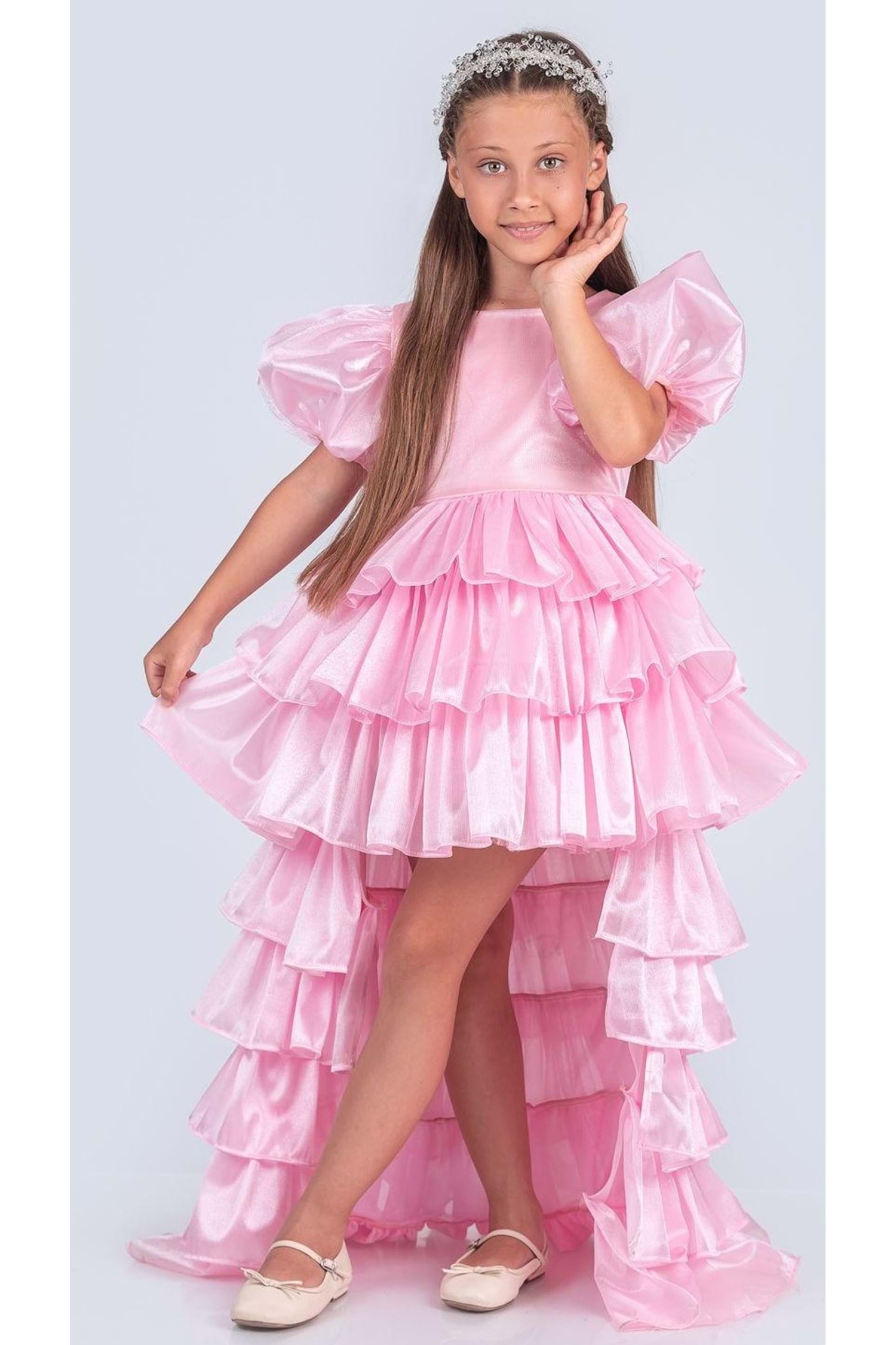 Kız Çocuk Taçlı Eklenebilir Kuyruklu Abiye Elbise (3-12 Yaş)
